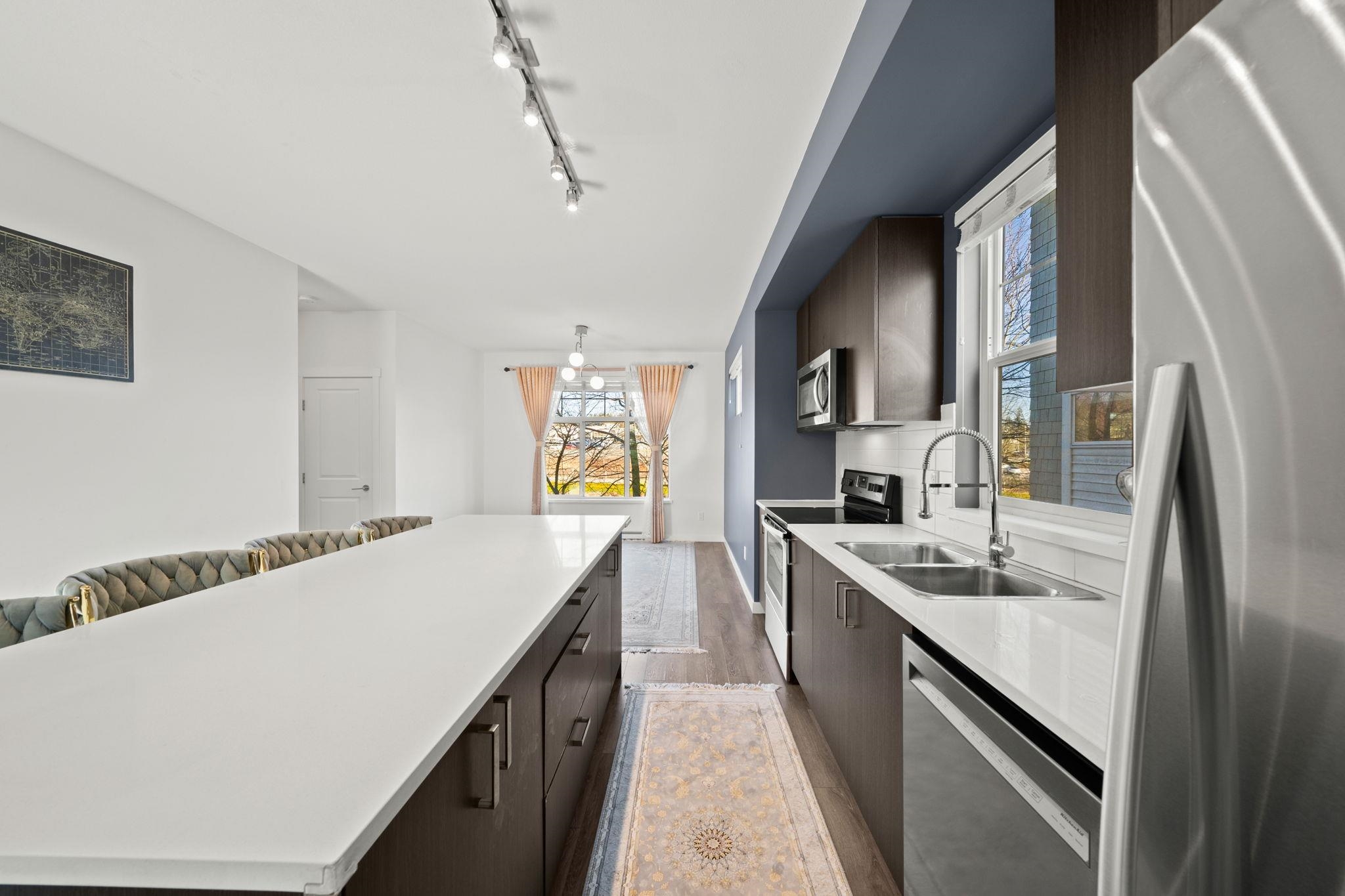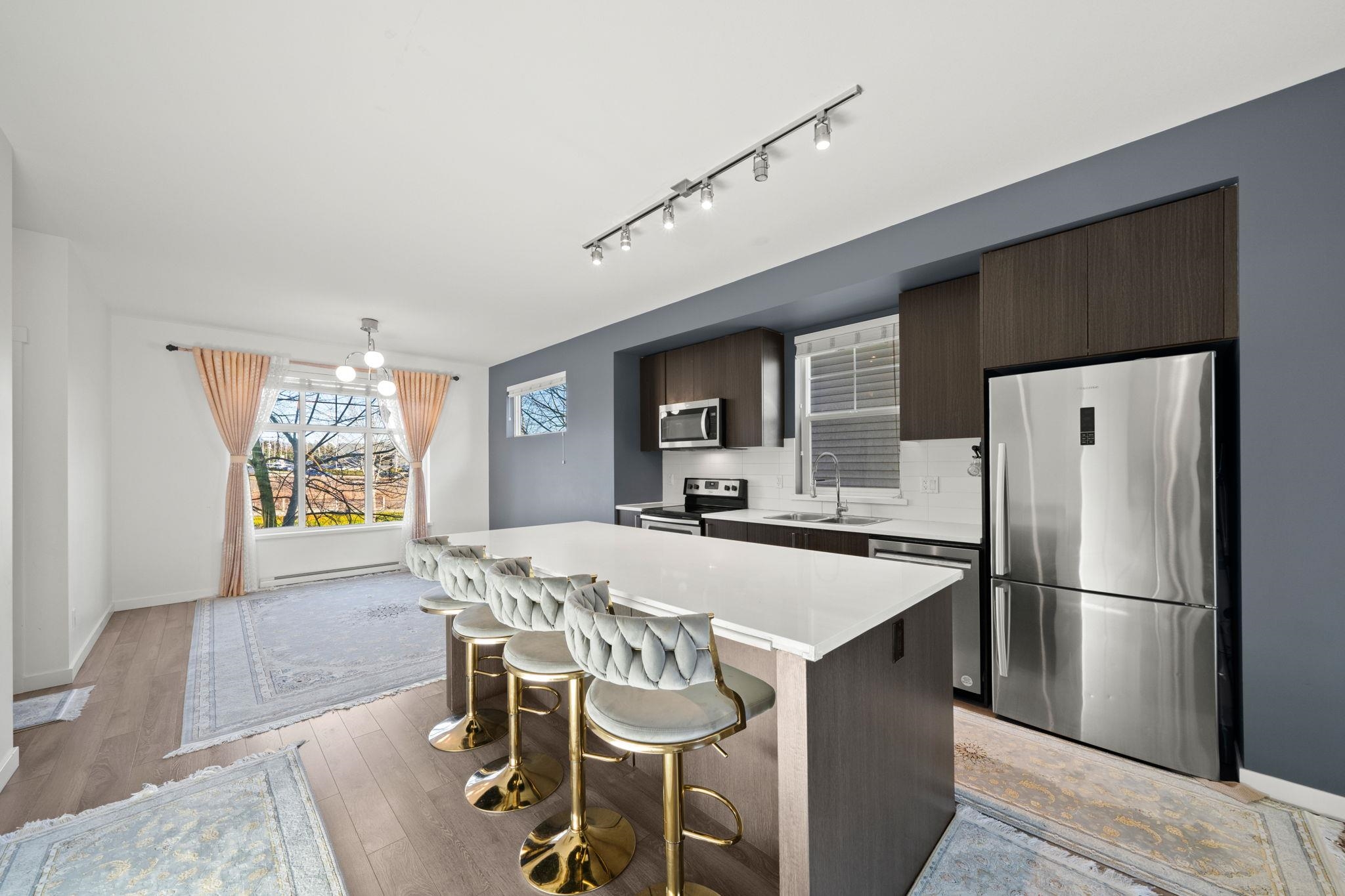 Beautiful 3-bedroom + den end unit in pristine condition with excellent access to Highway 1 and major routes. Newly painted and filled with natural light, this home features high ceilings, stainless steel appliances, quartz countertops, and a functional layout with 2 full baths plus a powder room. Carpeted bedrooms and stairs are complemented by well-maintained laminate flooring throughout the main living areas. Enjoy the convenience of two-car tandem parking and a versatile basement den—ideal for a home of...