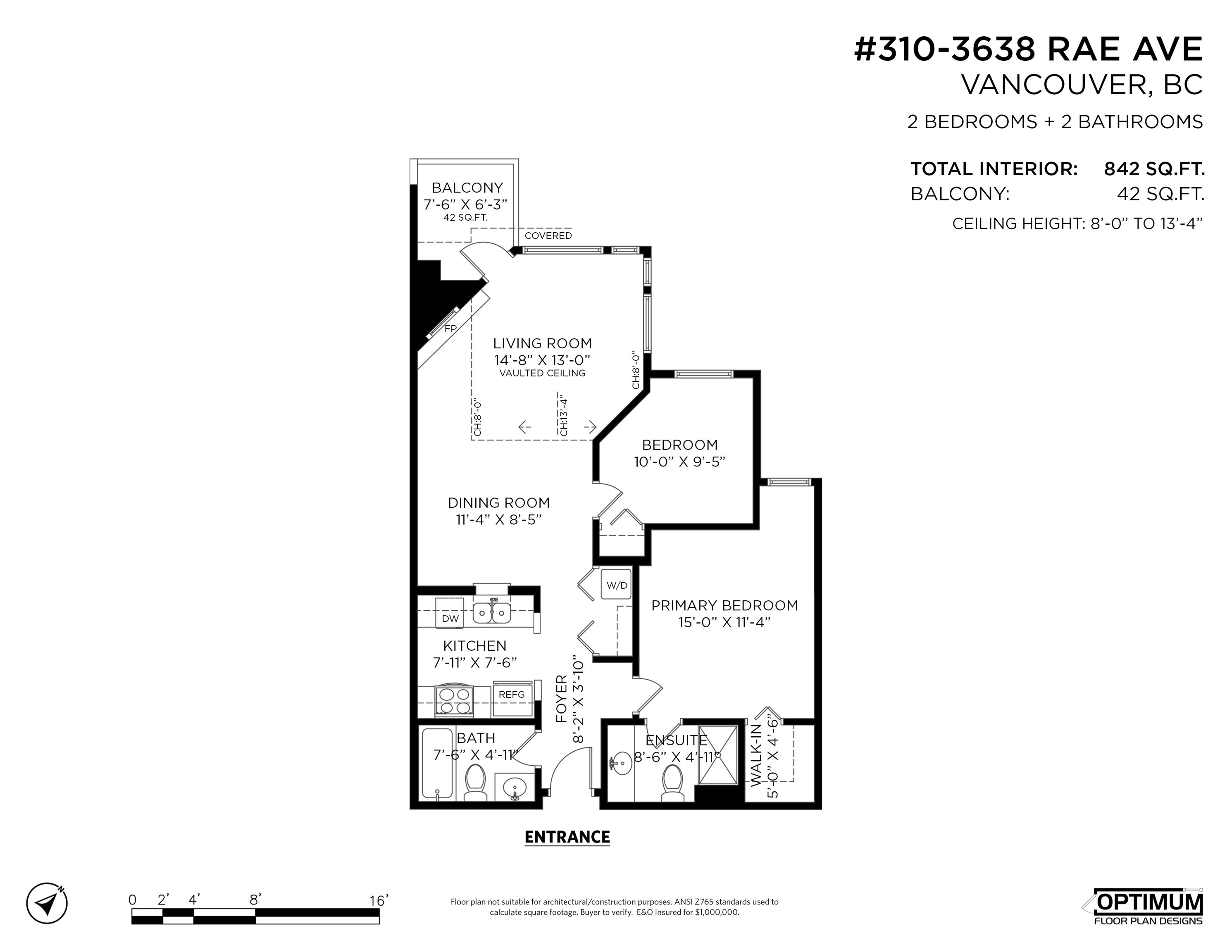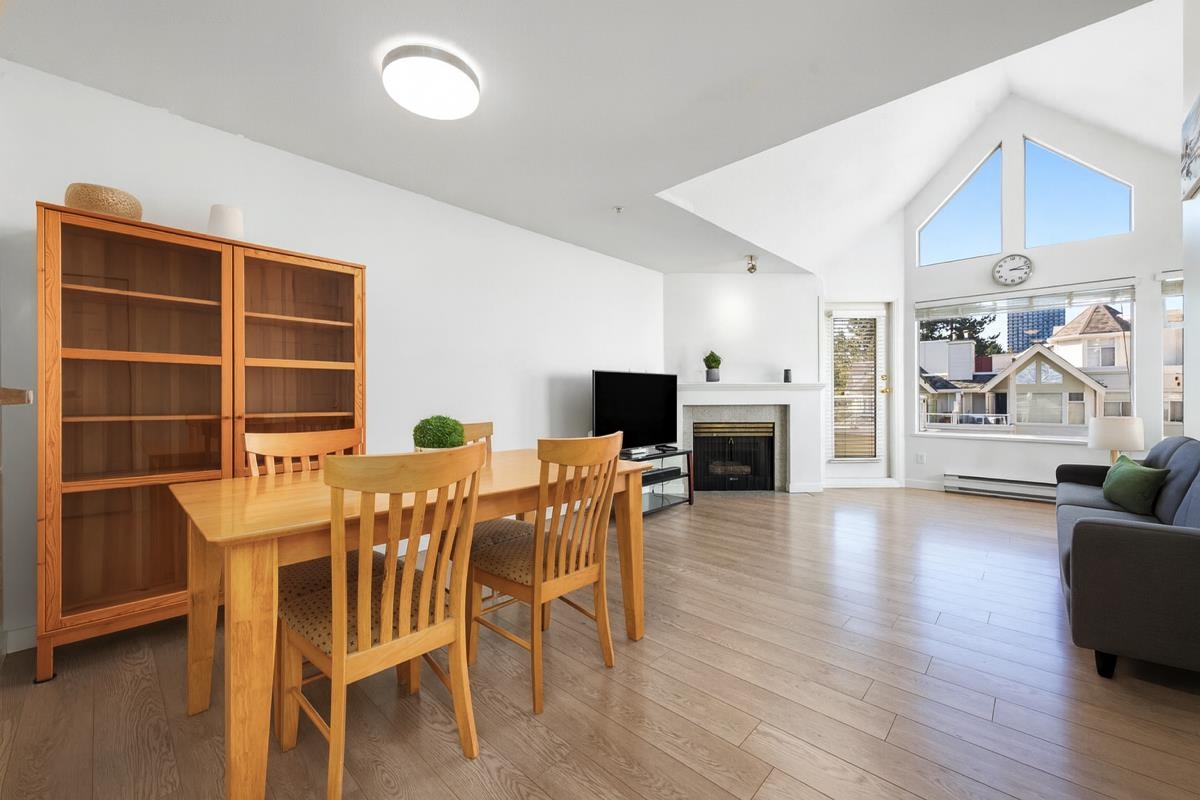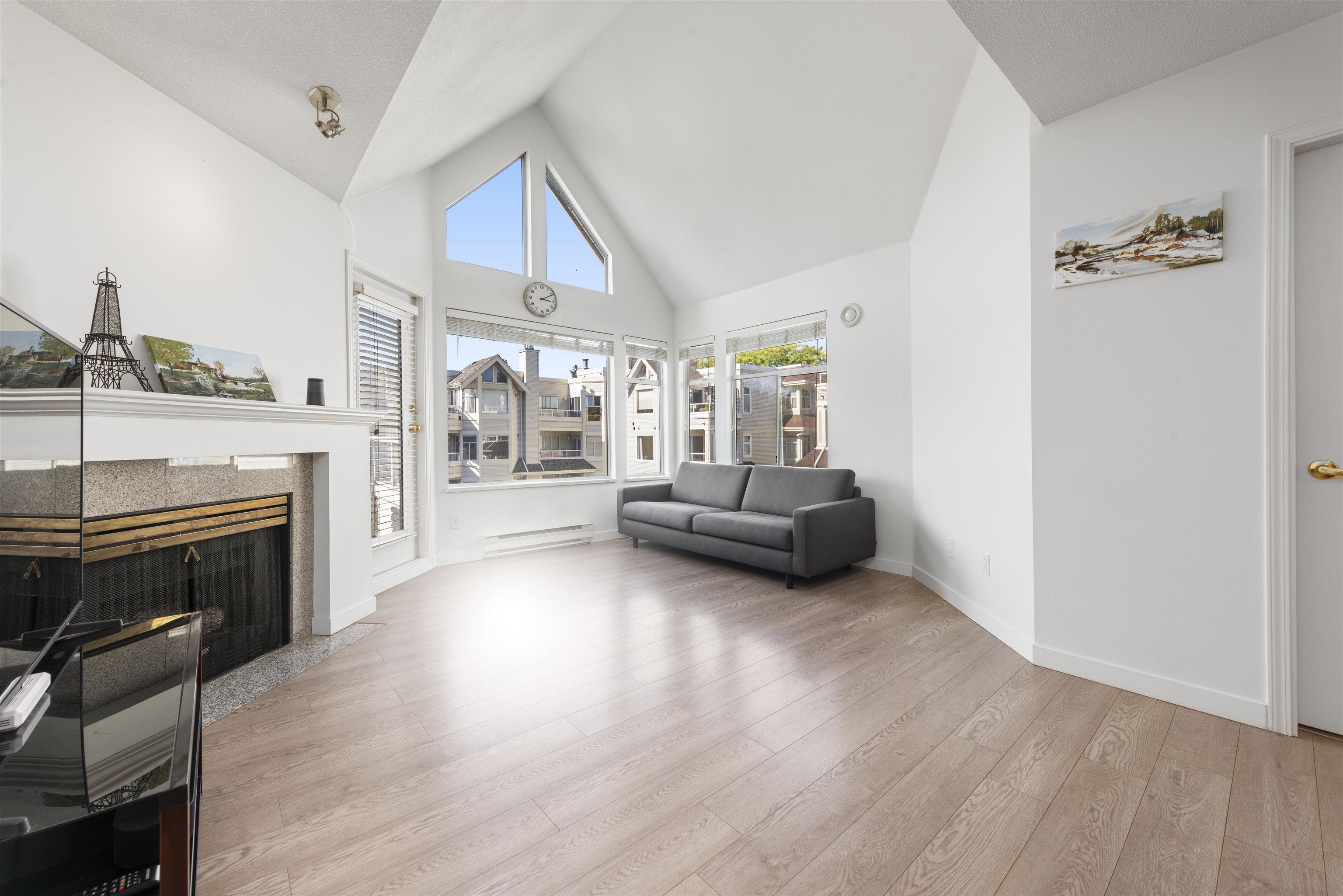 Come view this spacious and bright 842 sqft 2 bed, 2 bath home on the quiet side of Collingwood! This gem offers added privacy and quiet living with no units above. Boasting 13' vaulted ceilings, large windows, a cozy gas fireplace, functional kitchen and an open living and dining area—perfect for entertaining! The primary bedroom features a walk-in closet and private ensuite. Well-maintained building with gym, sauna, and bike room. Only minutes to Joyce Station, Killarney Community Centre, Central Park, Me...
