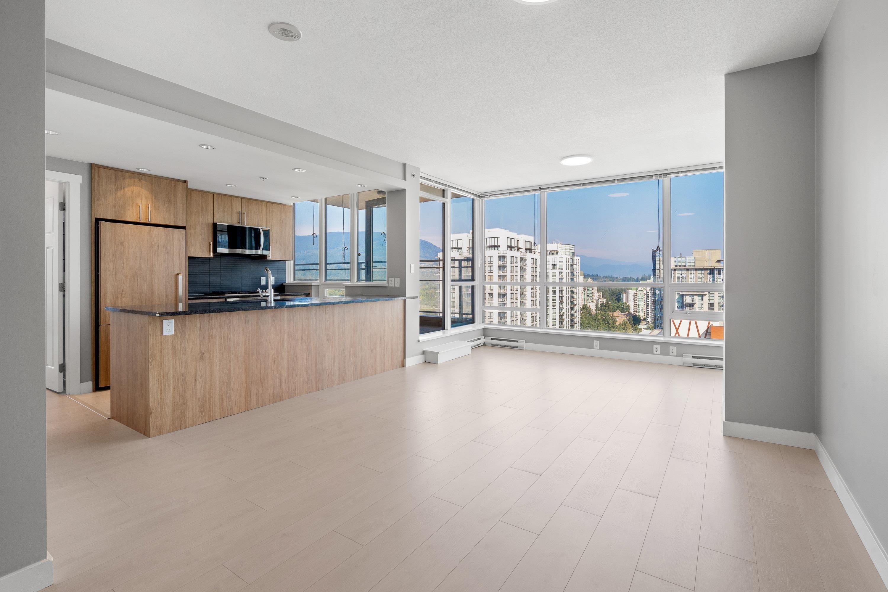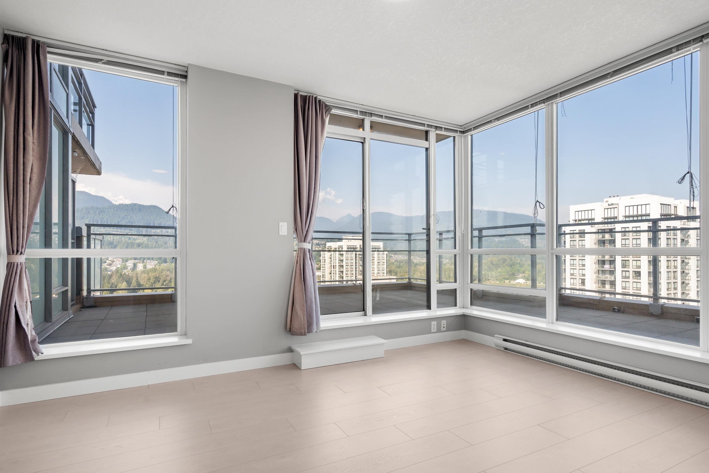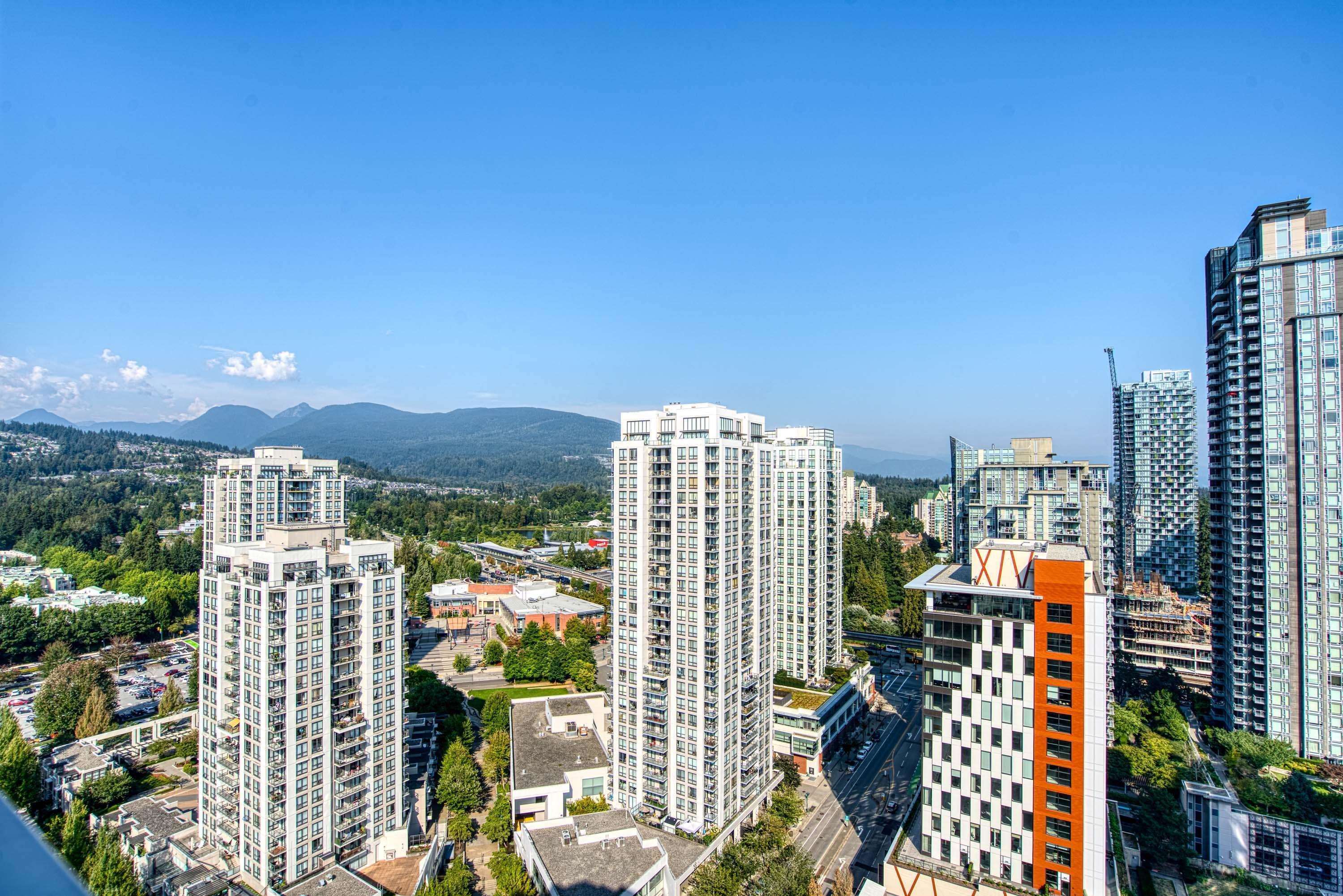 Panoramic water/mountain View from 31st floor 3BR + 2Bath Sub-Penthouse unit with 1230sf living space & 657sf wraparound oversized balcony in Grand Central 1, where you’ll enjoy amenity rich living in the heart of Coquitlam Centre. Floor-to-ceiling windows, 270 degree unobstructed breathtaking views of the mountains, Lafarge Lake from every room. Brand new flooring & fresh painting throughout the whole unit. Open concept kitchen, living, and dining areas and primary wing separate from the two other well siz...
