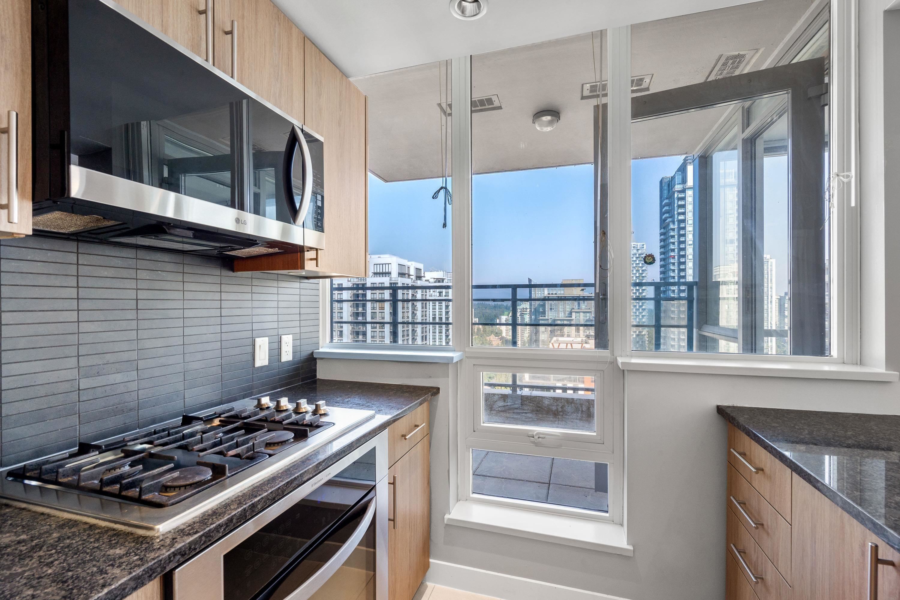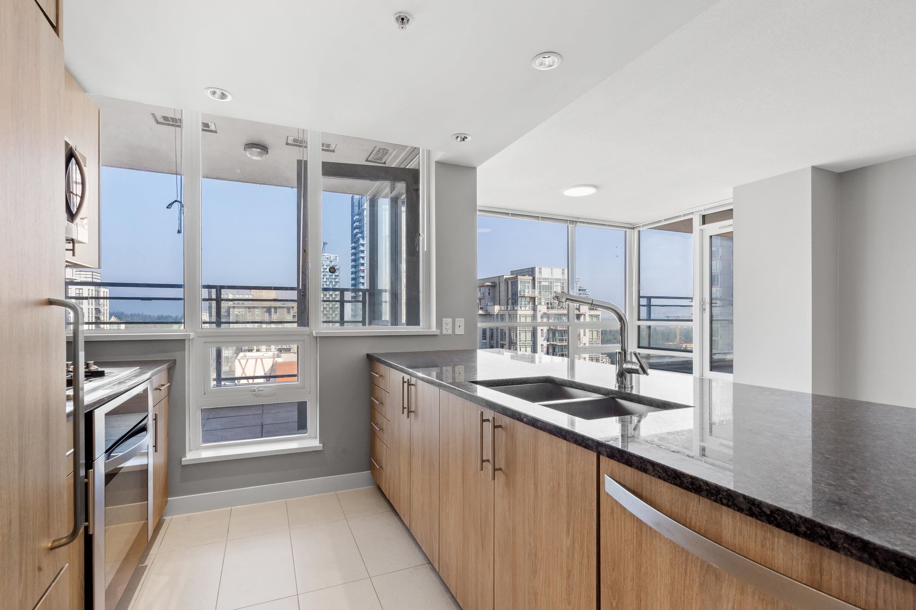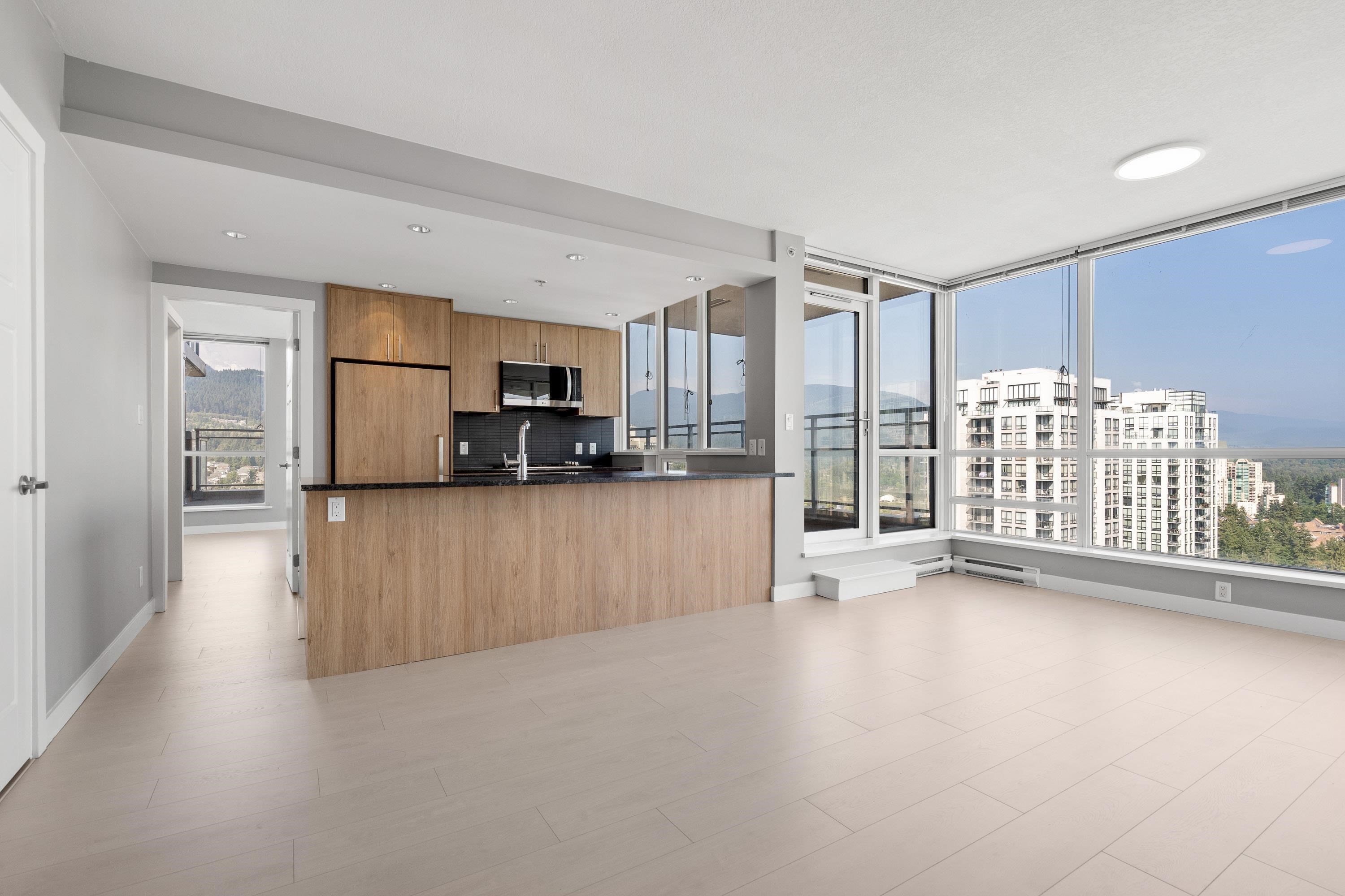 Panoramic water/mountain View from 31st floor 3BR + 2Bath Sub-Penthouse unit with 1230sf living space & 657sf wraparound oversized balcony in Grand Central 1, where you’ll enjoy amenity rich living in the heart of Coquitlam Centre. Floor-to-ceiling windows, 270 degree unobstructed breathtaking views of the mountains, Lafarge Lake from every room. Brand new flooring & fresh painting throughout the whole unit. Open concept kitchen, living, and dining areas and primary wing separate from the two other well siz...