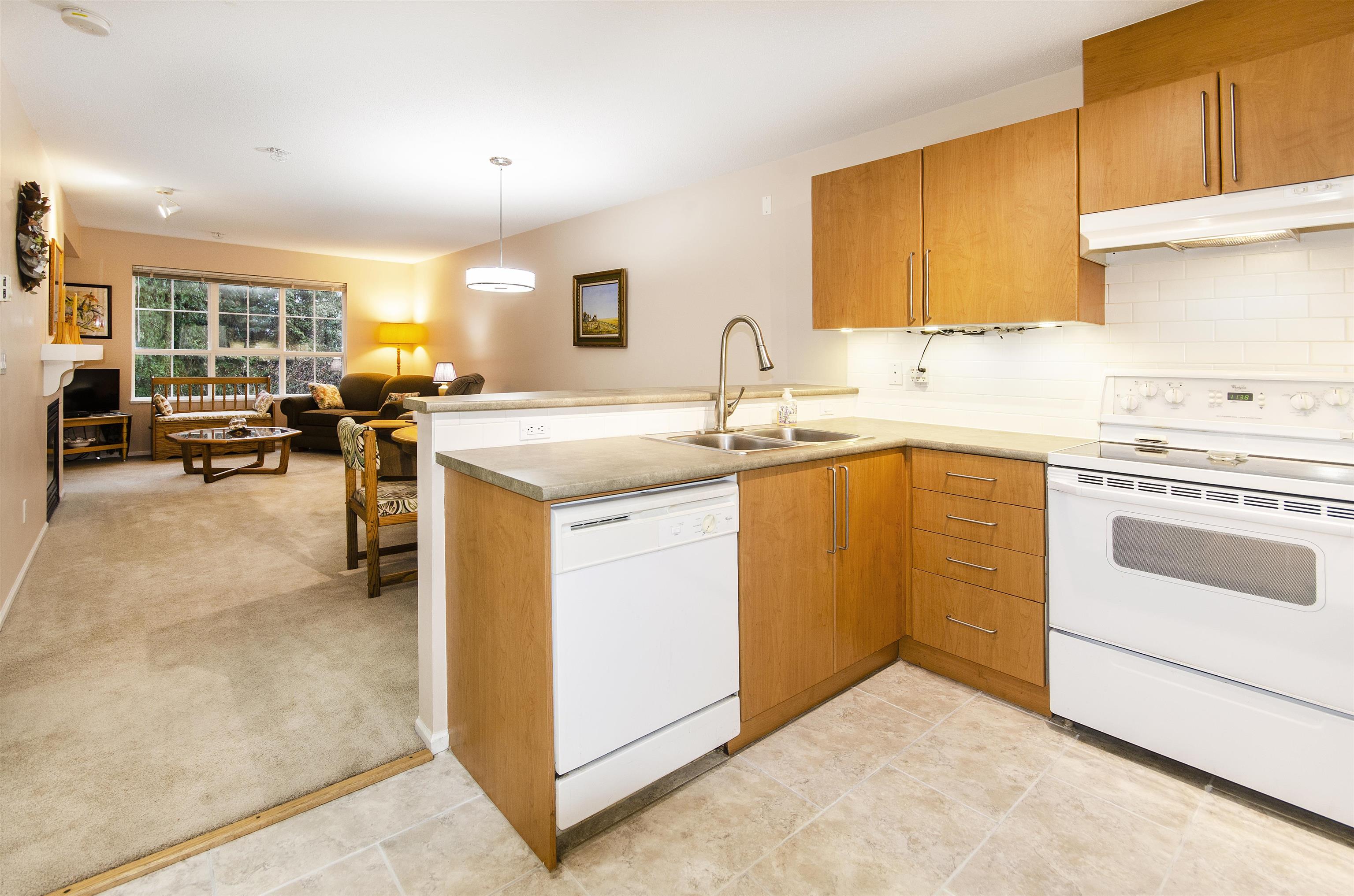 Always popular Highgate! Fully rain-screened building in the heart of Lynn Valley, just steps to shops, restaurants, Lynn Valley Centre, library, and more. This well-laid-out 1-bedroom home features an open floor plan, gas fireplace, in-suite laundry, large soaker tub, and includes all kitchen appliances and window coverings. Enjoy a generous covered balcony plus great building amenities such as a fitness centre, ample visitor parking, car wash station, and secure parking. Pet-friendly complex.
