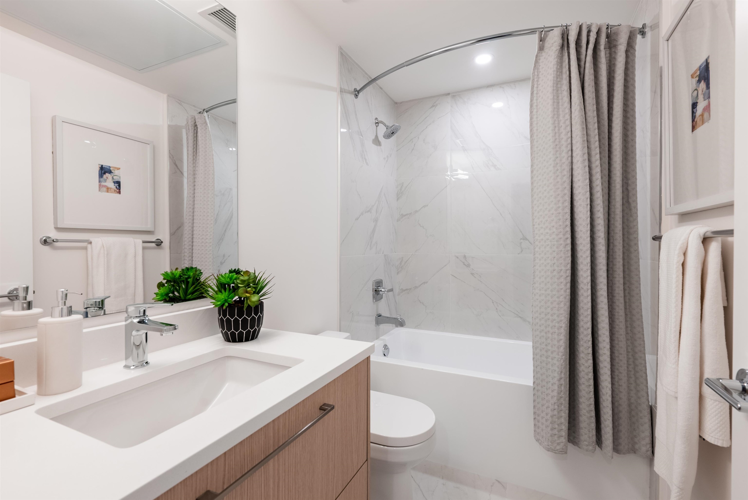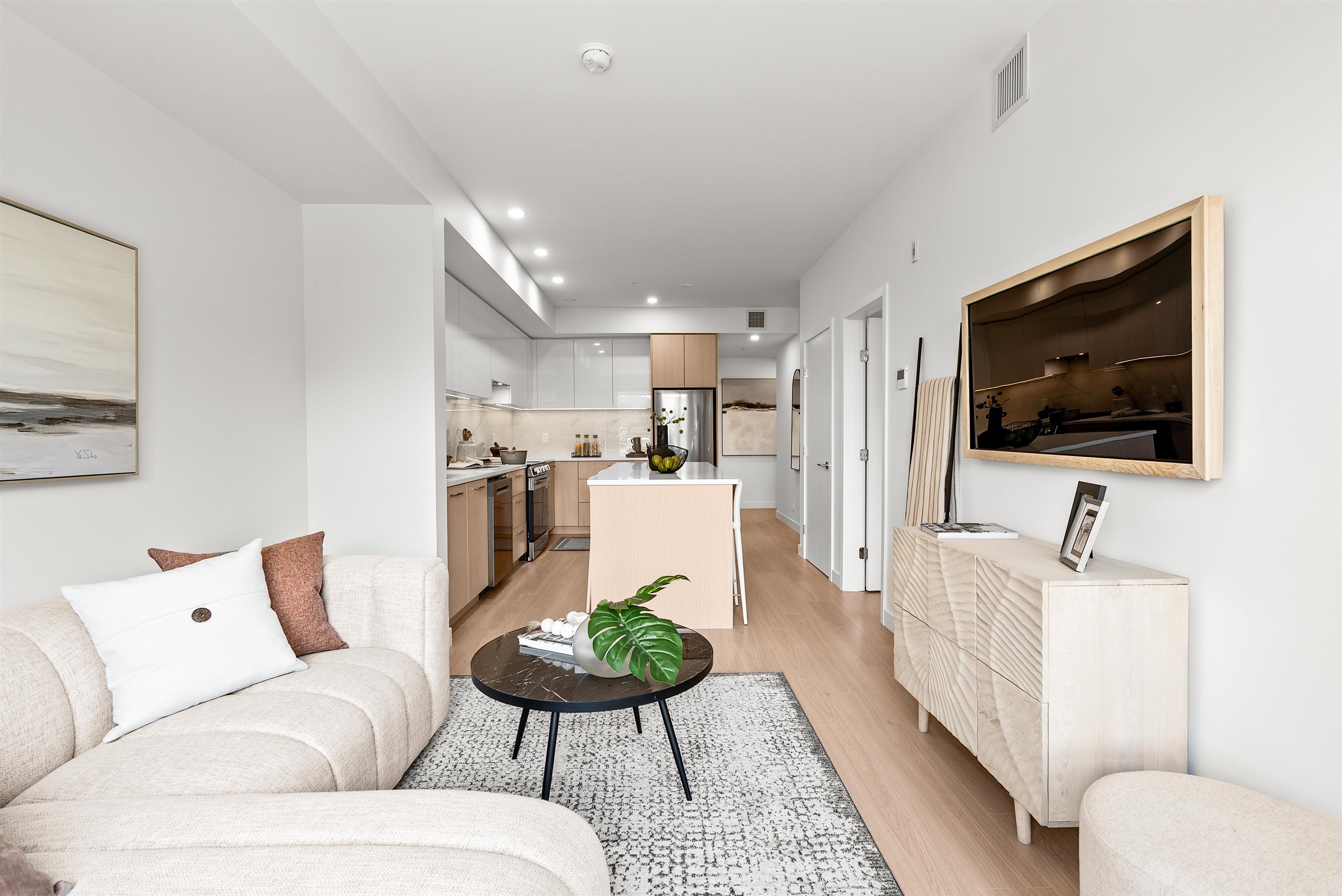 PRICED TO SELL. Move-In Ready! Sitka House: This 2-bed home offers 9ft ceilings in main living areas, vinyl flooring, stylish integrated kitchen appliances, quartz countertops & a custom island finished with storage and seating. Perks include a private patio,1 parking stall (EV ready) & 1 bike locker. Amenities – a rooftop patio, fitness centre, yoga studio, lounge, co-work space & a pet wash station. Steps from local markets, boutique shops, a tasty bistro, major bus routes, the Evergreen Skytrain & the We...