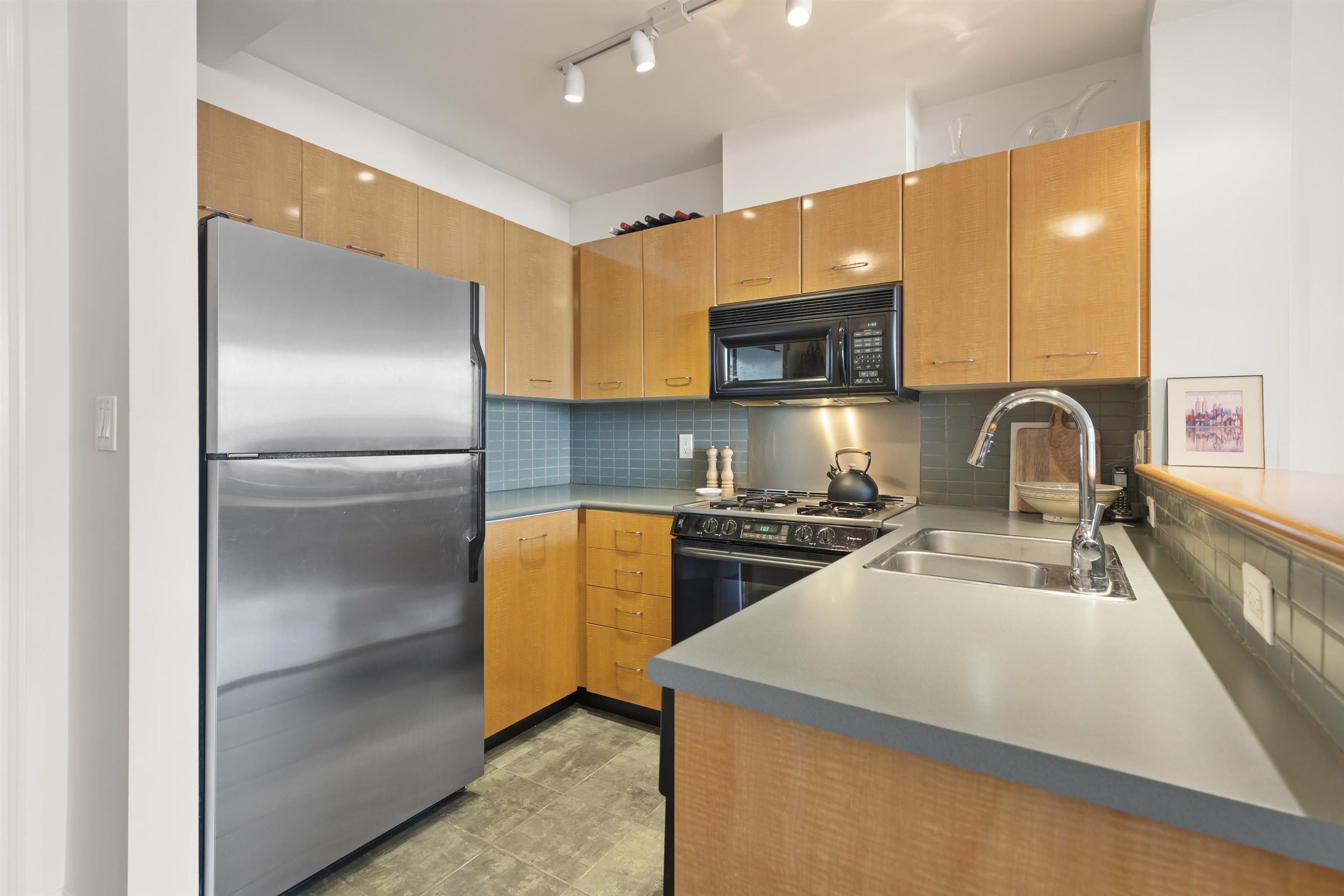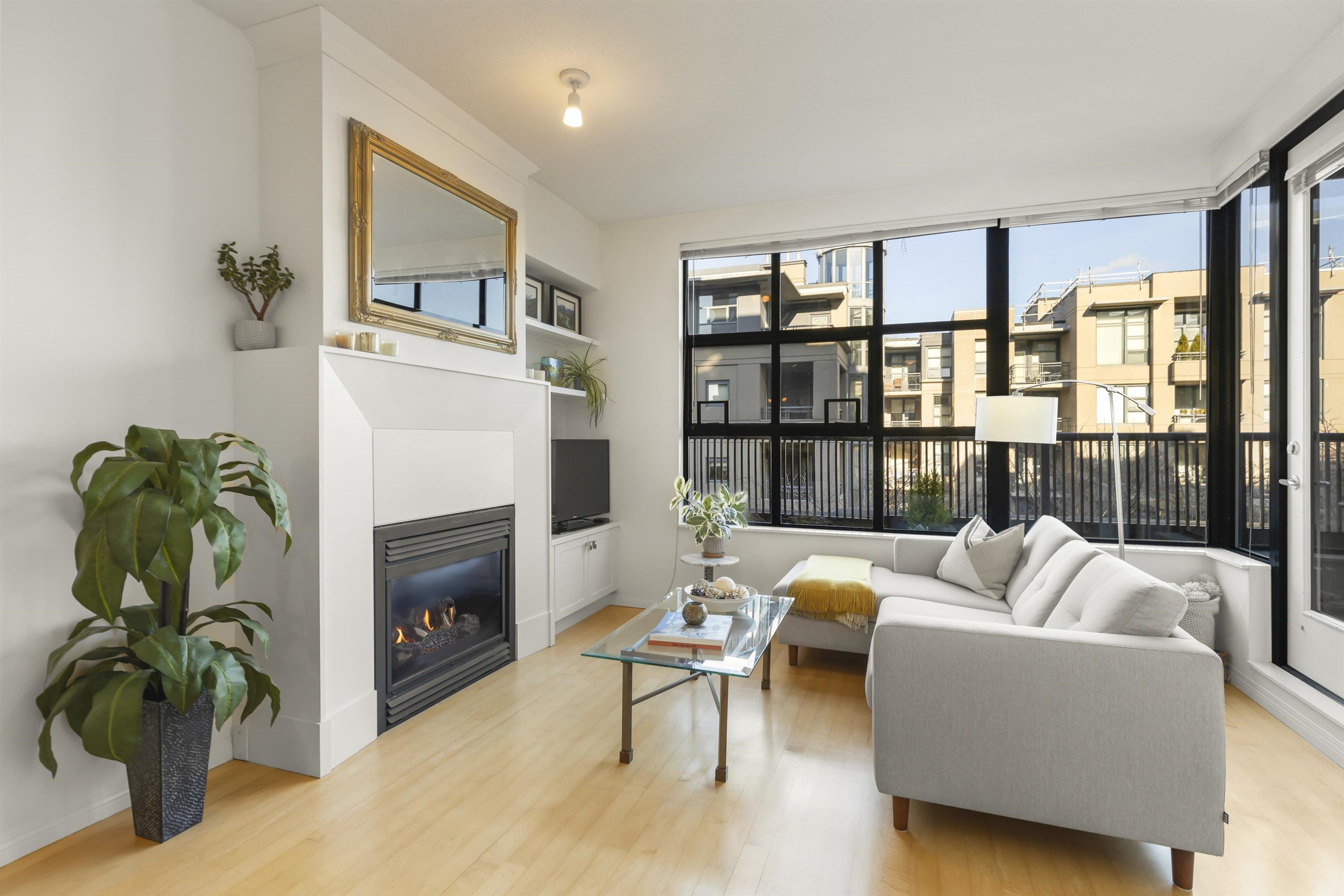 Welcome to the Ansonia, a well-run 6-storey concrete building with classic brick and stone detailing, recently repiped. This home faces the quiet side of the building and offers a functional open kitchen, a cozy gas fireplace, and oversized windows that fill the space with natural light. The generous bedroom is highly versatile and easily accommodates a king-size bed and a home office. Enjoy 9' ceilings, a private balcony, one parking stall and one storage locker, in a well-managed Arbutus Walk building ste...