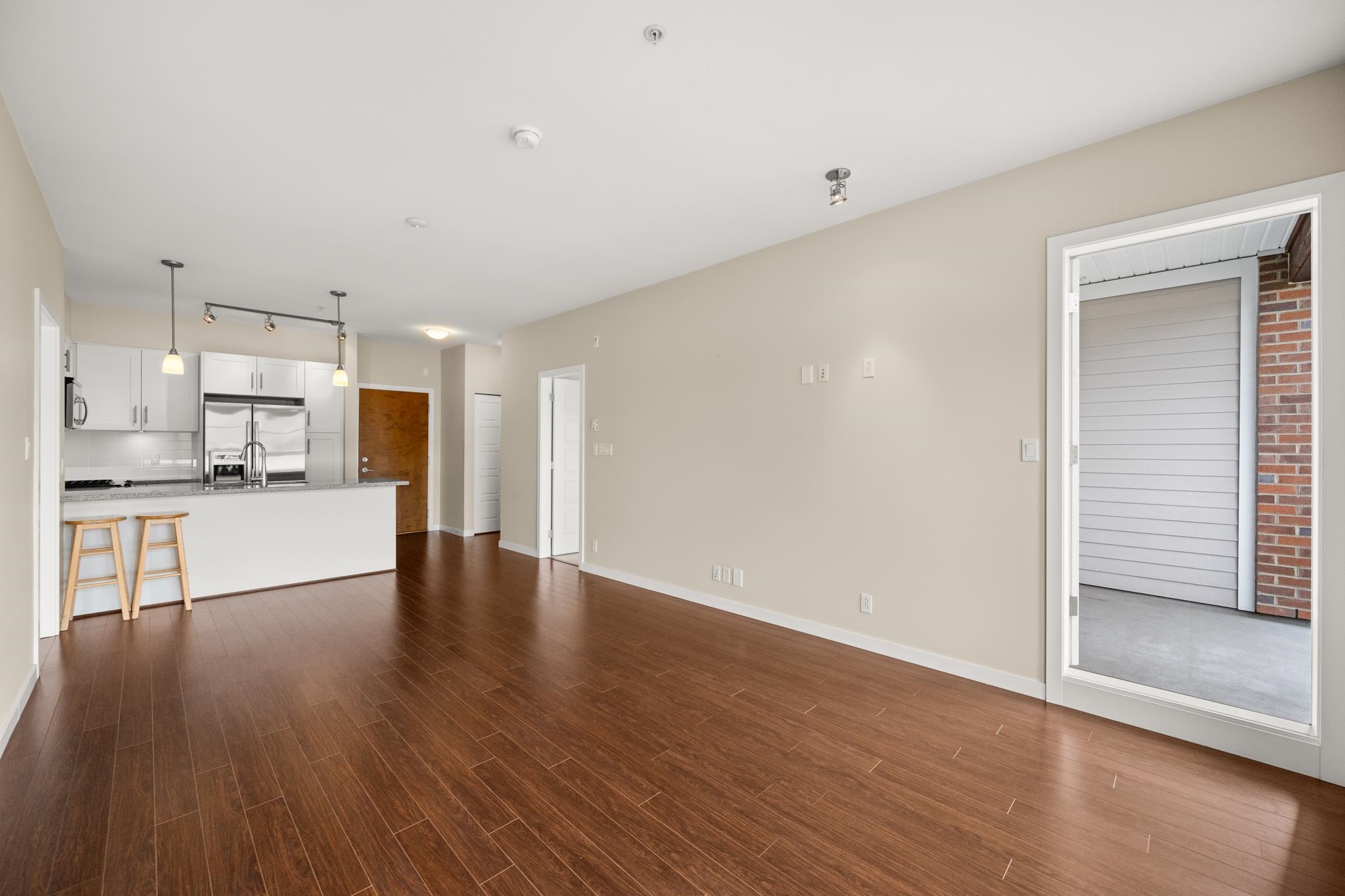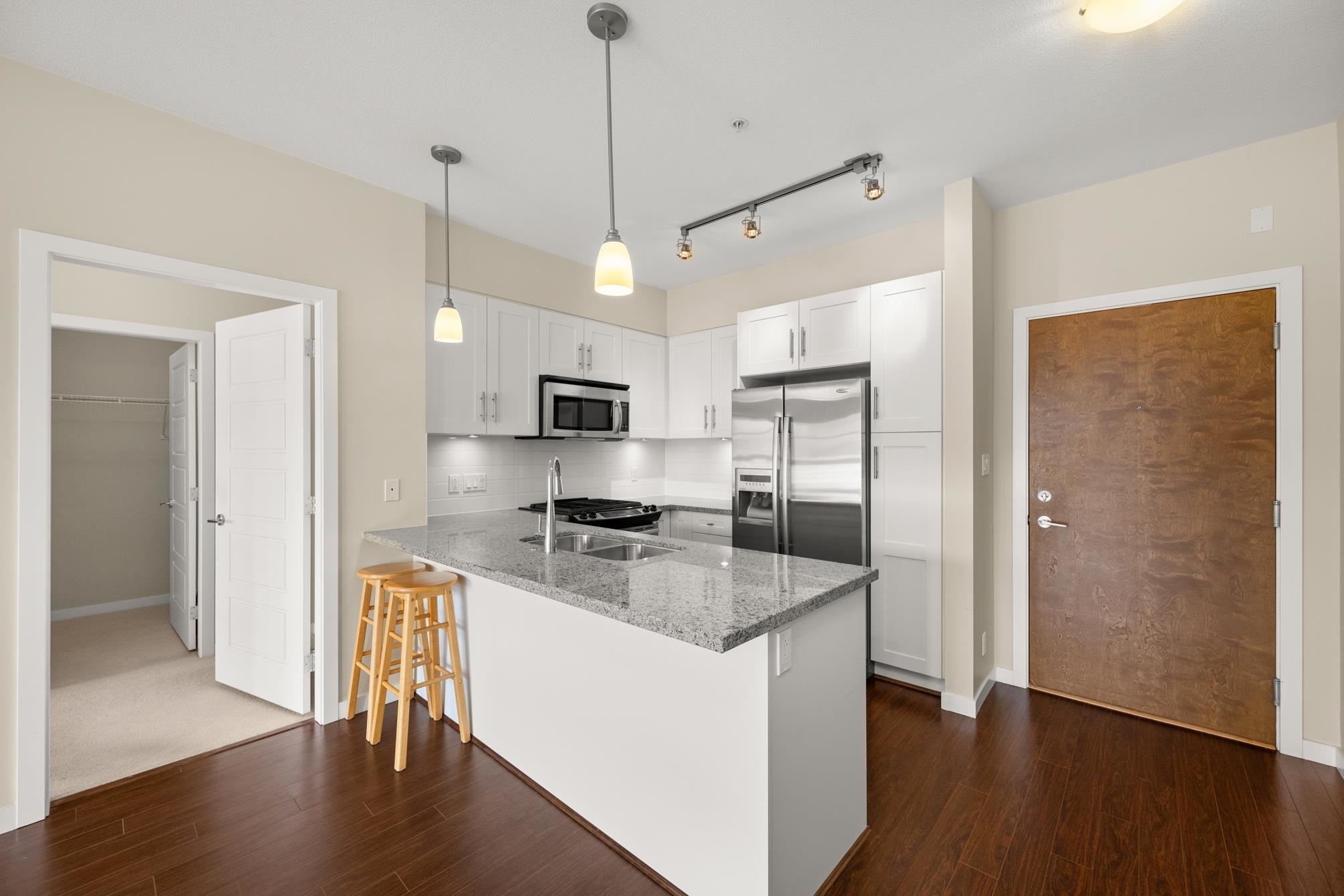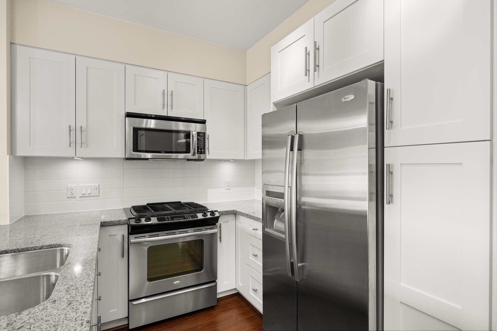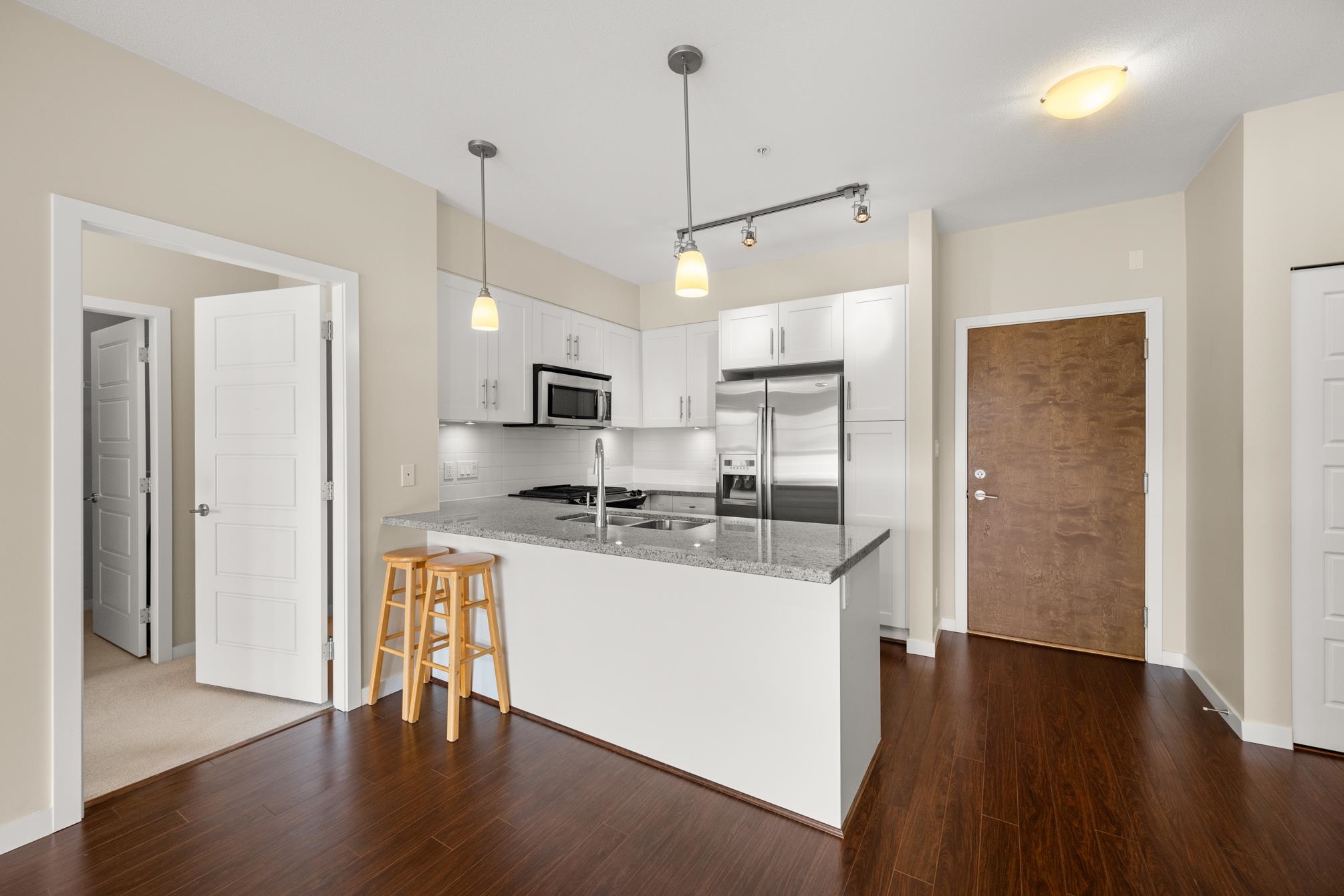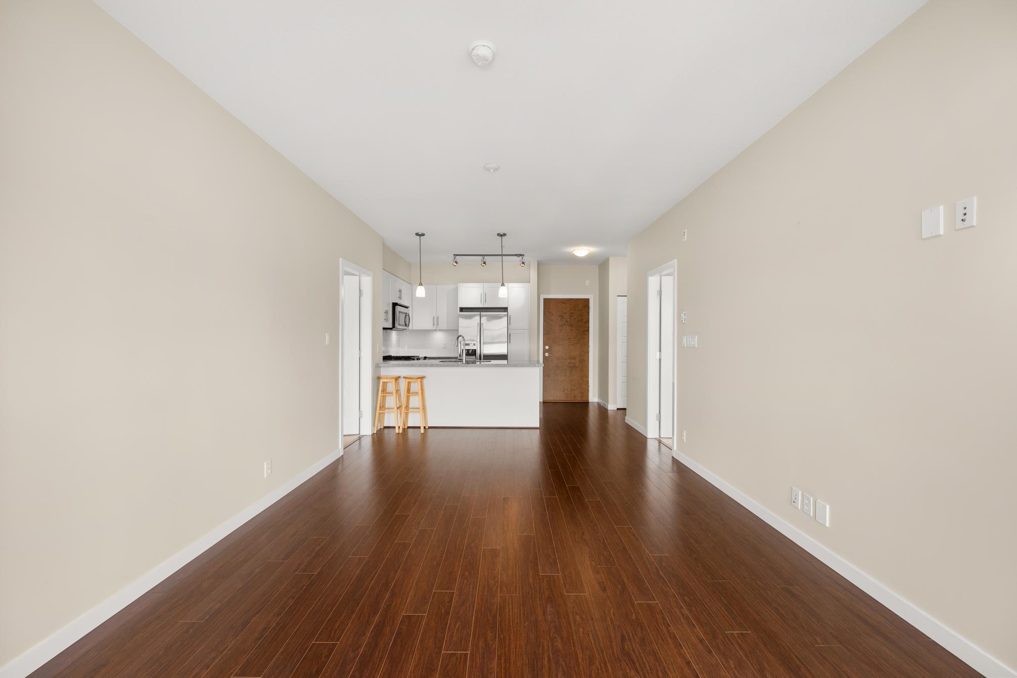 Award winning Bedford Landing. Only 2 bdrm unit available in the 55+ building offering a rare, west exposure! Original owner and in new near condition. Stainless steel appliance package. Kitchen area overlooks living and dining areas, with ample cupboard space and granite counters with an eating bar. Secured underground parking with two spaces and a convenient storage locker across the hall. Common area offers fitness area and meeting room. Location is ideal, walking distance to all that Fort Langley has to...