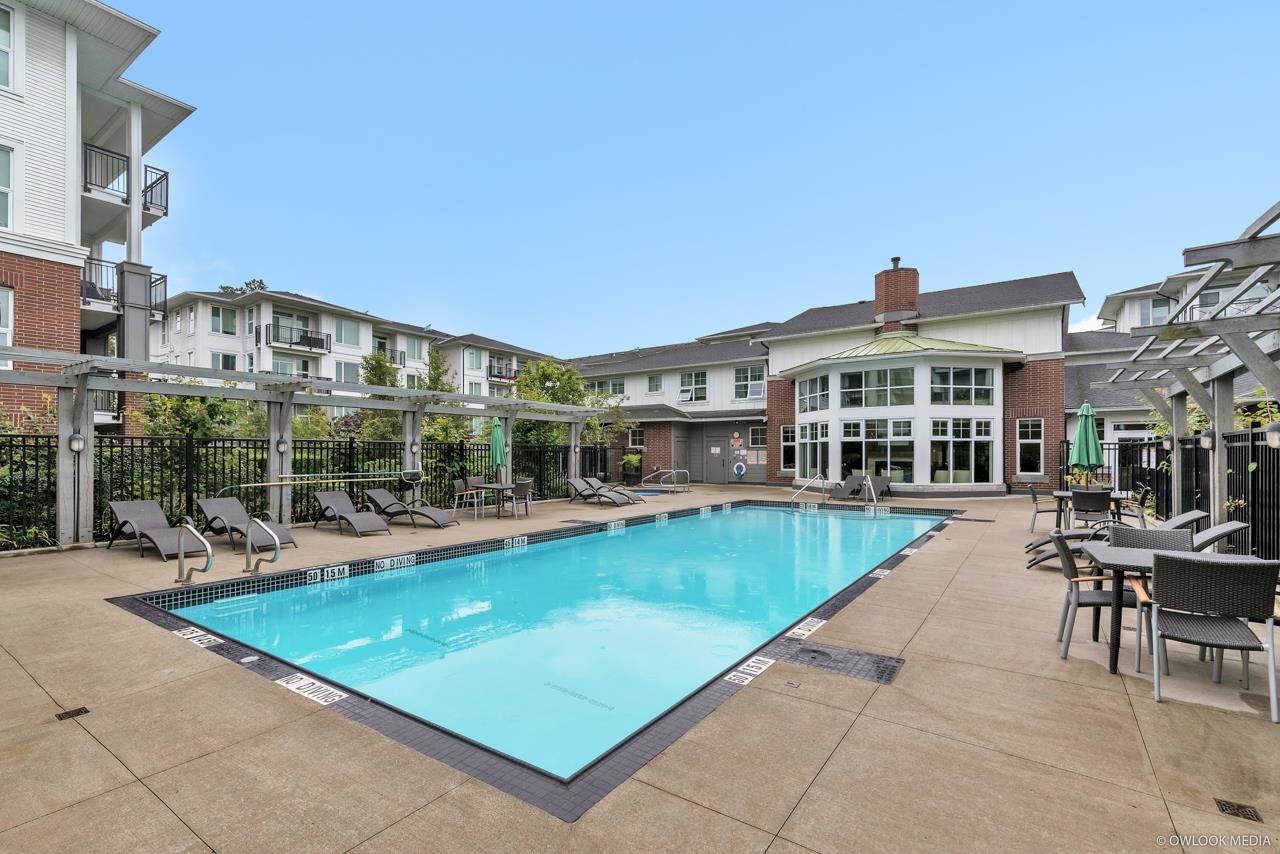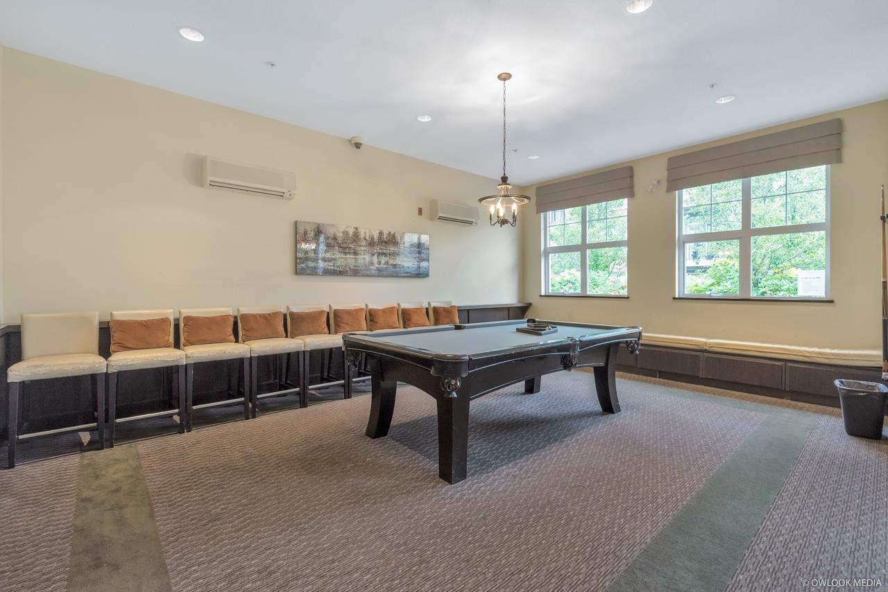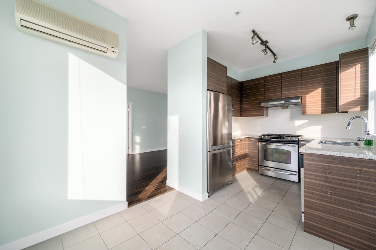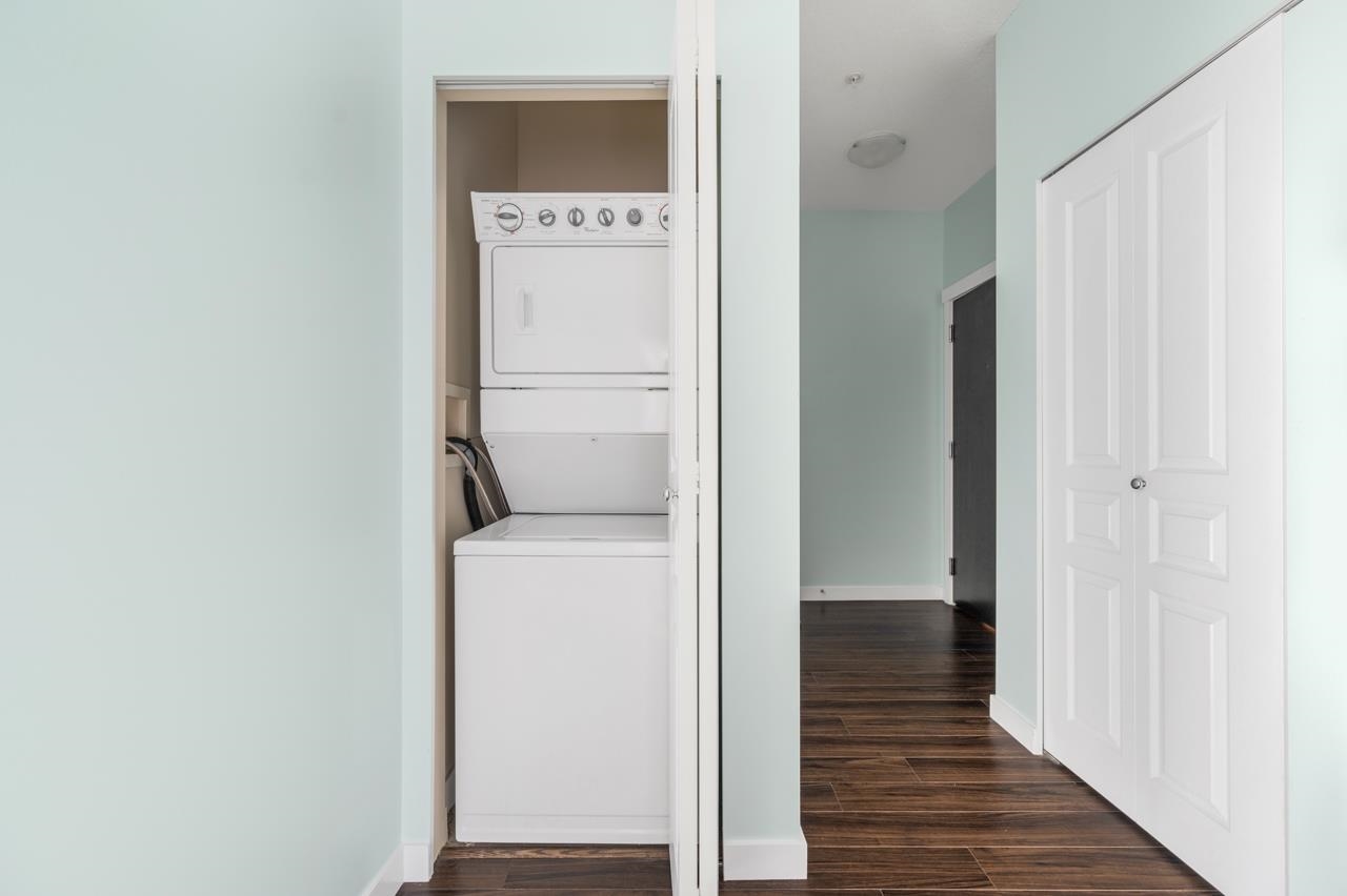 Bright well-maintained 2 bed / 2 bath ES corner unit at the Mayfair Place by Polygon. Spacious and efficient layout with 9'ceilings, large balcony, A/C, geothermal heating. Plenty of natural light overlooking courtyard and outdoor pool. Clubhouse amenities include outdoor pool, media room, party lounge and exercise room. One parking stall. Convenient central location, close to transit, walking distance to shopping, restaurants and amenities.