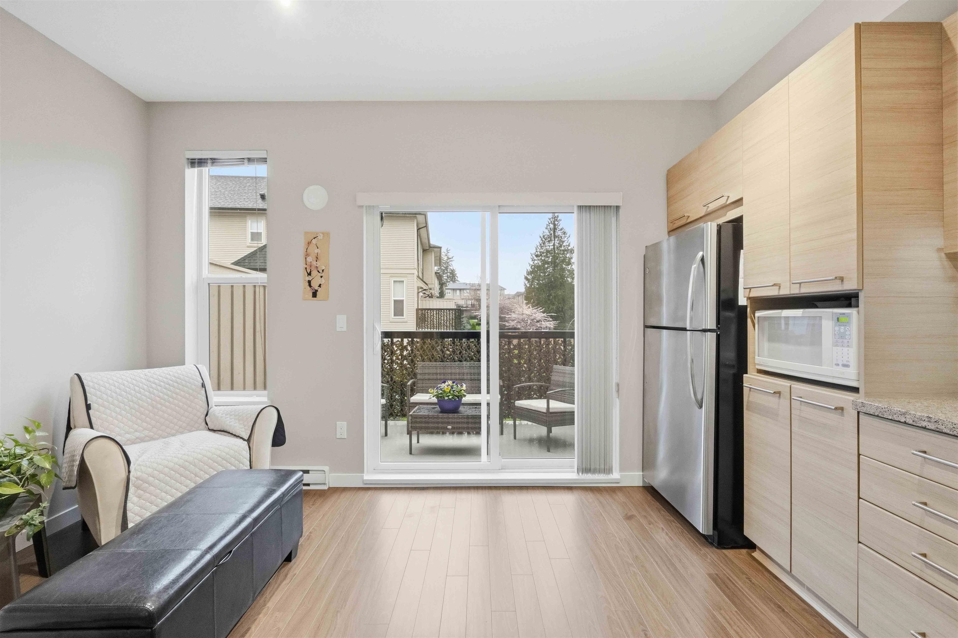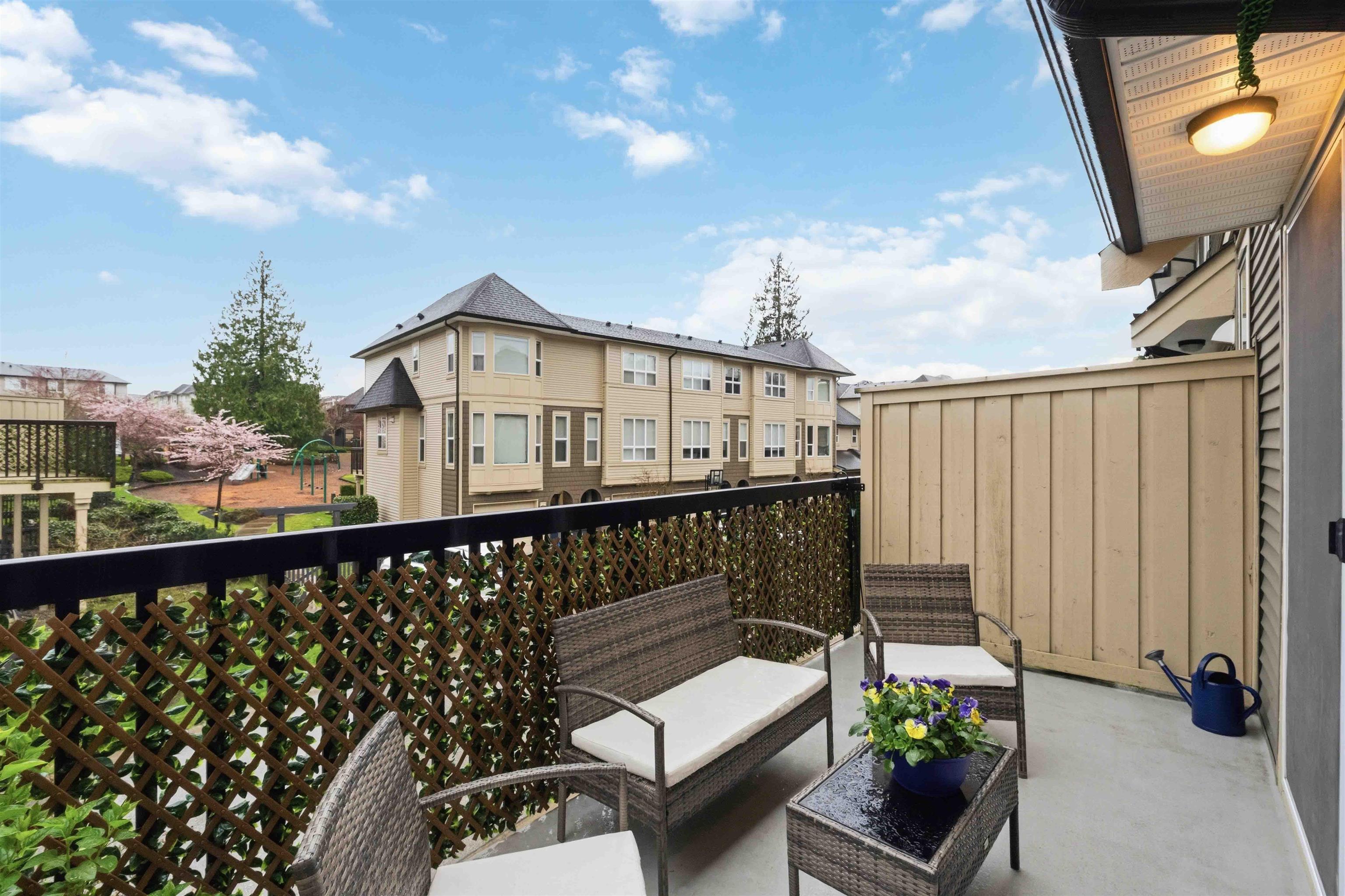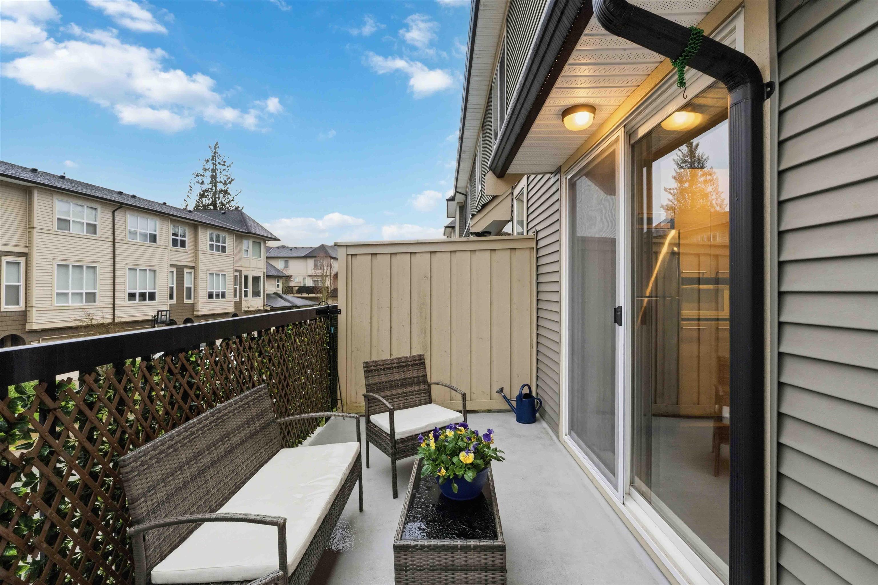MOVE-IN READY 2 bedroom, 2 bath unit of approximately 1200 sqft in conveniently located Red Maple Park, close to everything Langley has to offer! Bright, open layout on the main features a spacious living room w/ cozy electric fireplace, dedicated dining area, and modern kitchen complete w/ ample cupboard and counter space, stainless appliances, granite countertops, and breakfast bar. Up features two bedrooms, incl primary w/ full ensuite incl dual vanity and shower. Sliding patio doors from the kitchen to ...