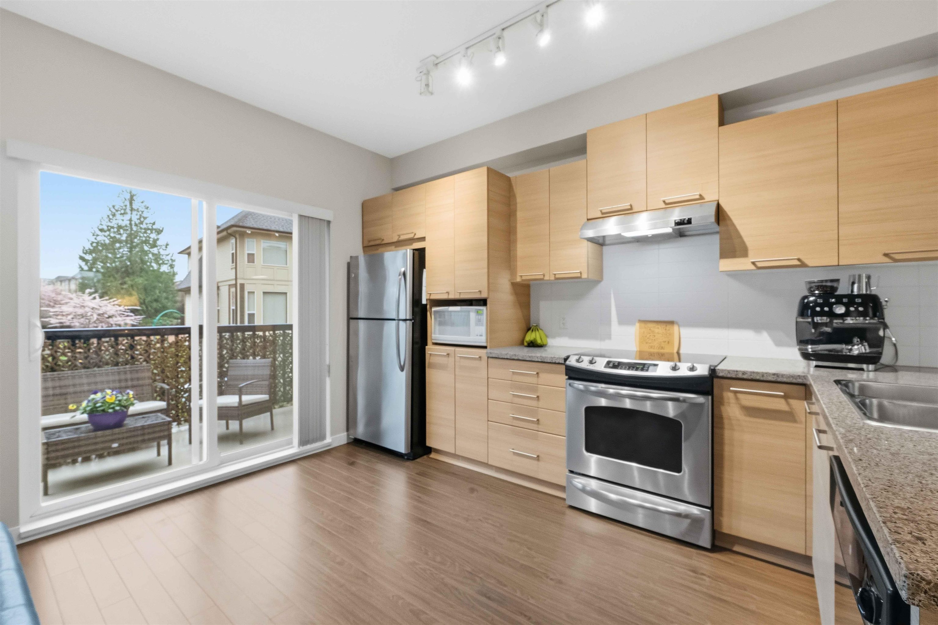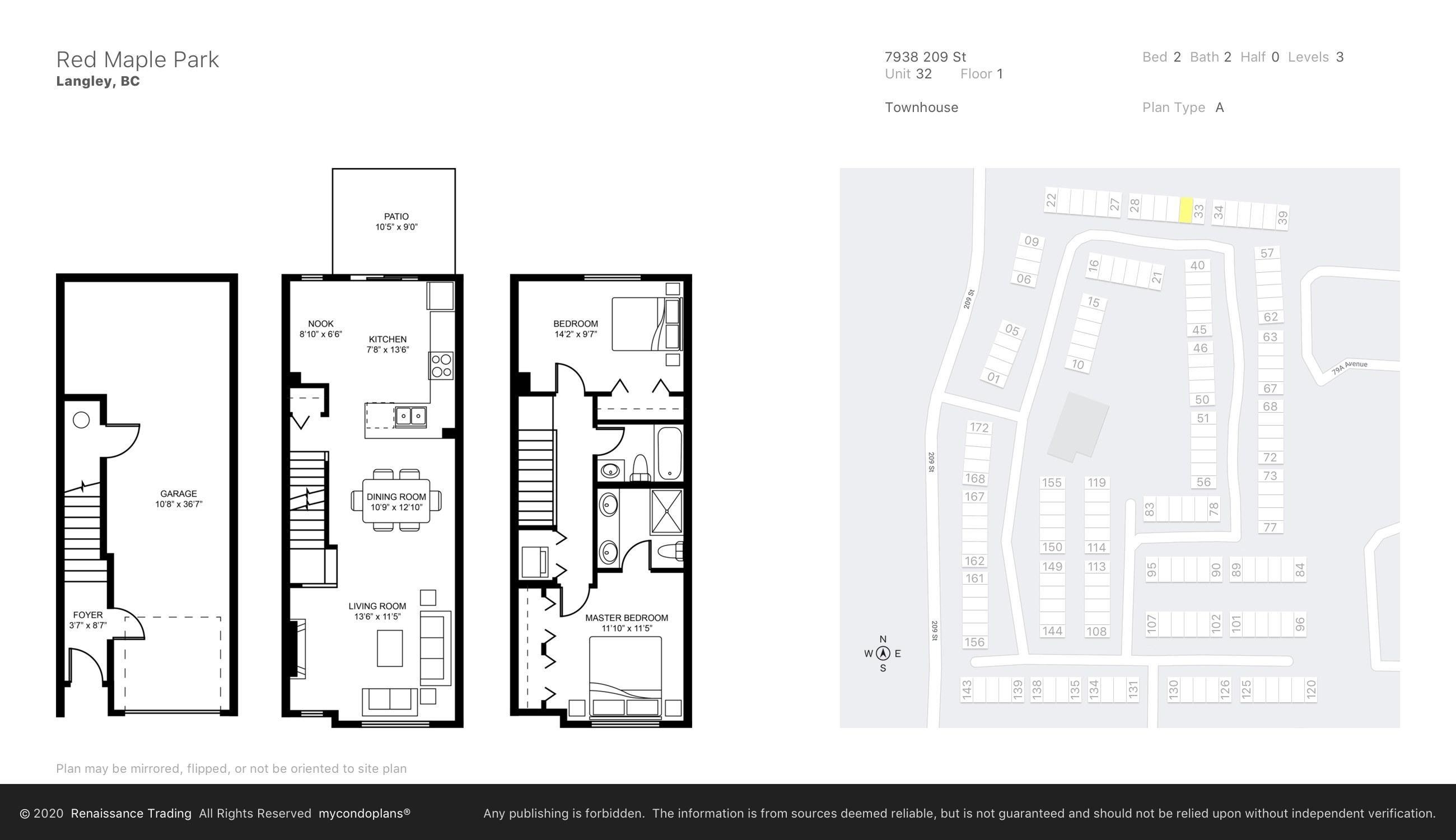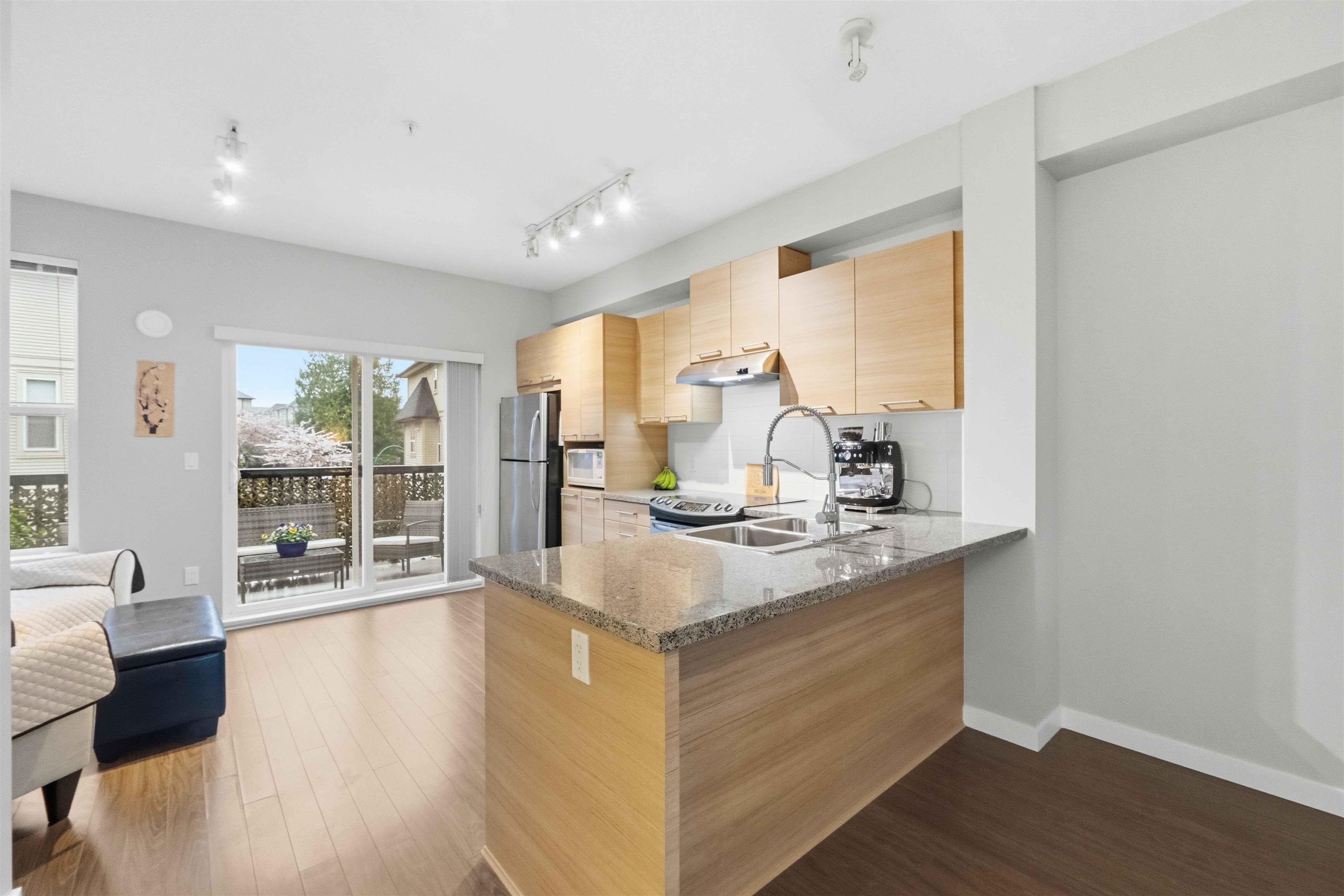 MOVE-IN READY 2 bedroom, 2 bath unit of approximately 1200 sqft in conveniently located Red Maple Park, close to everything Langley has to offer! Bright, open layout on the main features a spacious living room w/ cozy electric fireplace, dedicated dining area, and modern kitchen complete w/ ample cupboard and counter space, stainless appliances, granite countertops, and breakfast bar. Up features two bedrooms, incl primary w/ full ensuite incl dual vanity and shower. Sliding patio doors from the kitchen to ...
