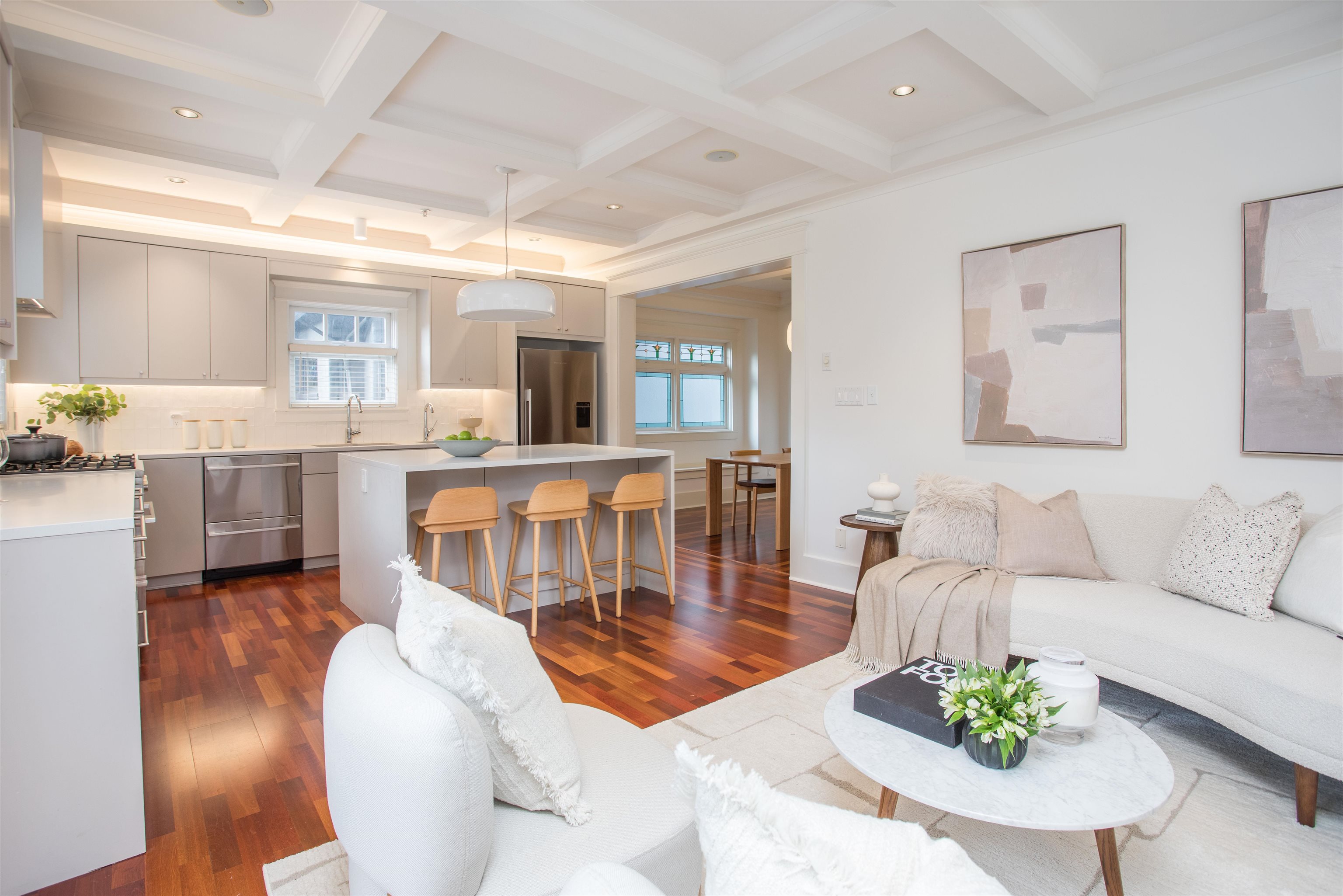 Designer half-duplex in Kitsilano, north of 4th and steps to beaches and the vibrancy of West Side amenities. An exceptional plan offering a full-width layout across both the primary and upper levels. Reimagined by Falken Reynolds Interiors, this residence blends scale, elevated design, and a premier location. Comprised of 3 bedrooms, 3 baths w/ multiple exposures, an inviting front veranda and a southern terrace adjacent to the family room. The custom kitchen features a large island, premium appliances, Ha...