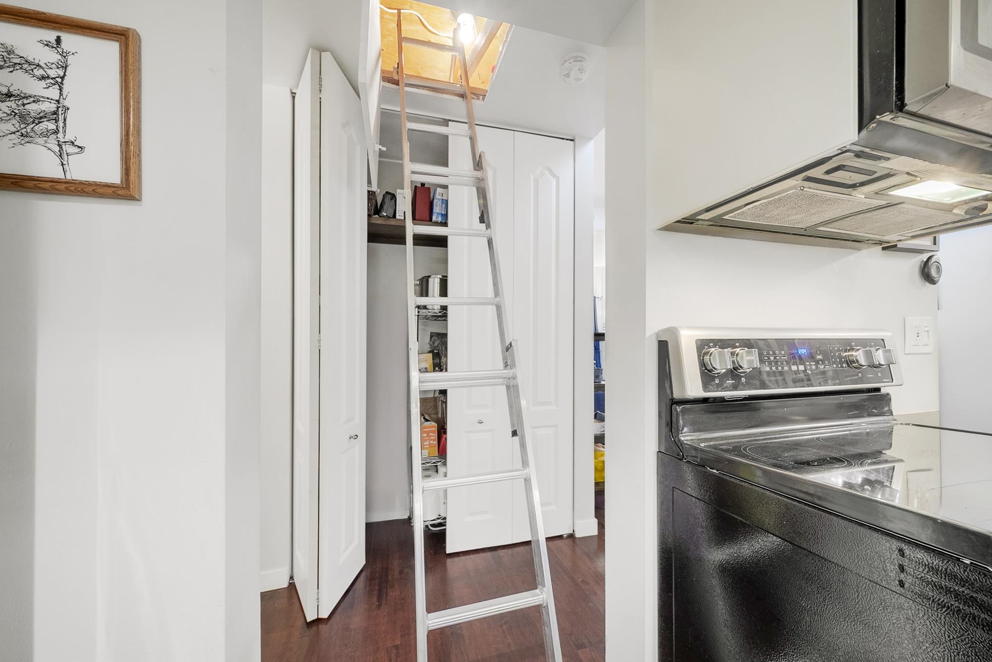 Top floor and nearly 13-foot vaulted ceilings. Bright, airy, and open. Lush greenery right outside your windows creates wonderful privacy and delivers cozy, elevated tree-house vibes you’ll love coming home to. Here’s the fun twist: a super-unique 377 sqft full attic, perfect as in-suite storage or a secret kid-cave / creative hideaway, complete with a rolling access platform. Separate underground storage and you finally have room for all the summer and winter toys. Large, renovated kitchen flows into a...