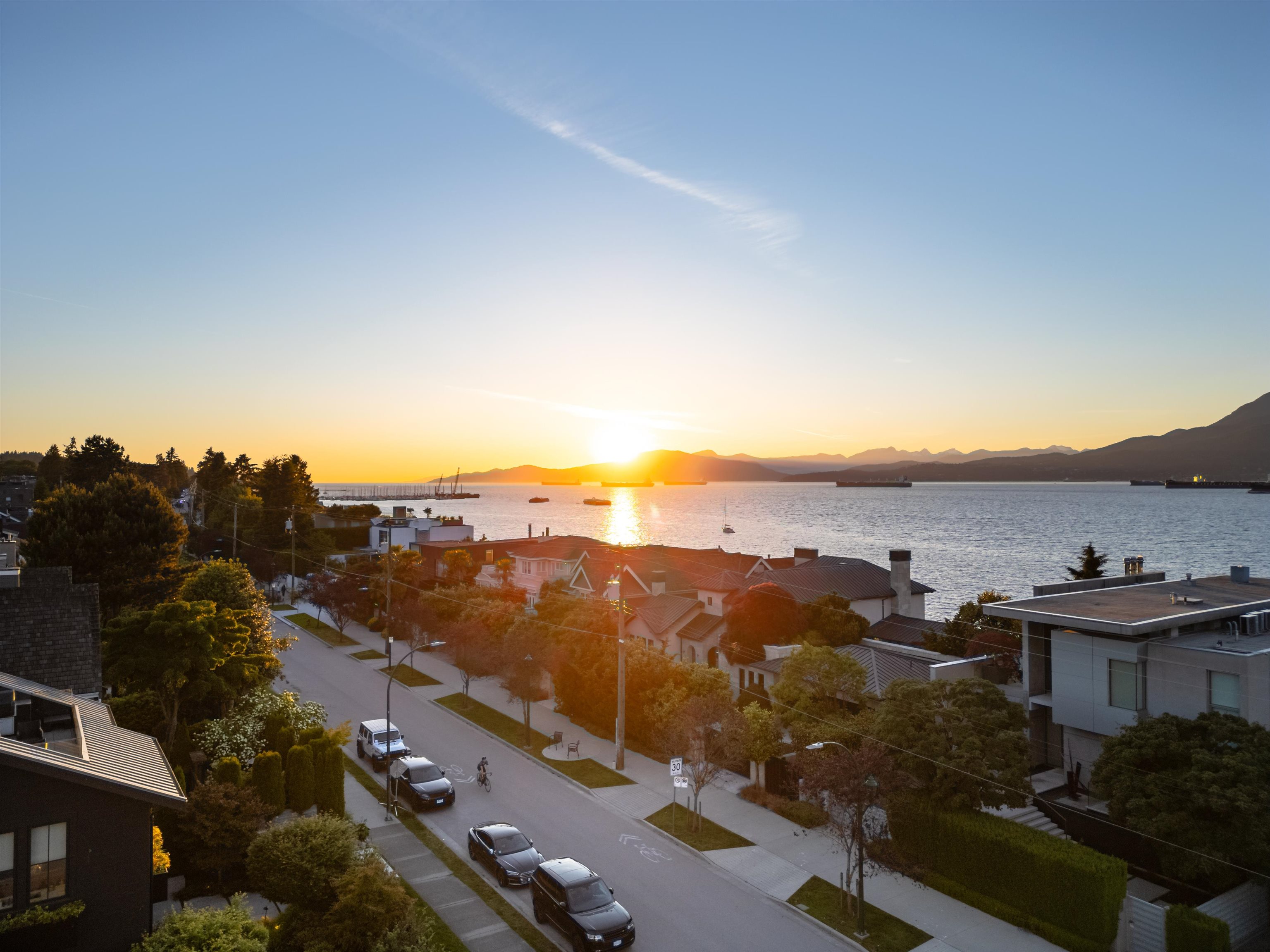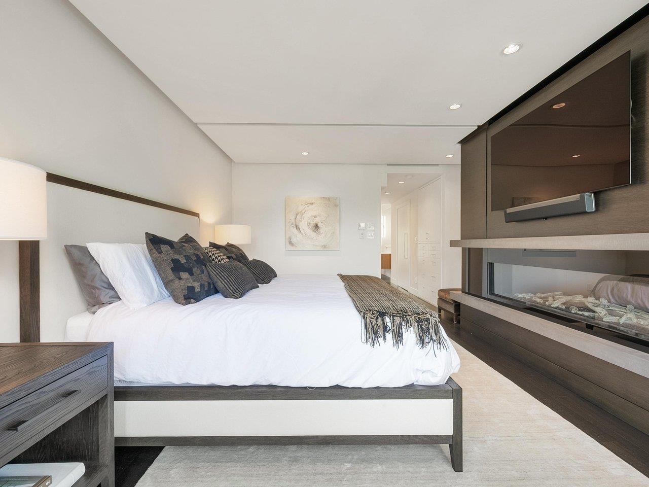 Located prominently on the'GOLDEN BOULEVARD'on the 'GOLDEN MILE', this sleek/completely renovated/executive home is a true find. The reverse floorpan is masterfully executed, with the sumptuous Primary Suite/guest suite conveniently located on the main level. Upstairs, the jaw dropping Living Room includes extensive millwork, a linear fireplace and Wet Bar with an adjacent patio with views to the water/mountains. The Kitchen is a chef's dream, including with a full suite of Miele appliances 6 Burner range,...