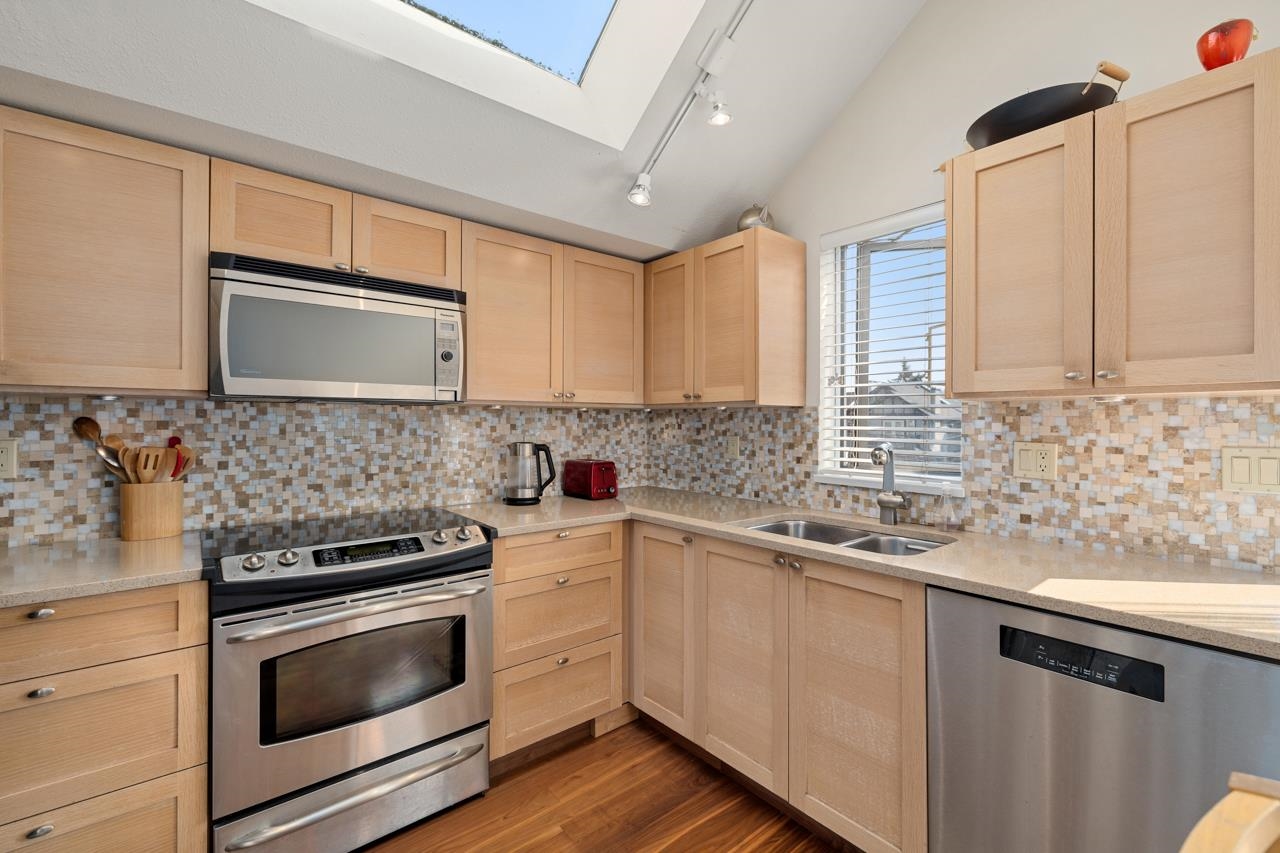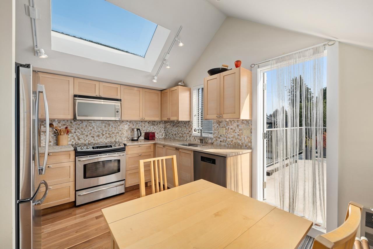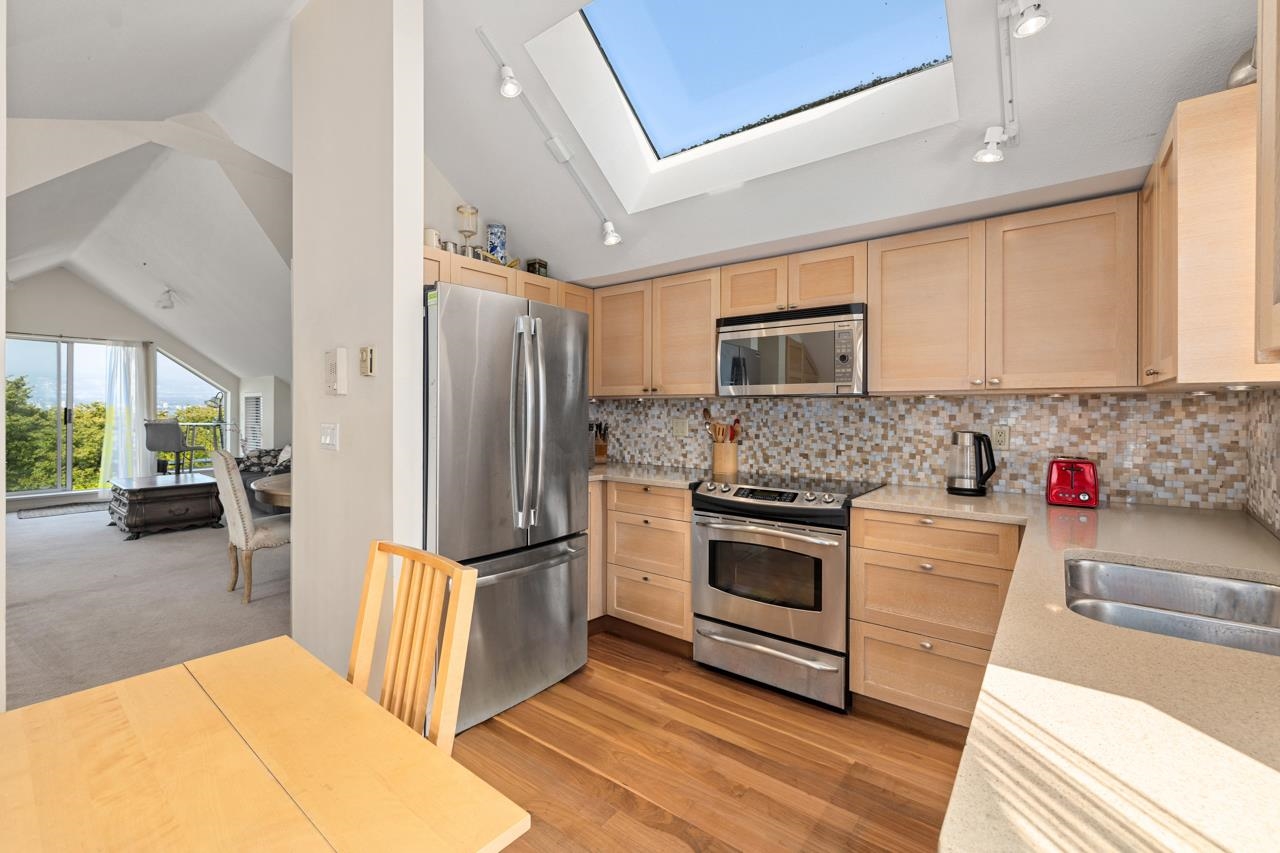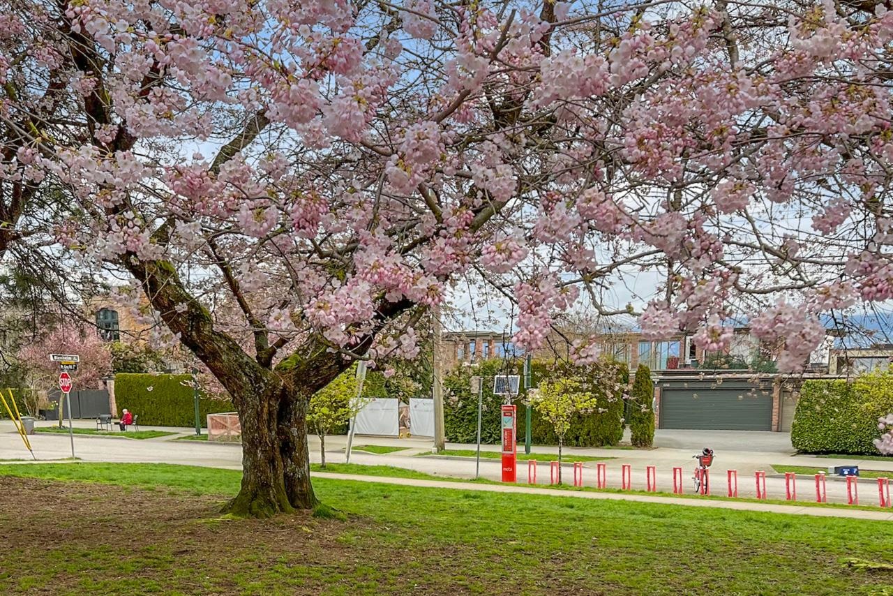 TOP 1/2 duplex with City, water & mountain VIEWS overlooking Cherry Blossom Park. Ideally situated in a special pocket of Kitsilano, this property has North, South & West exposures with over 400 sq ft of decks. 2 bedrooms & 2 baths, vaulted ceilings and skylights provide plenty of natural light. Well maintained with renovated kitchen & baths. Adjacent to Point Grey Road and steps away from Jericho Beach, RVYC & Jericho Tennis Club. Kitsilano & Point Grey restaurants and coffee shops a short walk away. Sing...