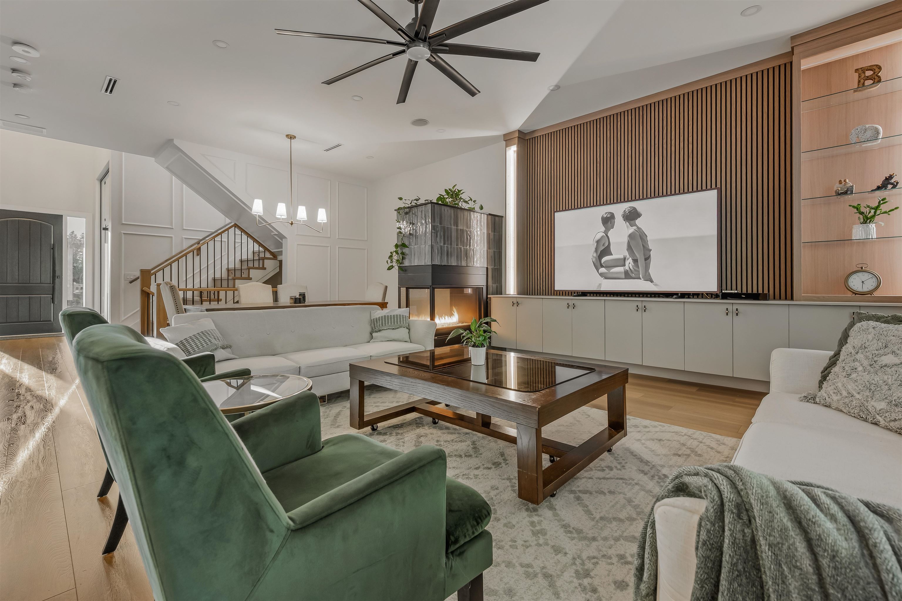 This captivating craftsman-style CUSTOM HOME is a true showpiece. Striking CURB APPEAL, meticulously crafted exterior and 6,300-sf+ of thoughtfully curated interior living. Inside, experience designer features such as a hidden powder room, 3-way fireplace and glass-enclosed den with VAULTED CEILINGS. The transitional interior is defined by soaring 20-ft ceilings, radiant heating, HIGH-END MILLWORK and finishings throughout. The modern kitchen is equipped with built-in F+P appliances incl. beverage maker, ga...