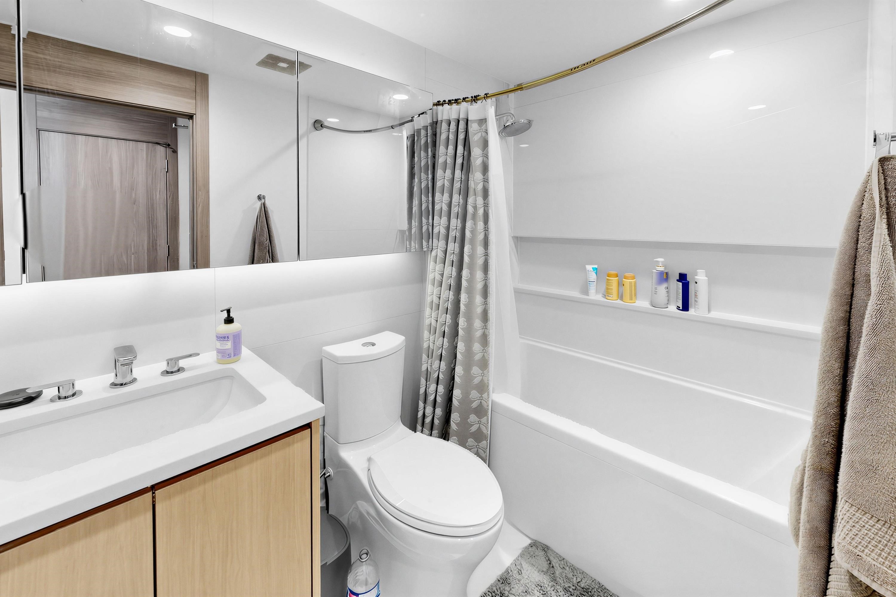 Welcome to this bright and quiet 551 sq.ft. one-bedroom home featuring stunning southeast-facing lake and city views. Enjoy year-round comfort on the 226 sq.ft heated balcony. This well-designed unit offers air conditioning, high-end s/s appliances, high ceiling, roller blinds and a smart thermostat. Exceptional amenities include 24/7 concierge service, games room, outdoor deck, media/music room, study/library, multi-purpose room, fully equipped gym, pet wash room, and car wash station. Comes with 1 parking...