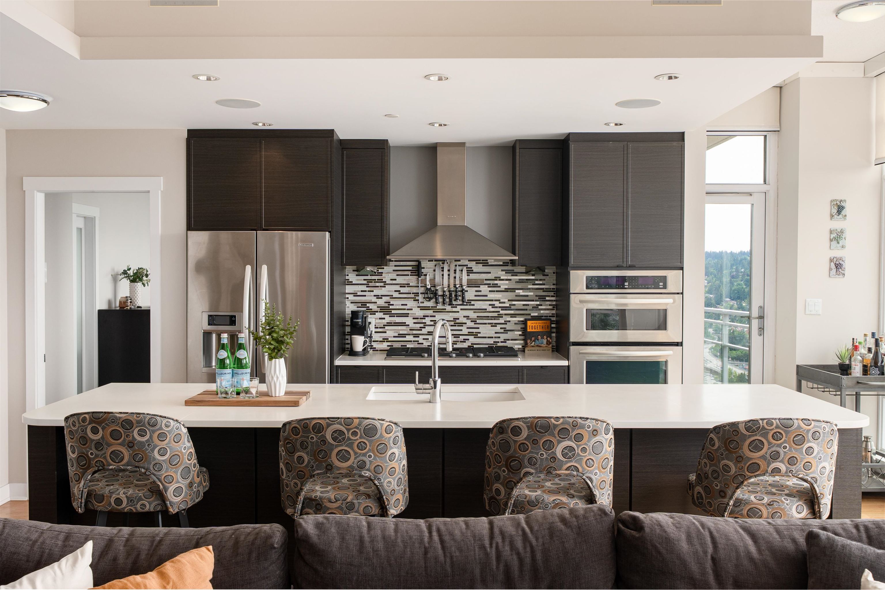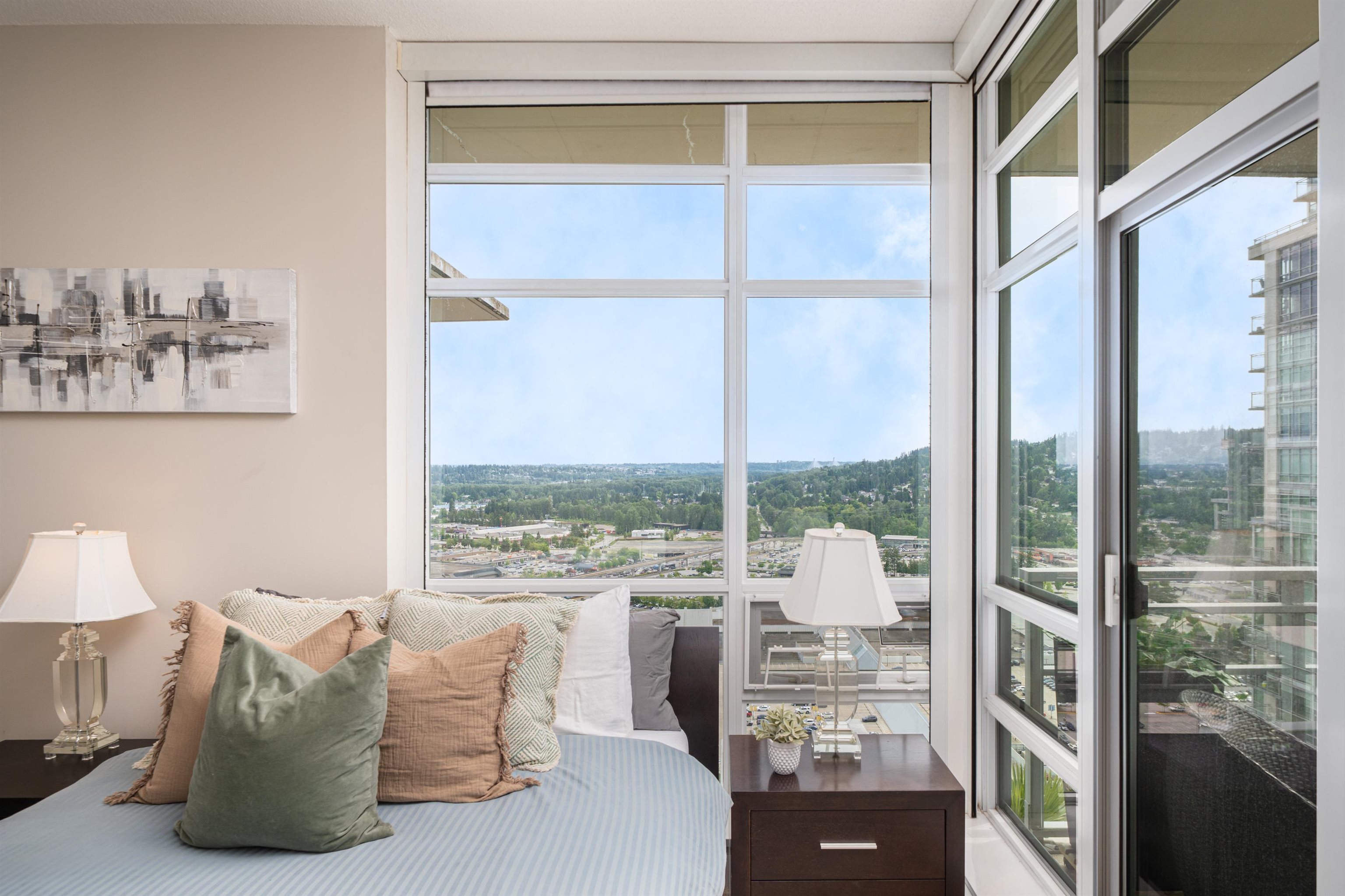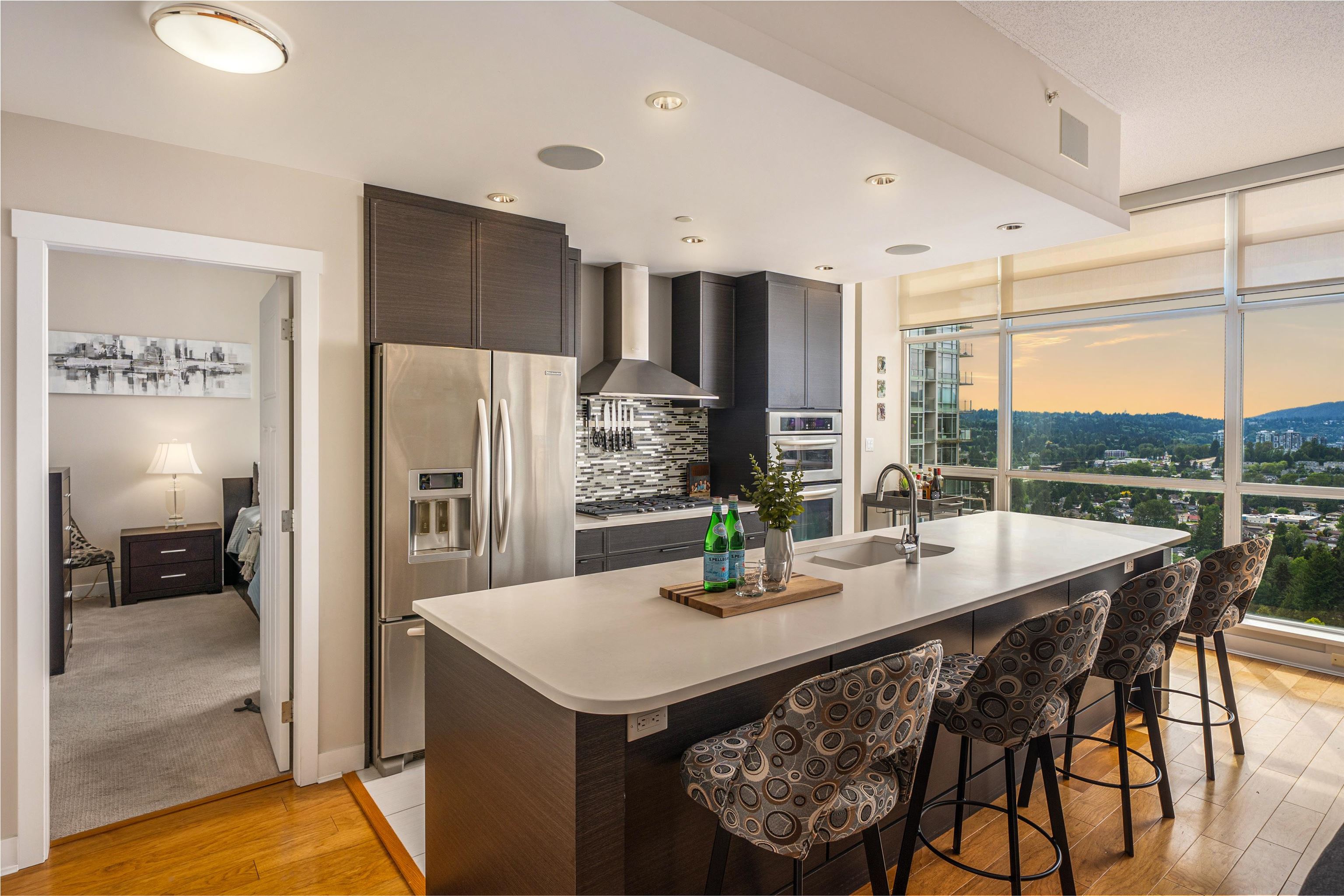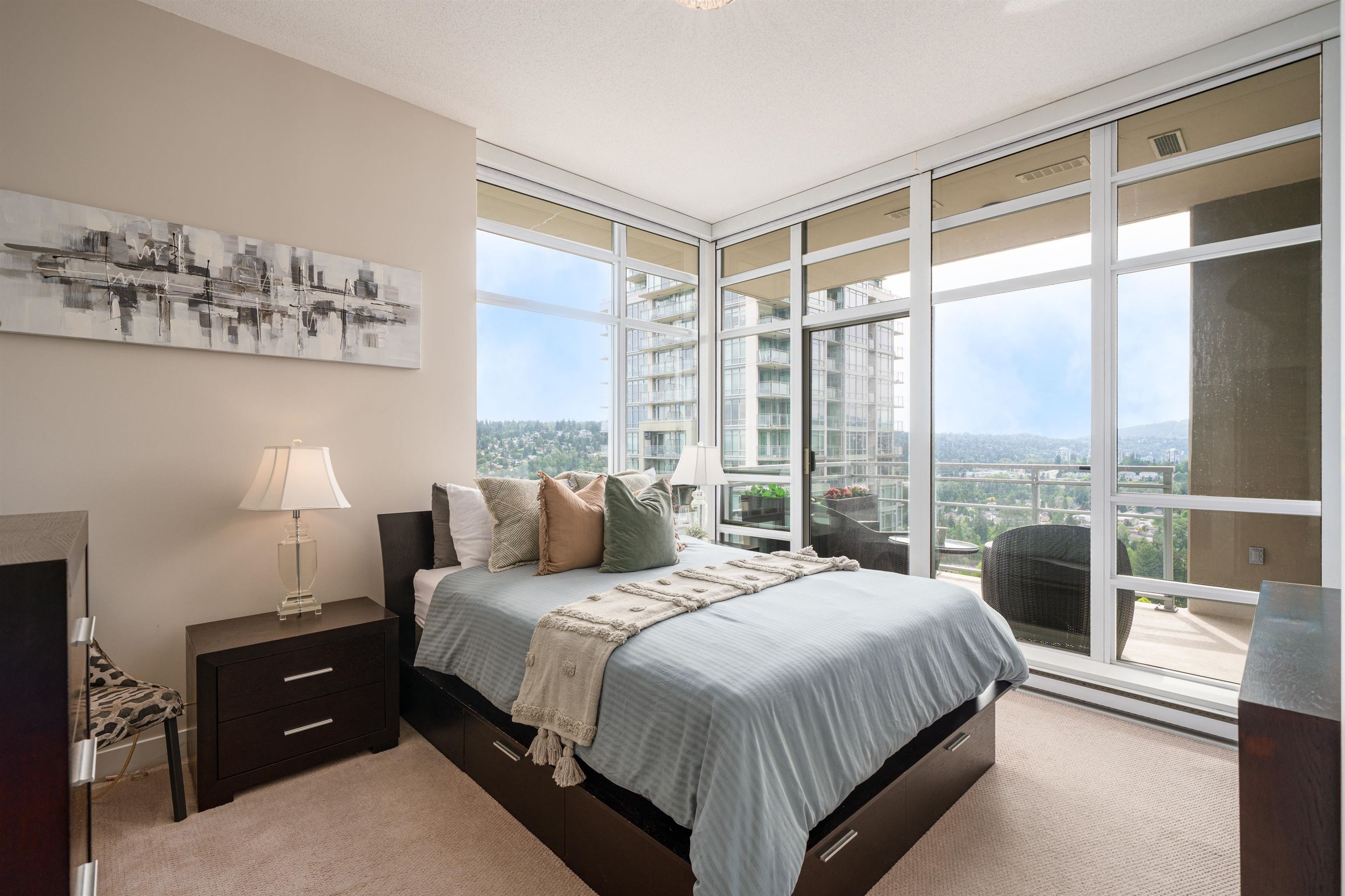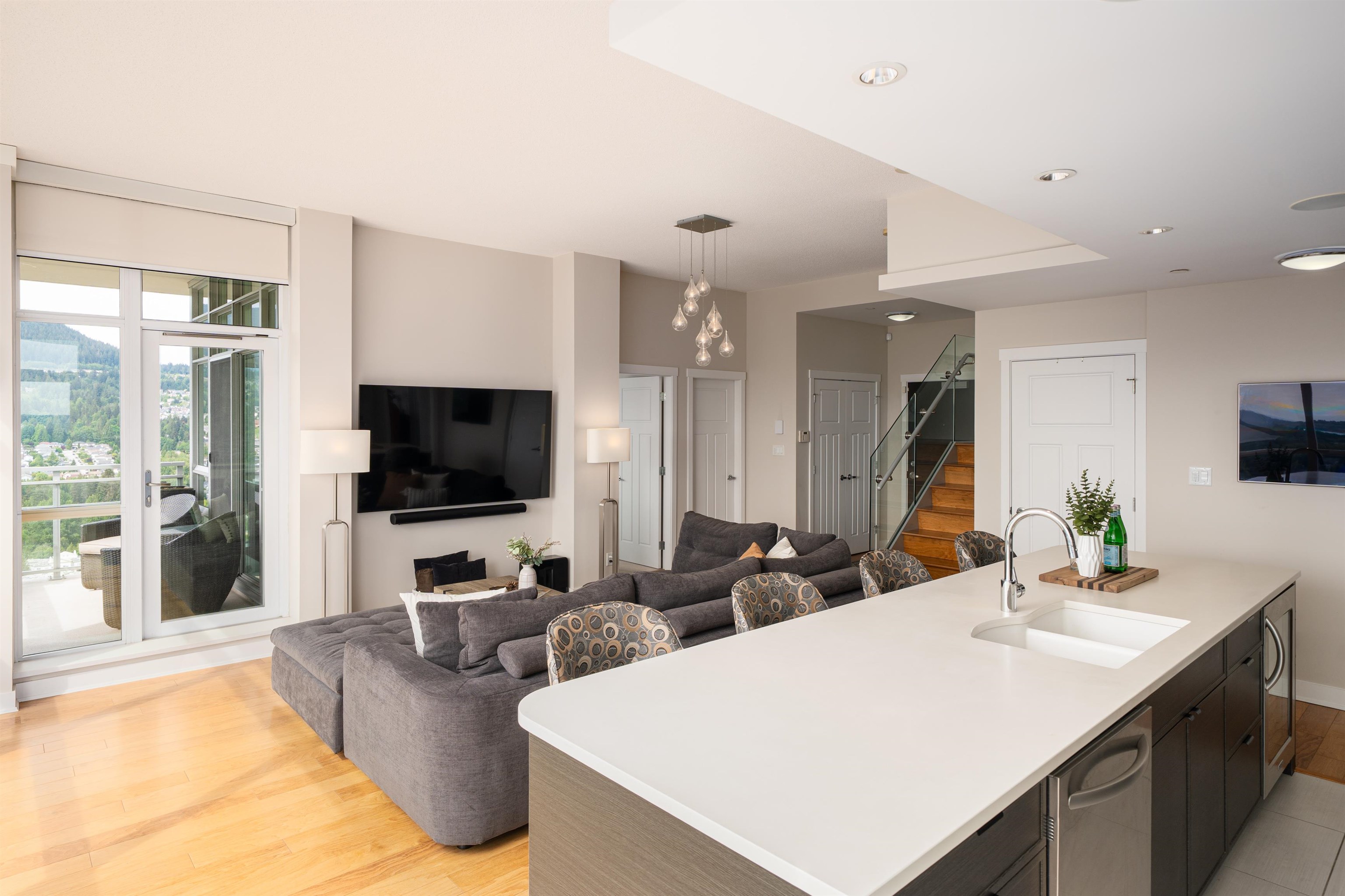 Elevate your lifestyle in this signature two-storey penthouse soaring above the heart of Coquitlam. Walls of glass showcase cinematic views of Westwood Plateau, Burrard Inlet, and the city skyline, while rich hardwood and refined designer finishes create a striking, modern ambiance. Entertain at the dramatic 12-ft kitchen island with wine fridge, unwind in the renovated spa-inspired ensuite, and enjoy smart luxury with Sonos, powered blinds, and integrated lighting. Bedrooms are privately separated with the...