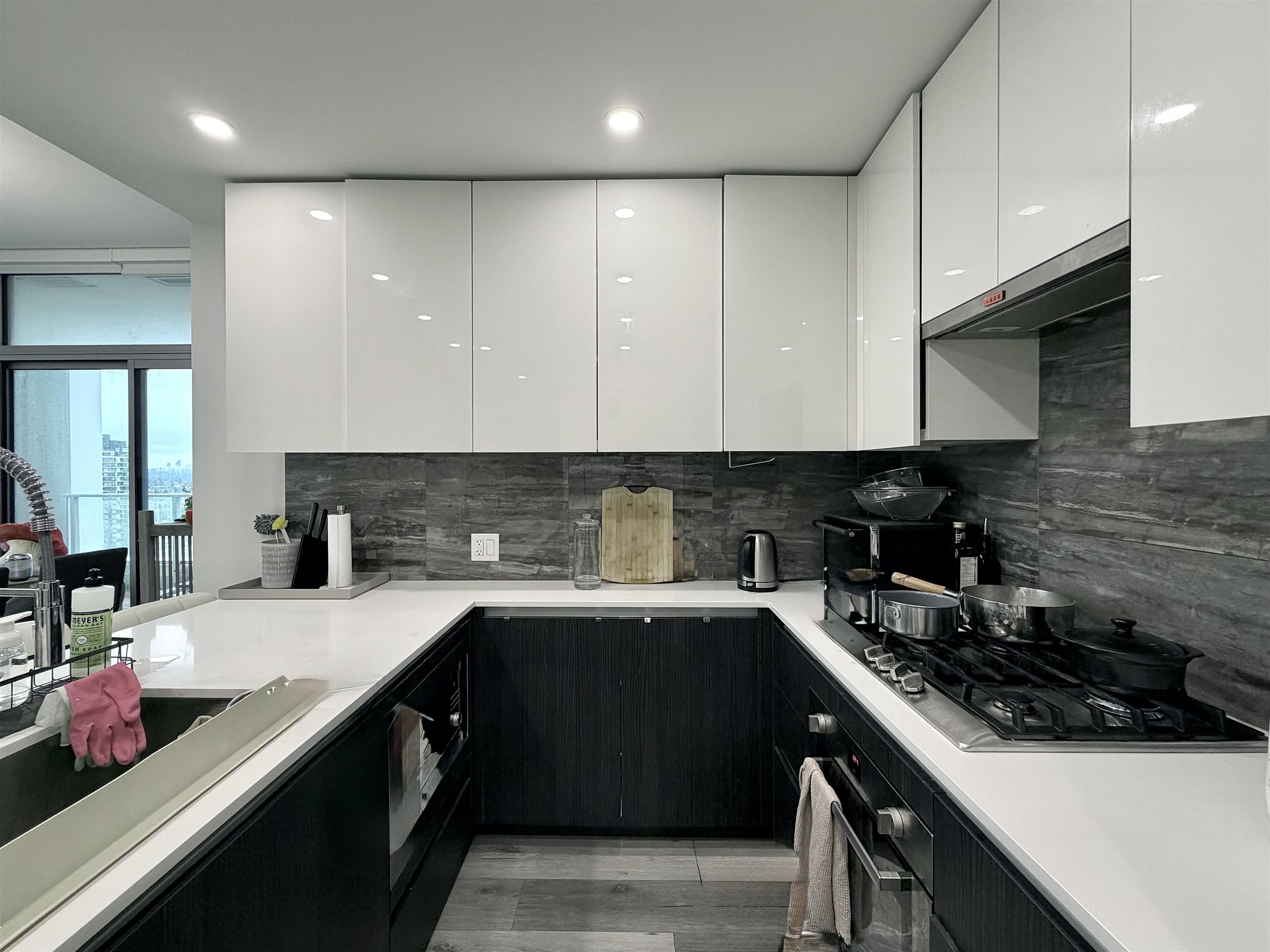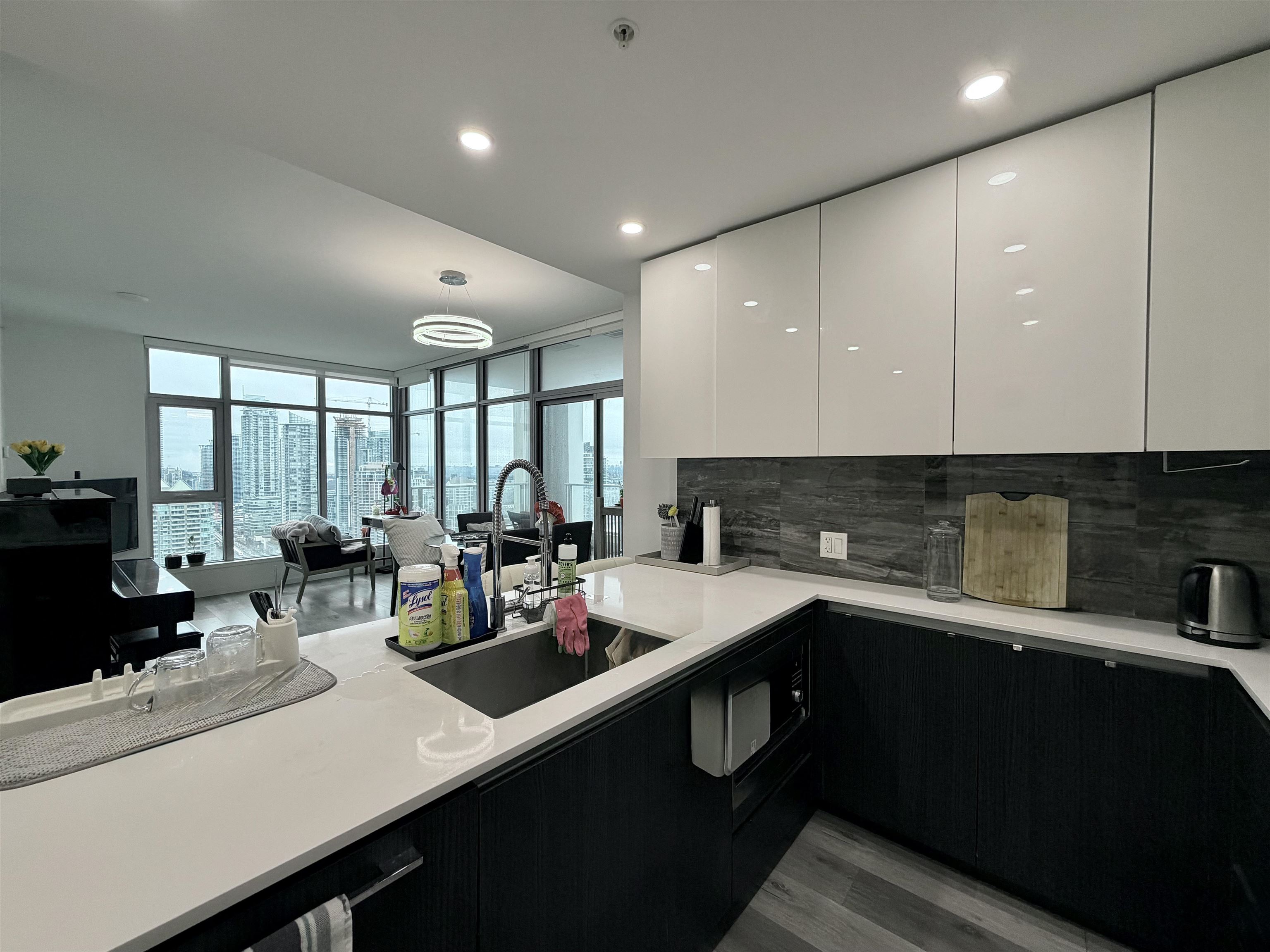Elevated on the 34th floor, this stunning 2-bed + den residence offers breathtaking views and a refined living experience above the city. Thoughtfully designed with warm laminate flooring and an open-concept layout, the home is perfect for both everyday comfort and stylish entertaining. The modern kitchen features sleek stainless steel appliances and ample workspace for home cooking. Enjoy two private balconies, a spacious primary bedroom with walk-in closet and custom organizer, two full bathrooms, and ful...