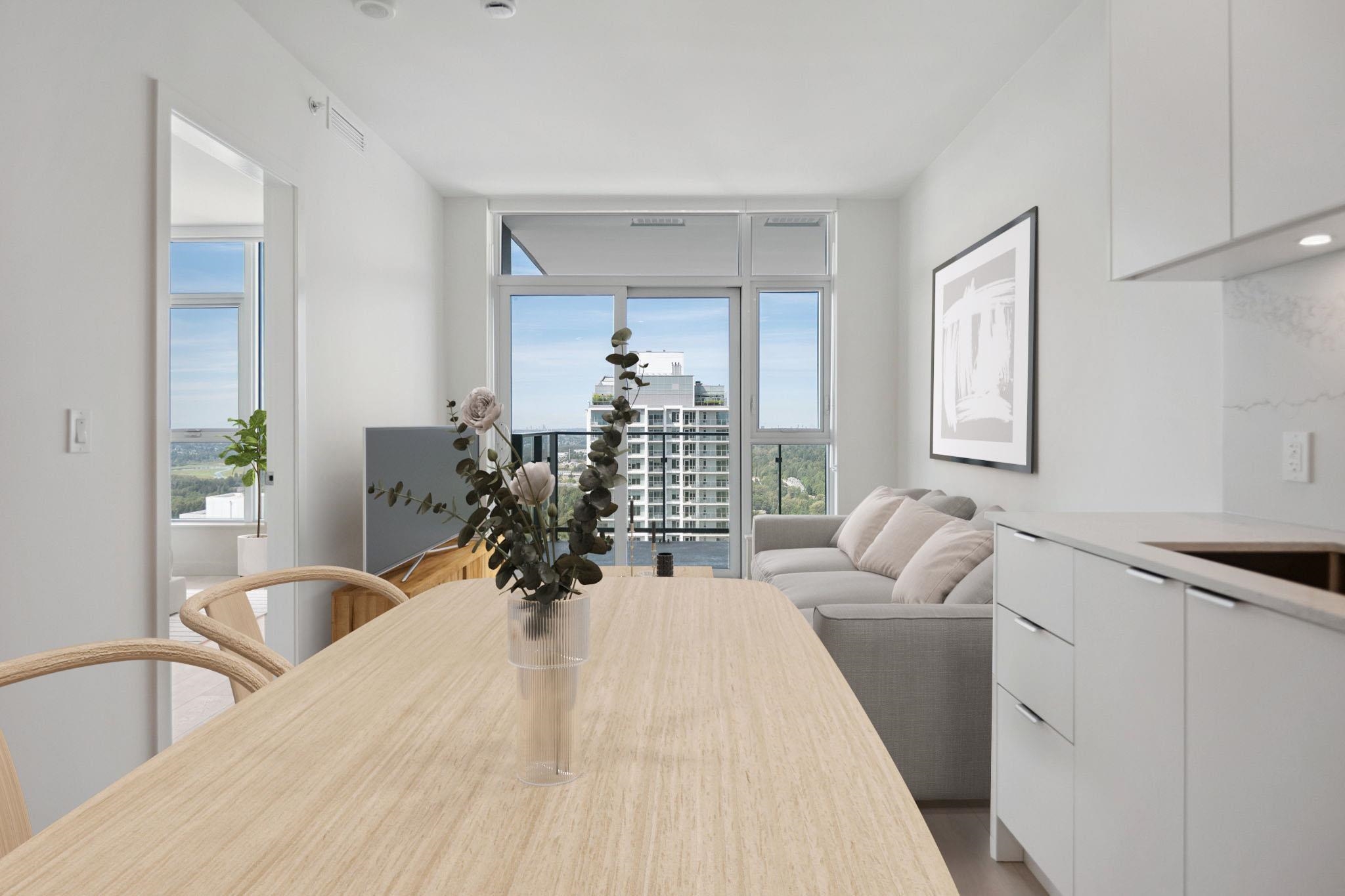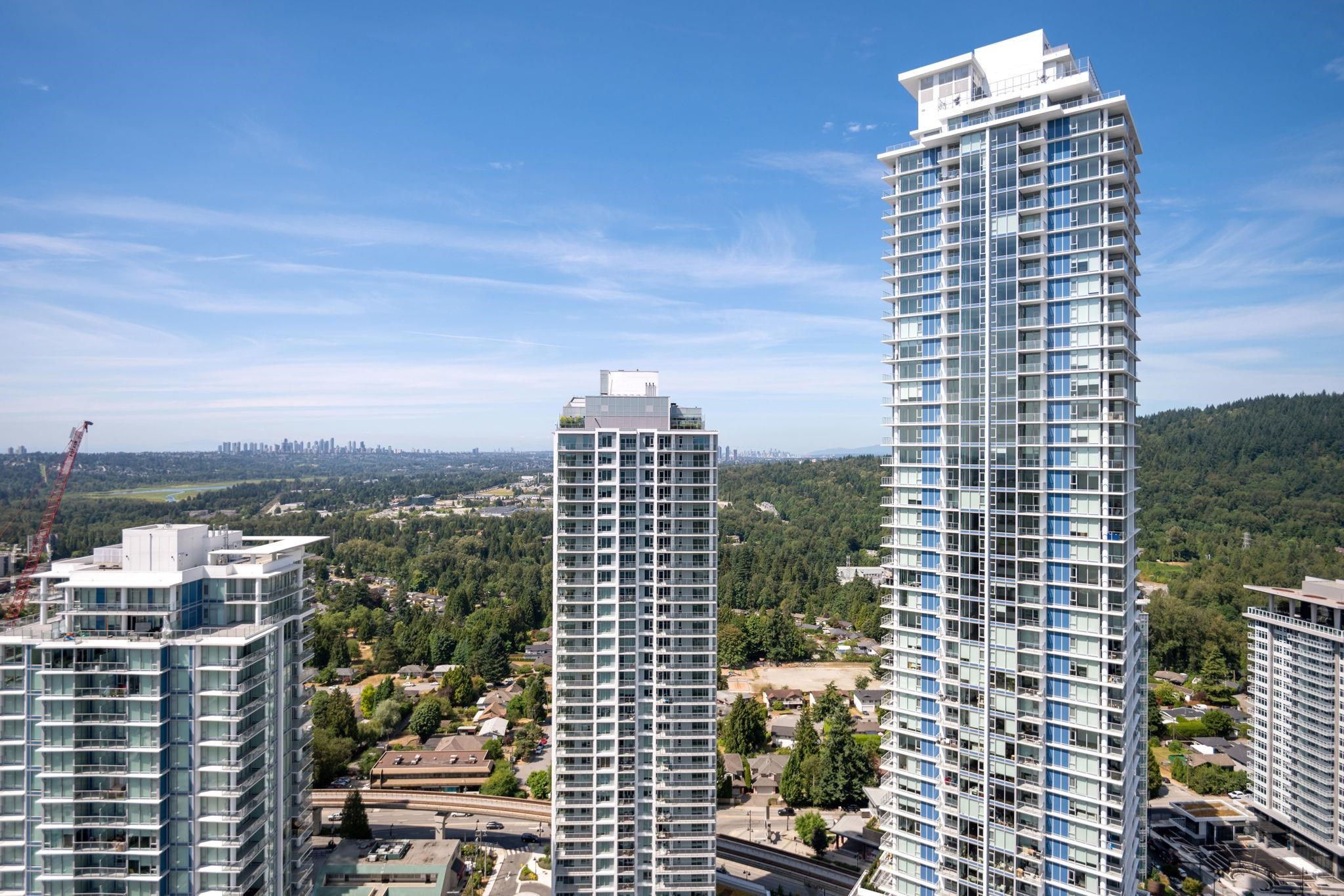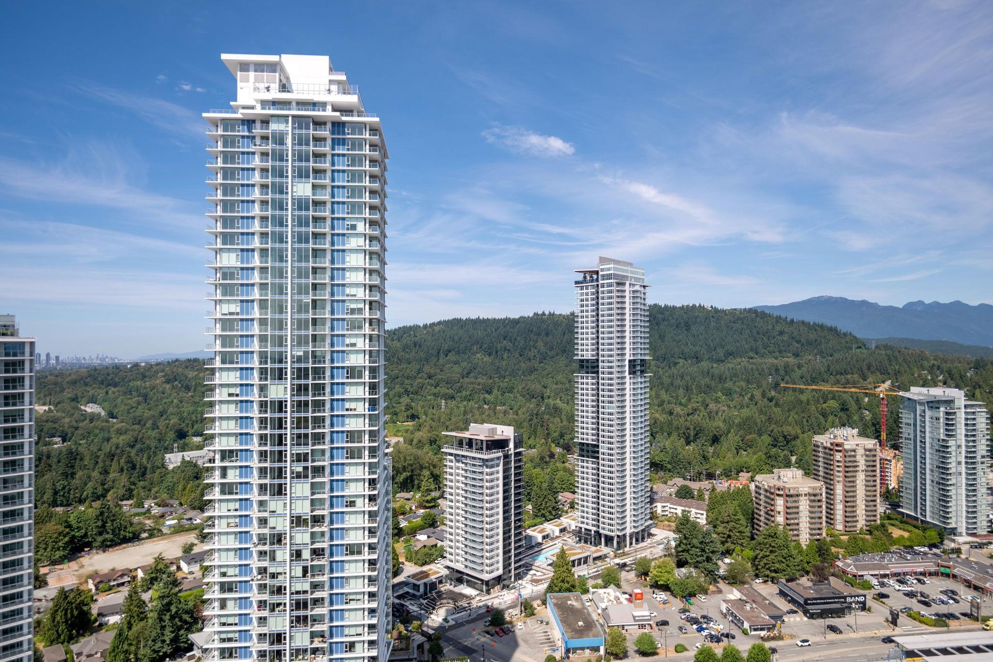 WELCOME TO JINJU- Perched on the 34th floor with stunning West Coquitlam views, Suite 3405 is a masterpiece of modern design, welcomes you with breathtaking city and mountain views. This airy, open-concept residence boasts 522 SQFT of refined living space, enhanced by 9-ft ceilings, ample storage solutions, spa-like bathroom w/soaker tub, AIR CON and full size washer/dryer. The gourmet kitchen, w/ its L-shaped layout, features integrated Bosch appliances, sleek quartz countertops. Just steps to Burquitlam s...