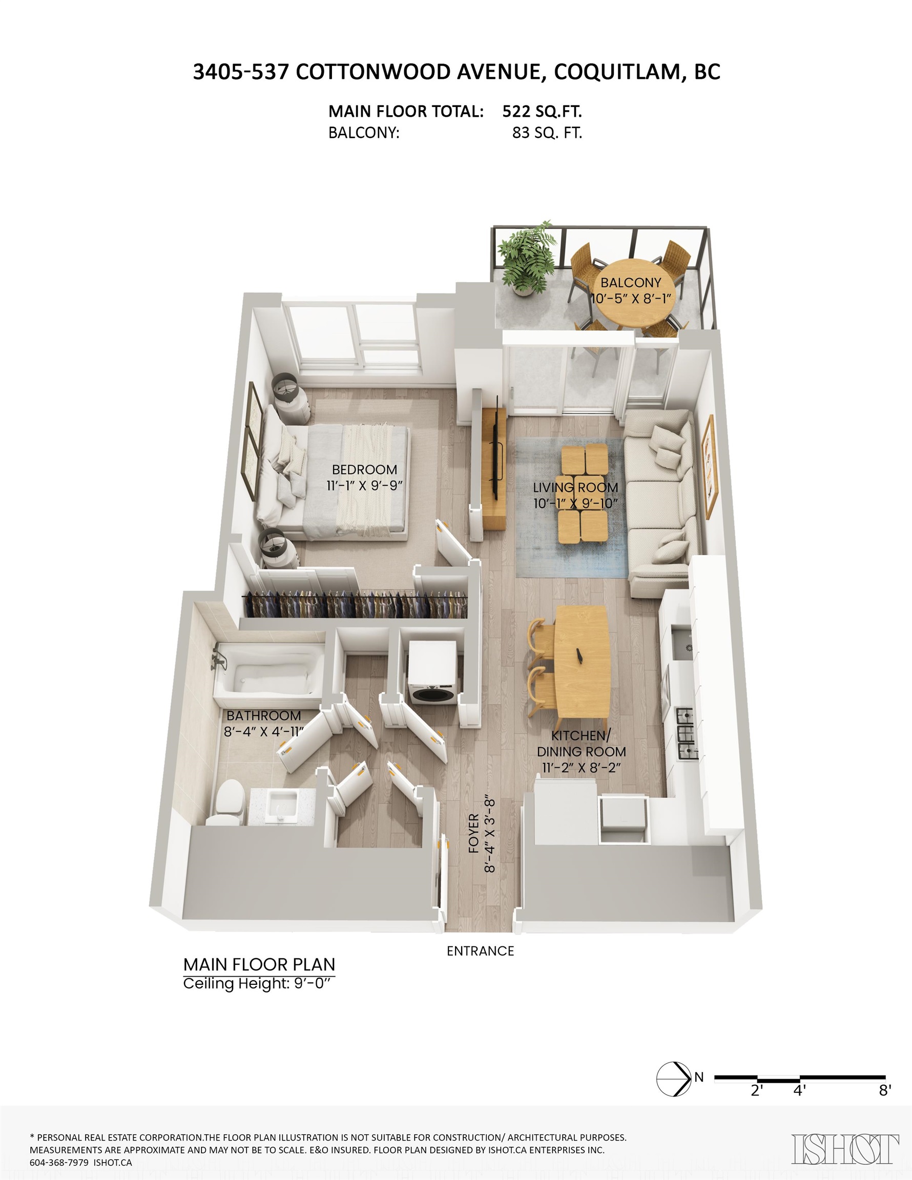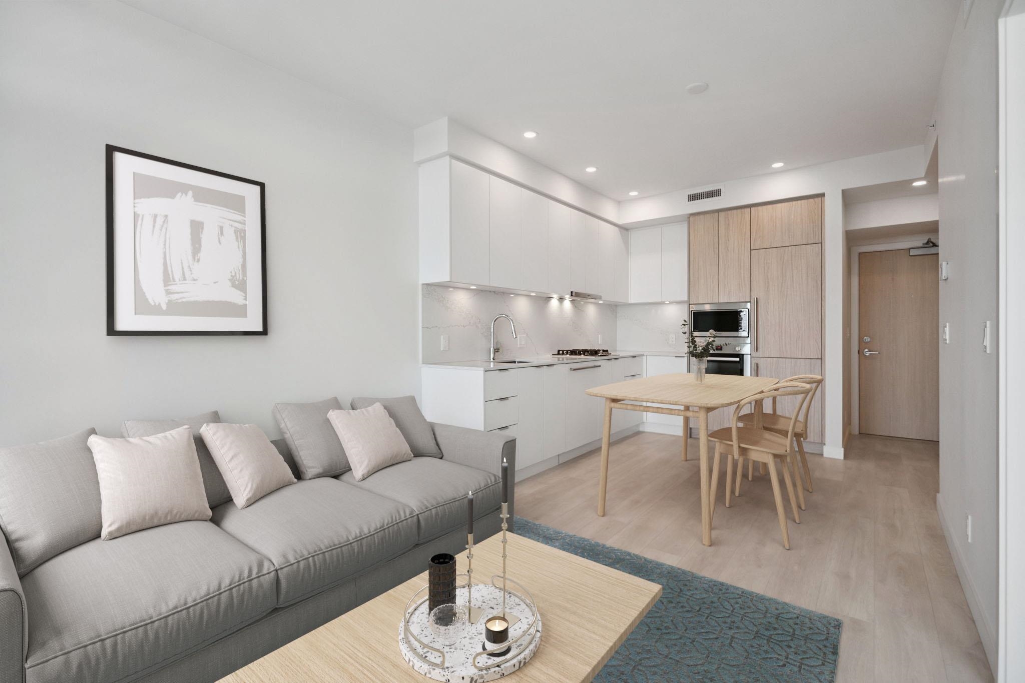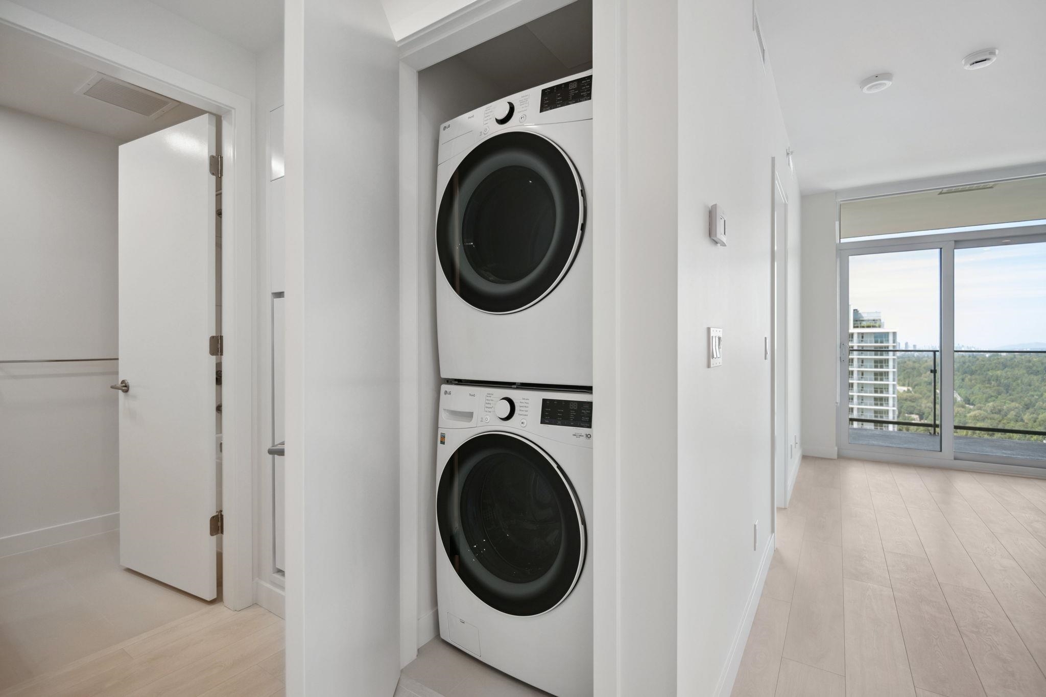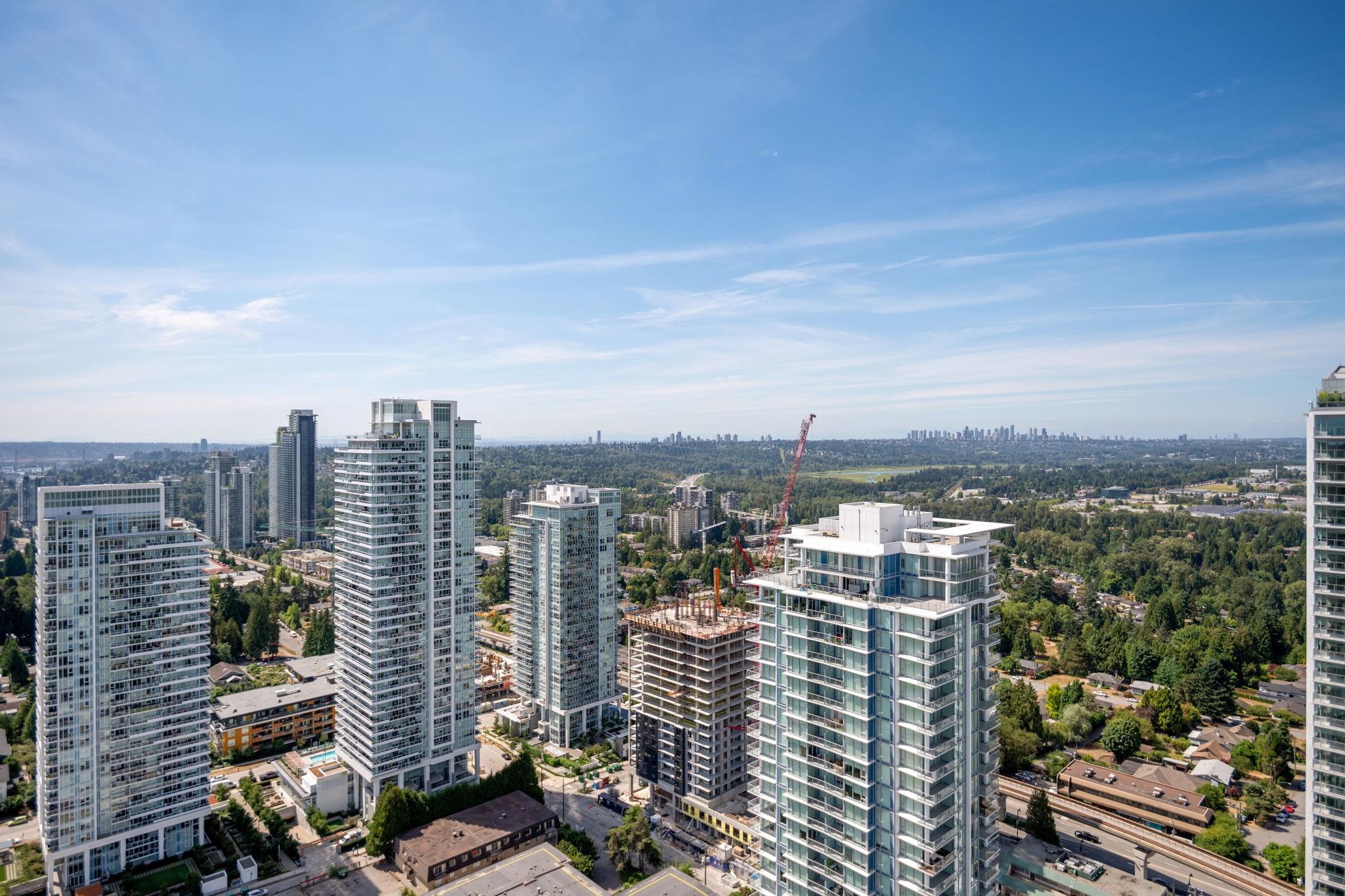WELCOME TO JINJU- Perched on the 34th floor with stunning West Coquitlam views, Suite 3405 is a masterpiece of modern design, welcomes you with breathtaking city and mountain views. This airy, open-concept residence boasts 522 SQFT of refined living space, enhanced by 9-ft ceilings, ample storage solutions, spa-like bathroom w/soaker tub, AIR CON and full size washer/dryer. The gourmet kitchen, w/ its L-shaped layout, features integrated Bosch appliances, sleek quartz countertops. Just steps to Burquitlam s...