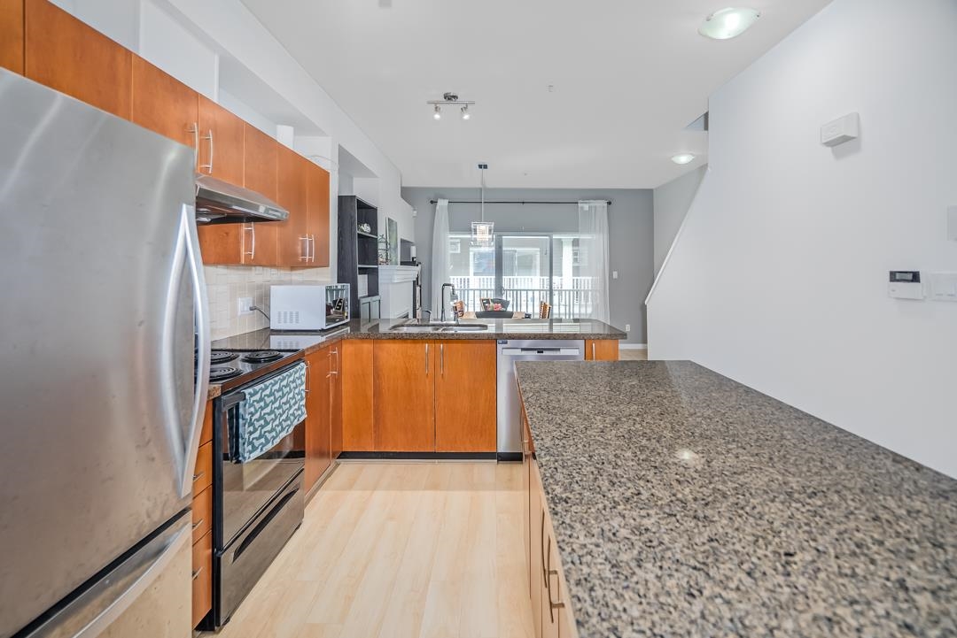 Welcome to this inviting 3-bed, 2-bath townhome, perfect for a growing family! Enjoy an open-concept design with energy-efficient Mysa thermostats and laminate flooring throughout. The spacious kitchen features granite countertops, a large island, and updated stainless steel appliances, including a fridge, dishwasher, and range hood. Step outside to a private fenced yard and covered deck for year-round enjoyment. Upstairs, find 3 generously sized bedrooms and 2 fully re-modelled bathrooms. The ground level ...