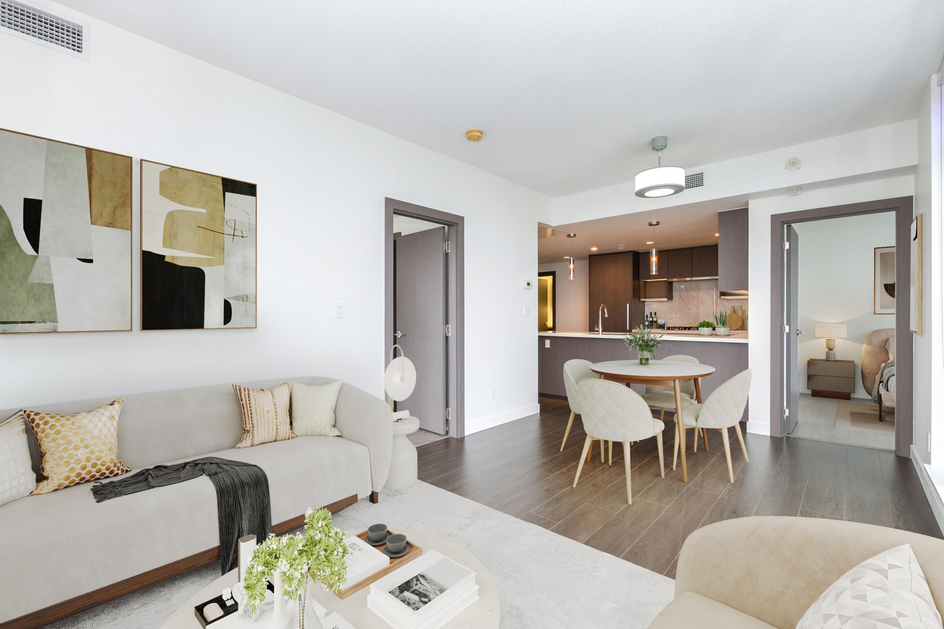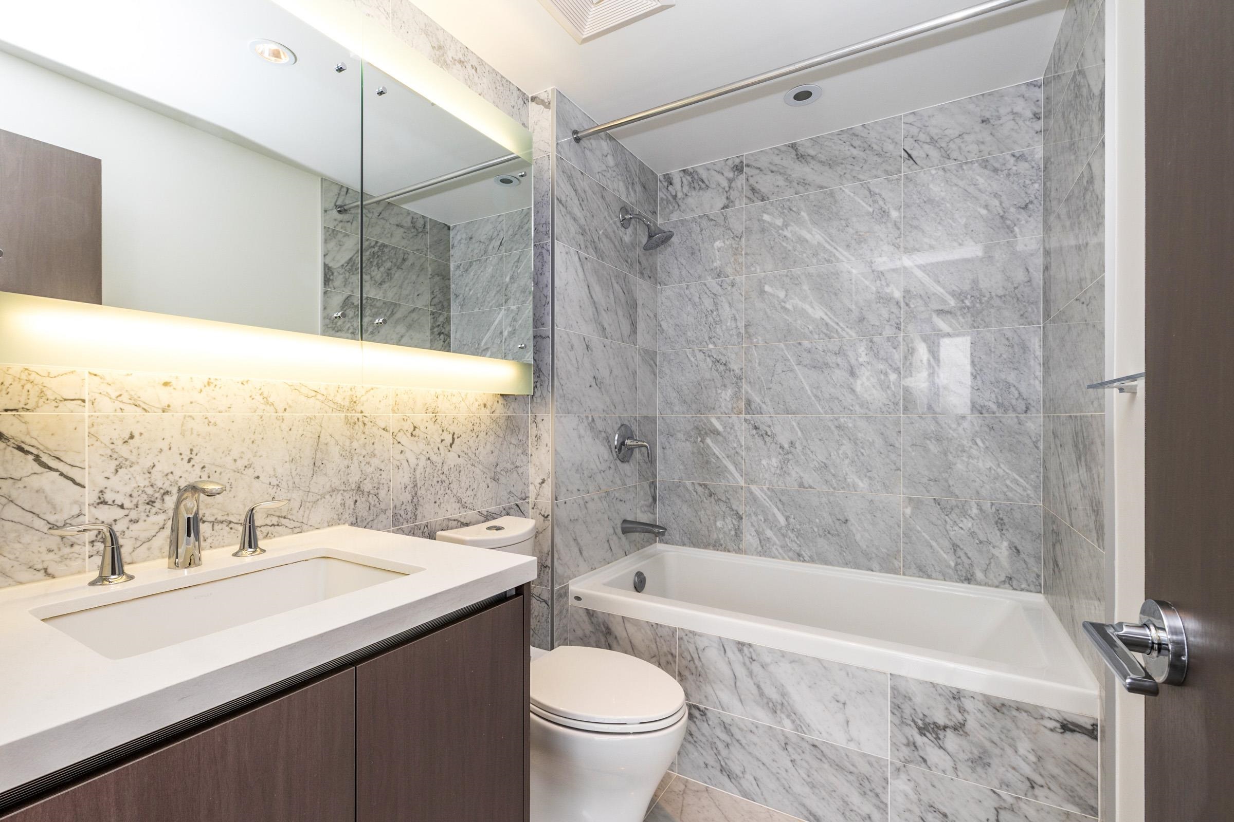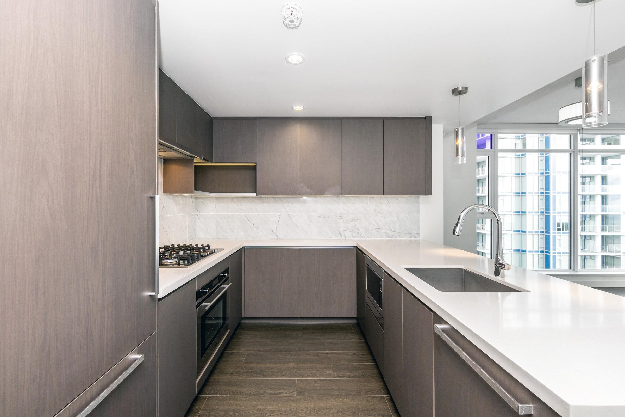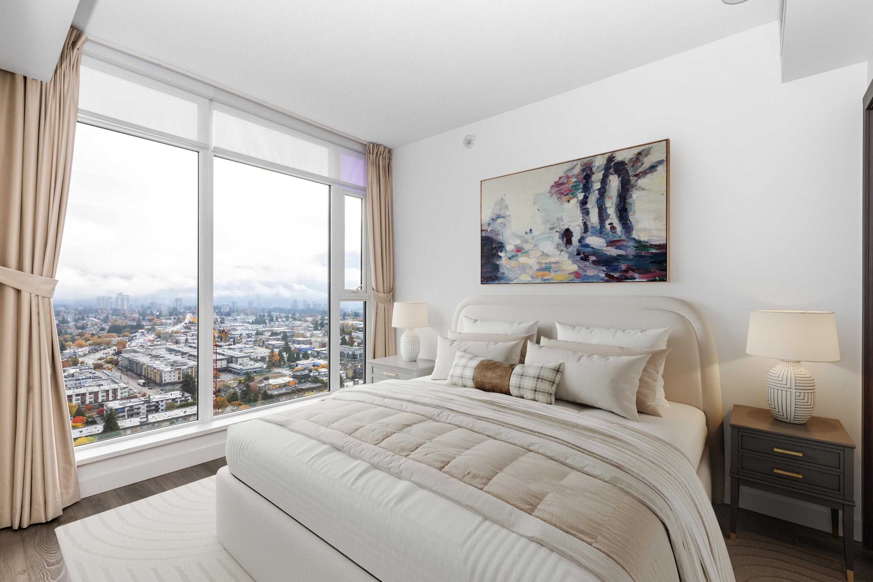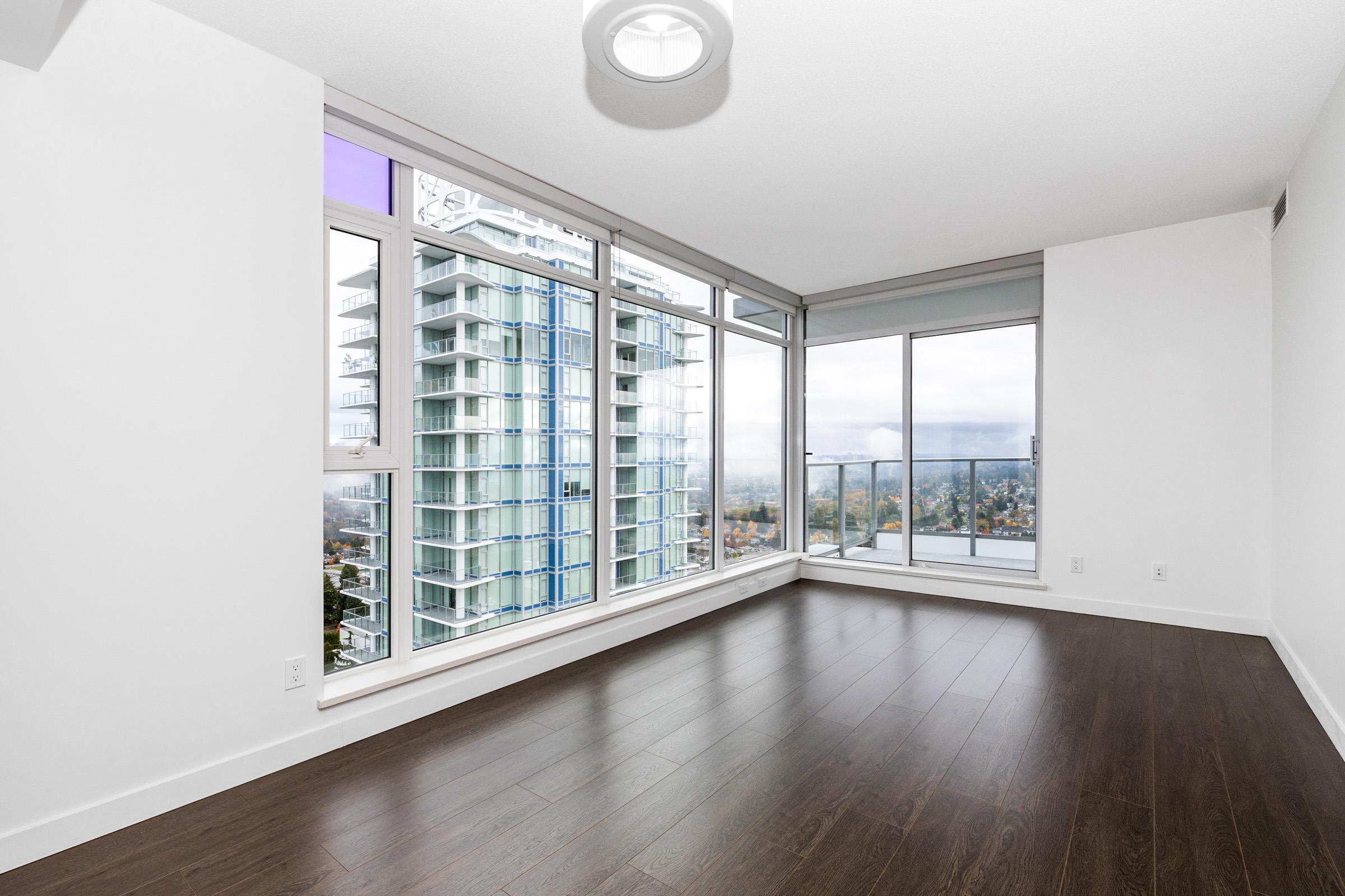 Met 2 by Concord Pacific - located across to desirable Metrotown. This elegant NE corner of 2 bed+2 bath unit offers a sophisticated urban lifestyle with breathtaking panoramic views of the city, mountains and lake. This home features laminate flooring throughout and freshly painted interiors. The unit features a luxury modern design including: centralized heating and A/C, 8'8" high ceiling, roller-shade window coverings, European appliances, 5-heads gas cooktop, quartz stone countertop; marble tile backspl...