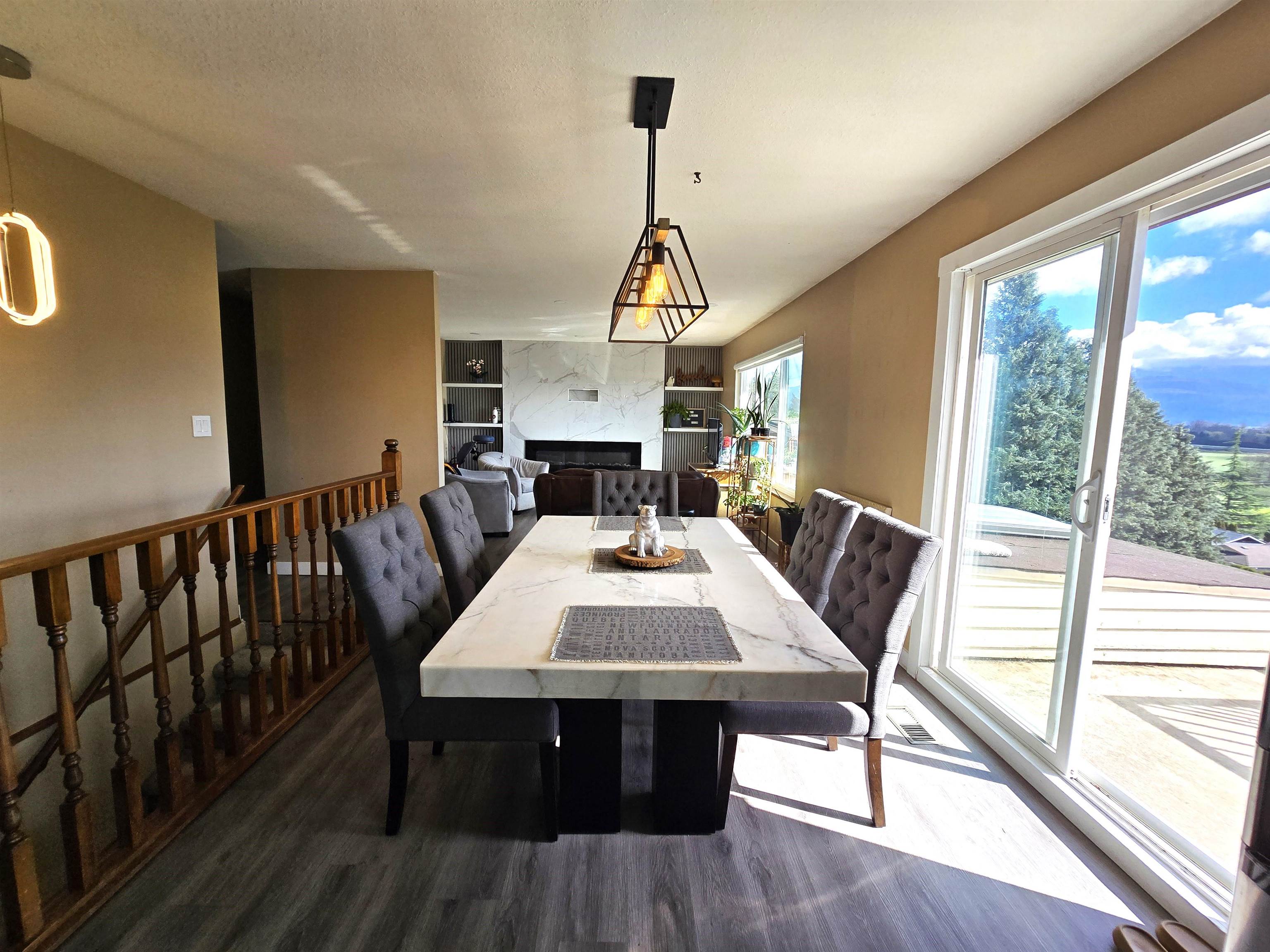 Great Home in East Abbotsford with stunning VIEWS of the valley and Mt. Baker from over the outdoor living space, including a spacious sunroom to relax. Main floor features a modern open-concept kitchen with granite counter tops/ stainless steel appliances/ updated cabinets, bright living area with a cozy fireplace, dining area, 3 bedrooms/ 2 bathrooms with an ensuite in the master. Basement area is huge which is great for big family get togethers & features a huge recreation room, family room, flex room, b...