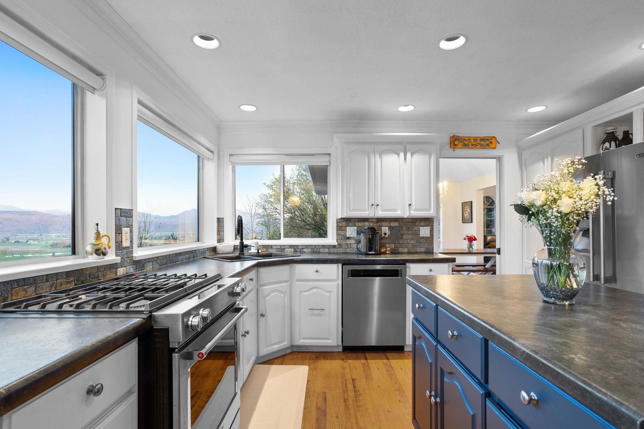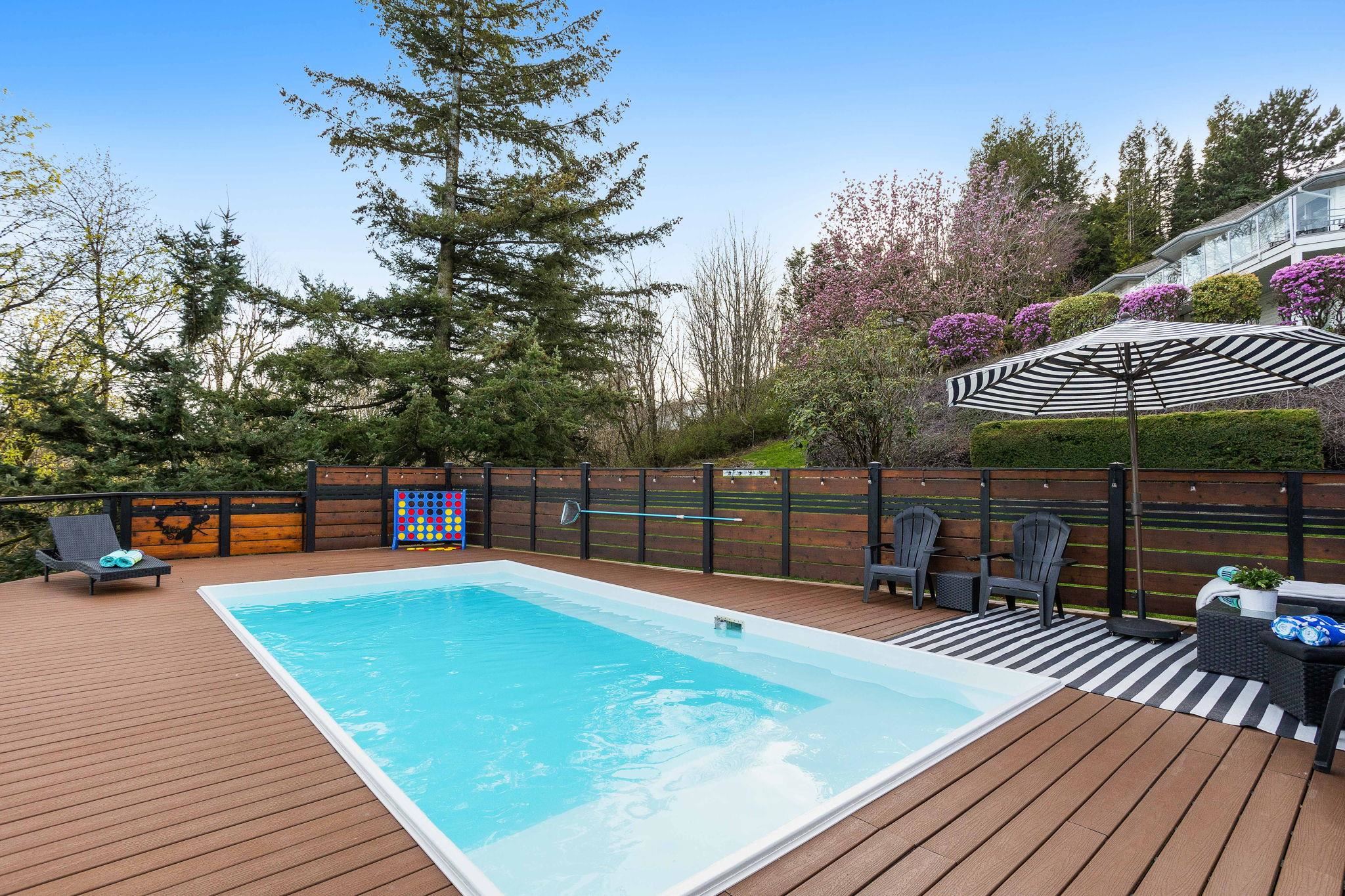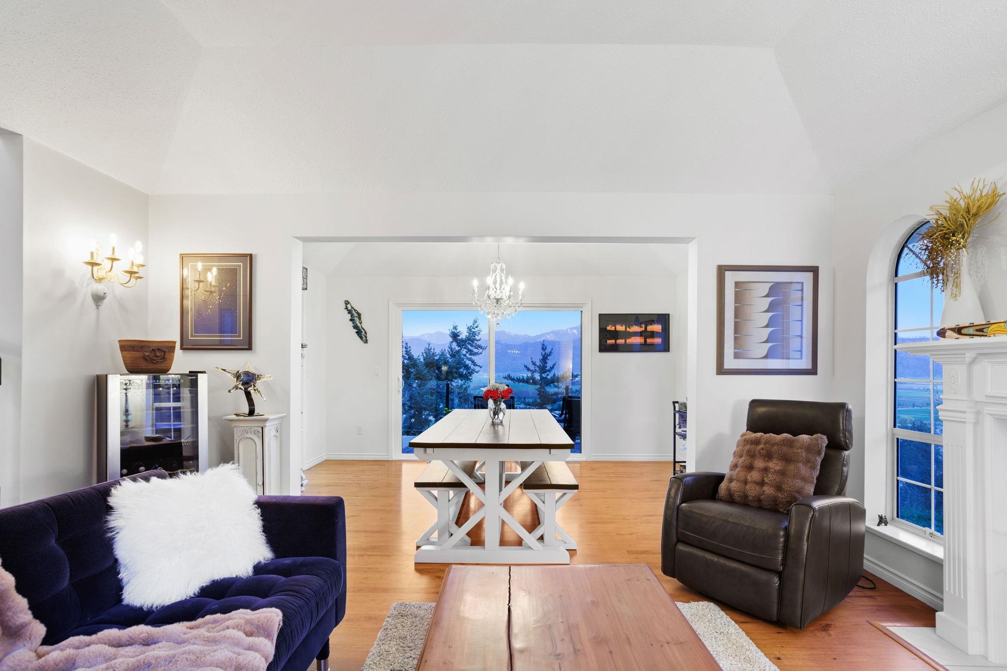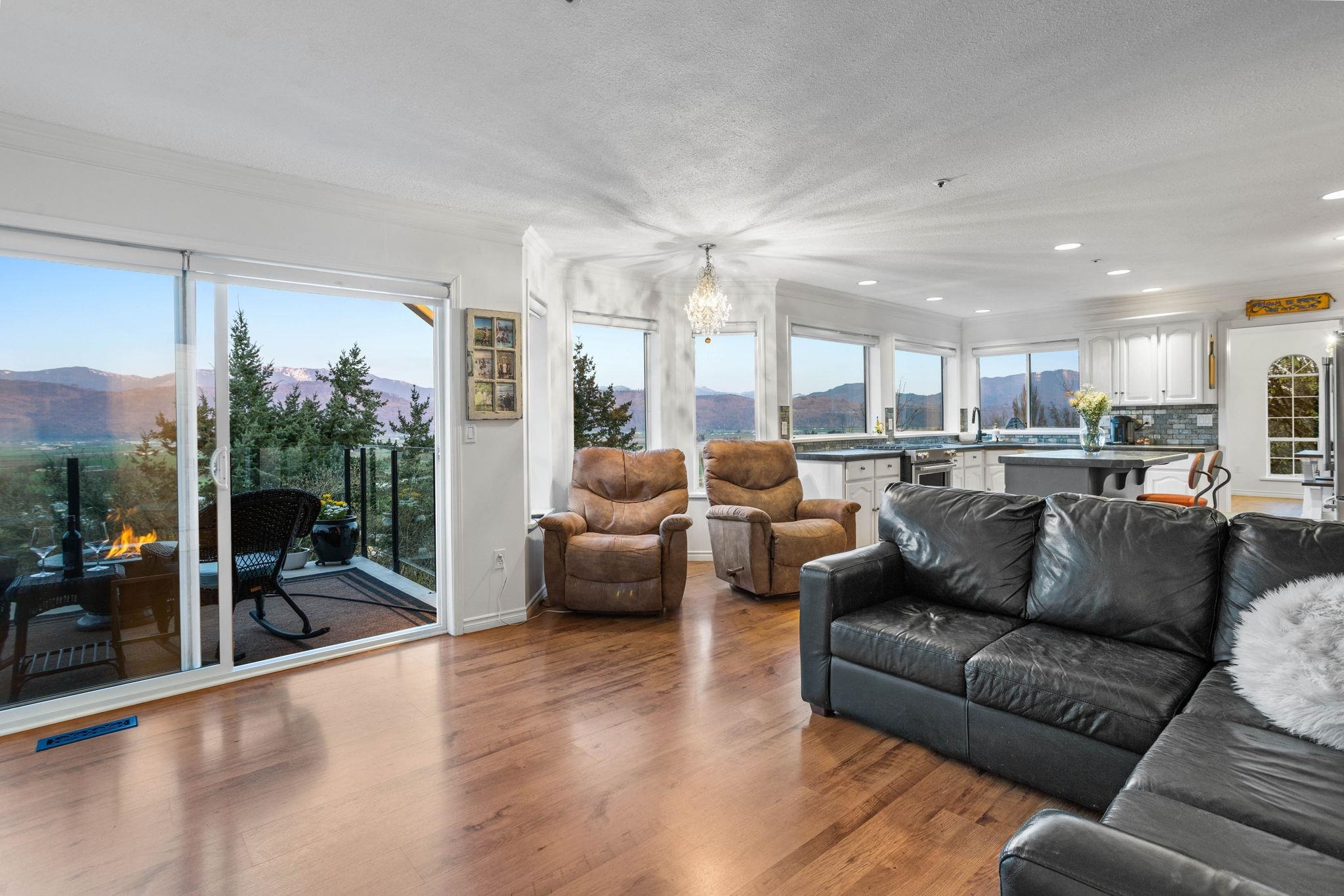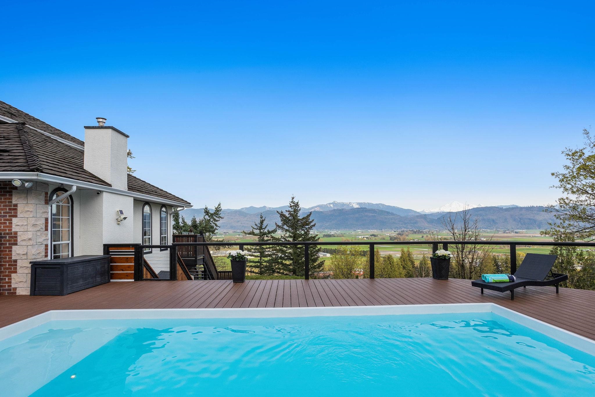 An exceptional estate on a quiet private road in East Abbotsford. Set on over 39,000 SqF, this 4 bed + Den, 3.5 bath home offers panoramic views, a nearly new heated 24' custom steel pool, & expansive outdoor living with multiple patios and decks. Inside, you'll find over 3,400 SqF of thoughtfully designed space, including a bright open main floor with vaulted ceilings, a large kitchen, formal living/dining rooms, & a cozy family room with direct balcony access. Upstairs, the primary suite boasts its own ba...