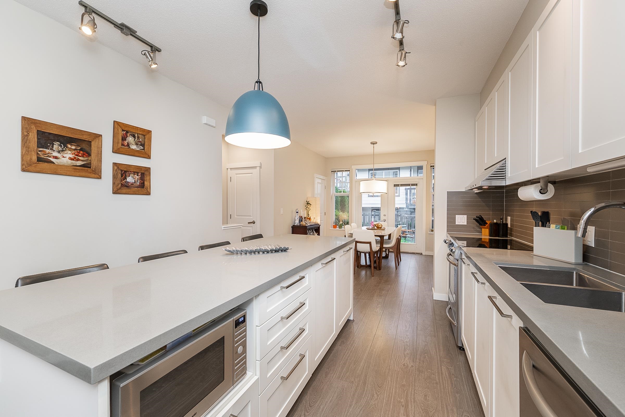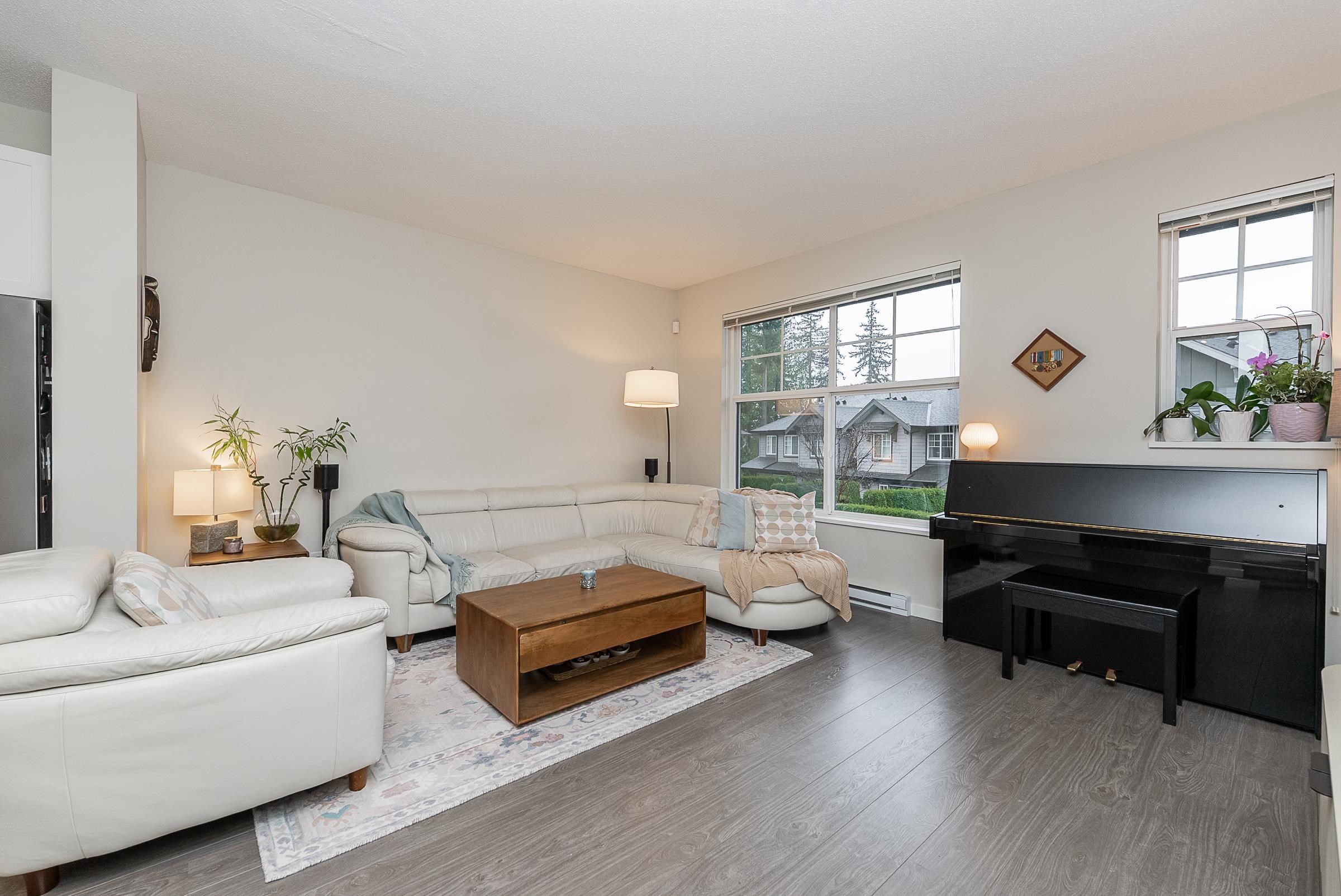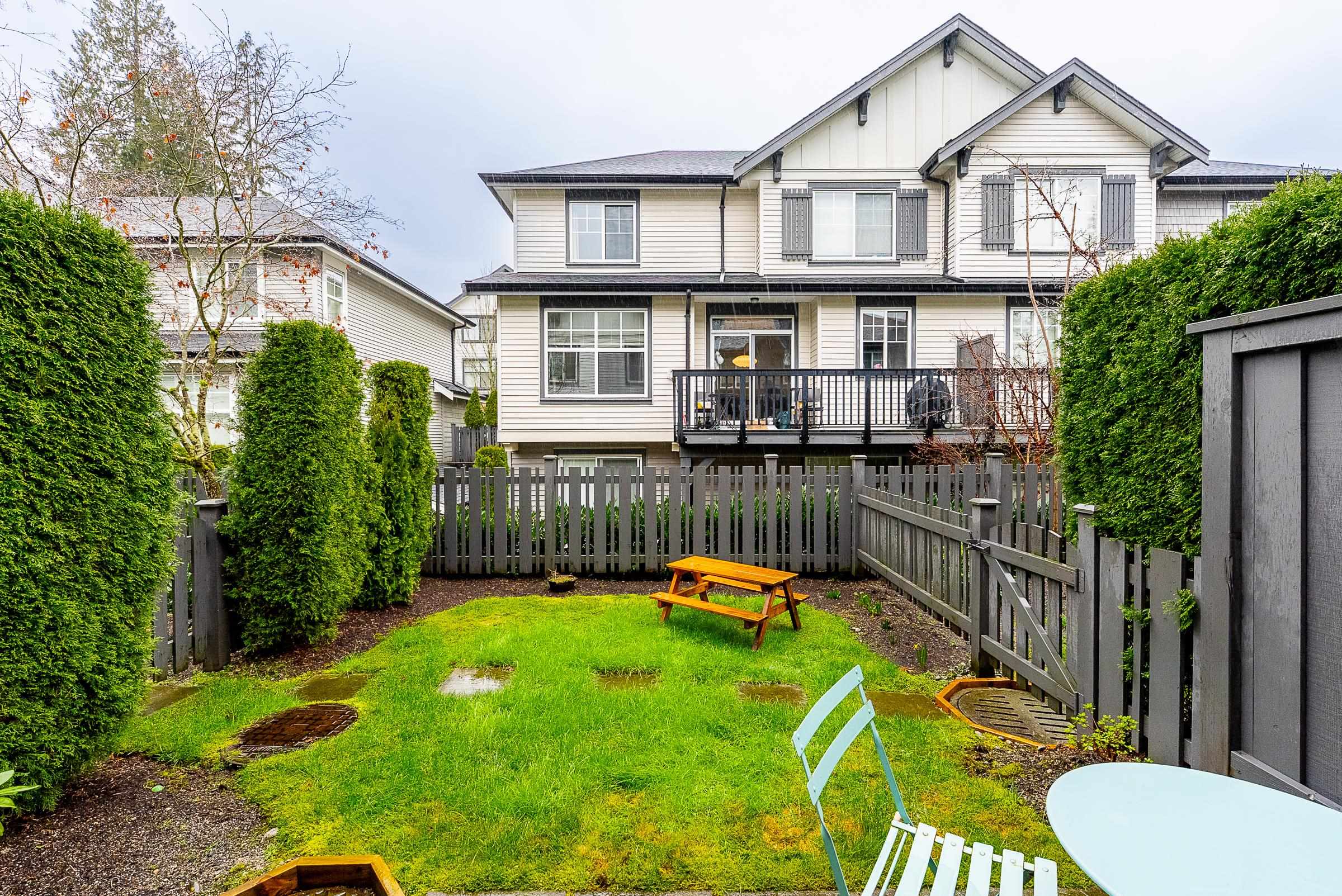 Welcome to this beautiful Burke Mountain townhome at sought after Bridlewood by Polygon! This 3 bedroom, 3 bathroom home offers an open, functional layout with 1,475 sq ft of living space. The spacious centre kitchen features a large island, quartz countertops, shaker style cabinetry, and SS appliances. French doors off the dining area open to a private, fenced yard with patio. The south-facing living room is generous in size and filled with natural light. Powder room on the main for added convenience. Ups...