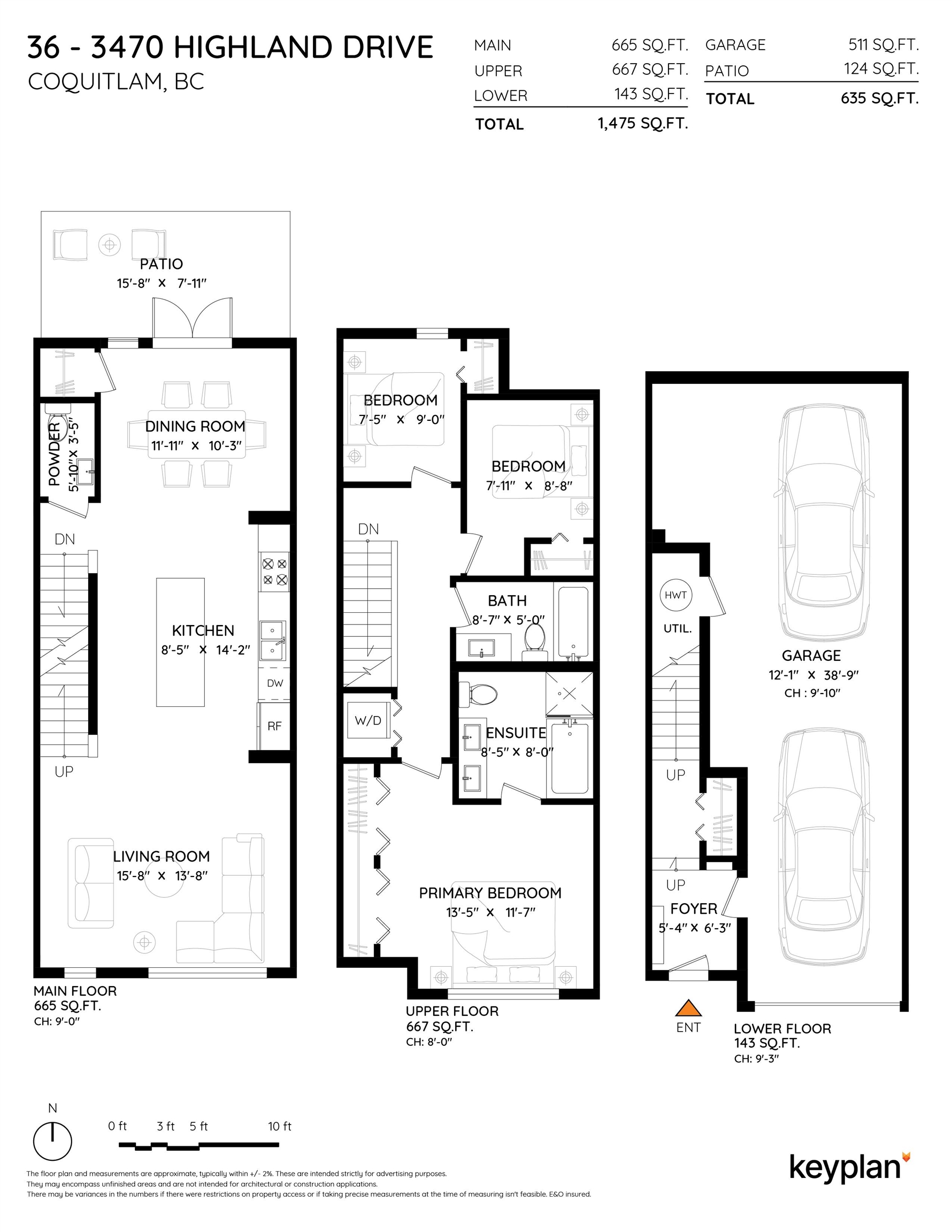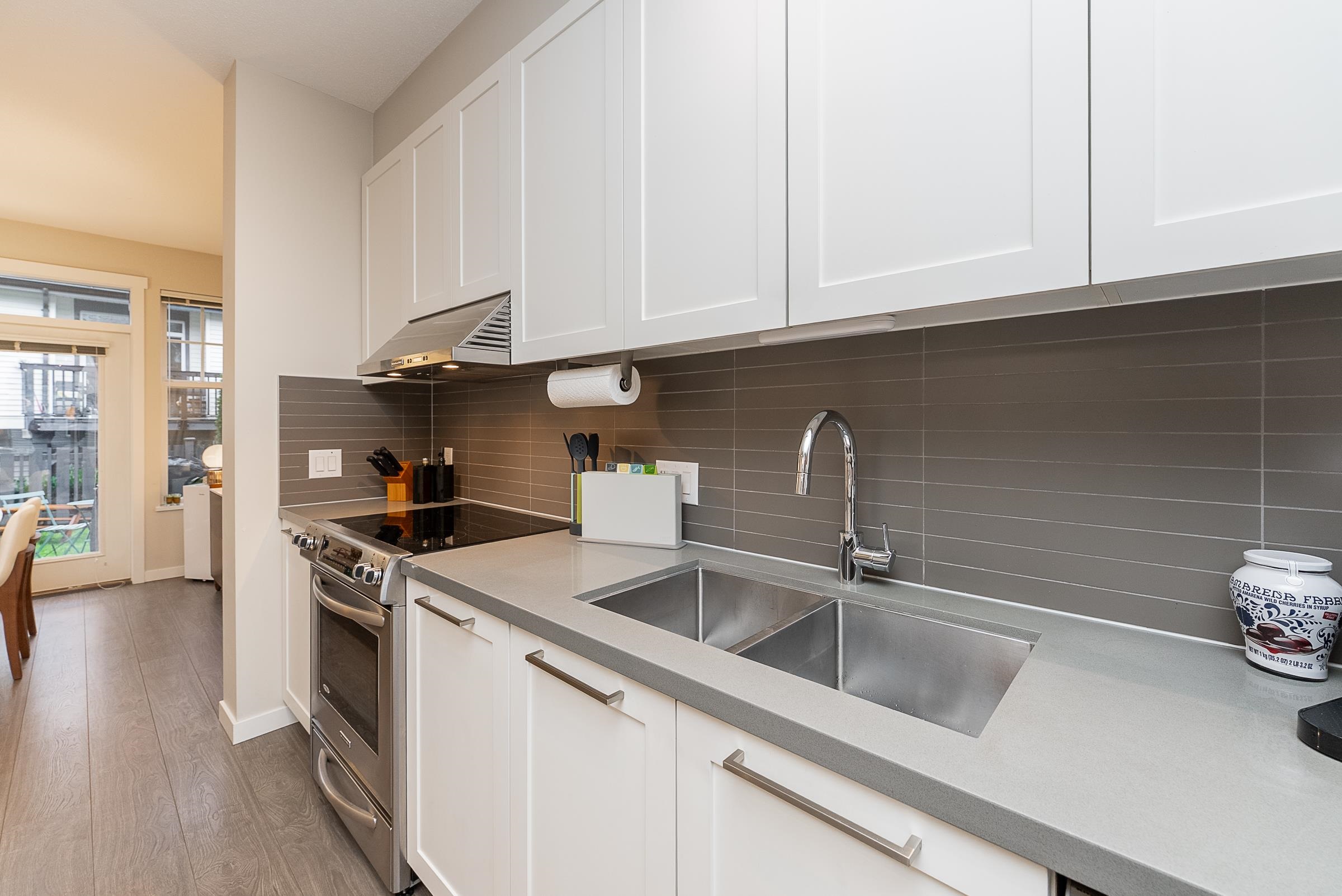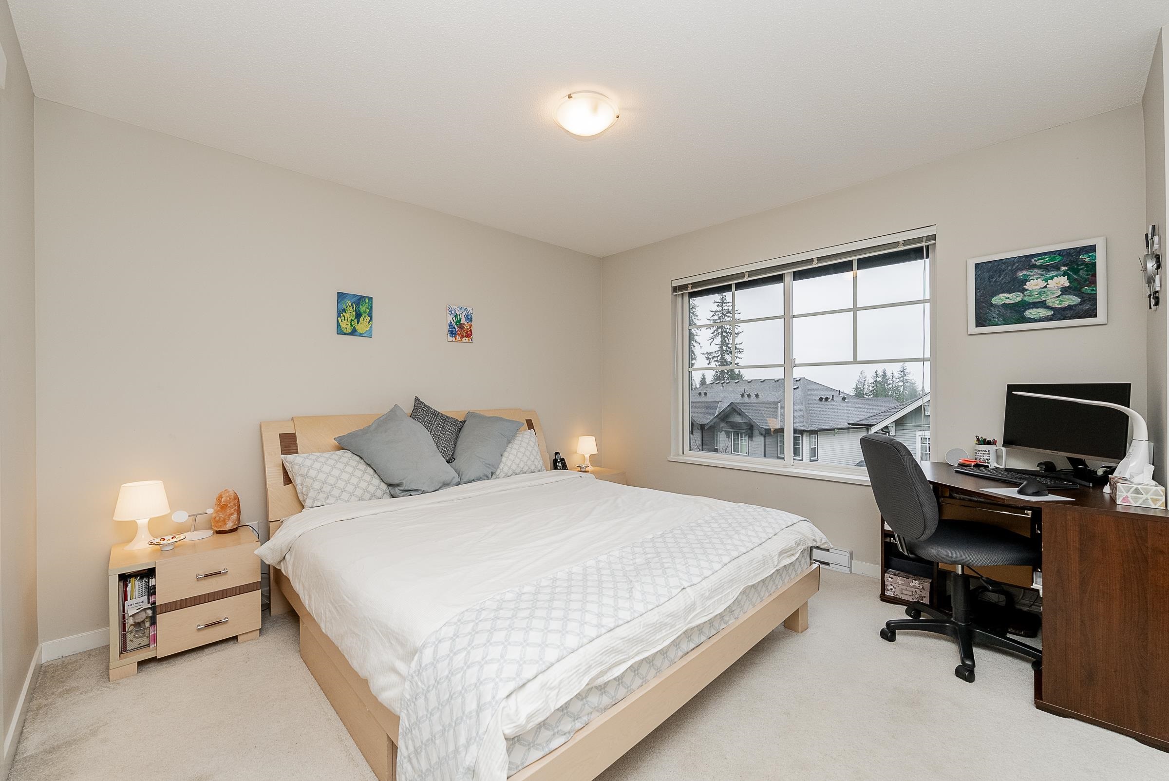 Welcome to this beautiful Burke Mountain townhome at sought after Bridlewood by Polygon! This 3 bedroom, 3 bathroom home offers an open, functional layout with 1,475 sq ft of living space. The spacious centre kitchen features a large island, quartz countertops, shaker style cabinetry, and SS appliances. French doors off the dining area open to a private, fenced yard with patio. The south-facing living room is generous in size and filled with natural light. Powder room on the main for added convenience. Ups...