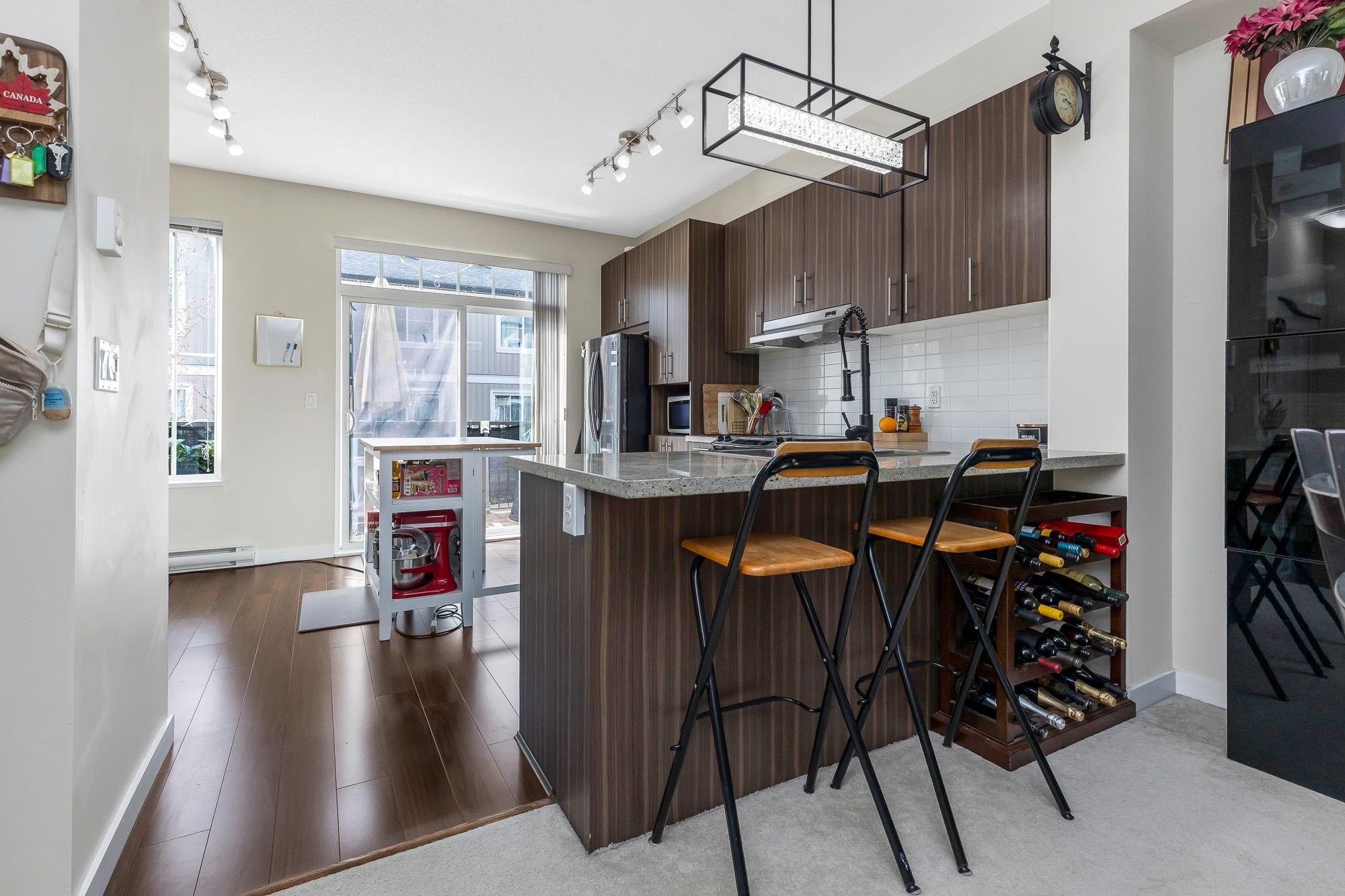 Welcome to Harvest at Westerleigh by Polygon Homes! Cozy Townhome with Spa like ameneties! Very few places can give you these ameneties! This beautifully maintained 2 bed, 2 bath townhome offers a bright, functional open-concept layout. The kitchen features s/s appliances, granite counters, and built-in cabinetry. Rare dual entry with convenient street access and extra parking adds incredible value! Upstairs boasts 2 spacious bedrooms, including a primary with double vanity ensuite and walk-in shower. Tande...