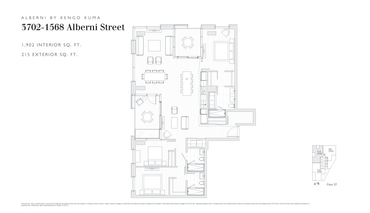 Perched high above the city on the 37th floor, this exceptional residence at Alberni by Kengo Kuma presents a rare opportunity to own one of Vancouvers most distinguished homes. This expansive 3 Bed, 3 Bath layout offers 1,902 Sq. Ft. of refined interior living, complemented by 215 Sq. Ft. of private, Japanese-inspired outdoor space complete with a signature soaker tub. Thoughtfully designed with Kuma’s iconic curved wood detailing, the home features a chef-inspired kitchen with integrated Miele appliances,...