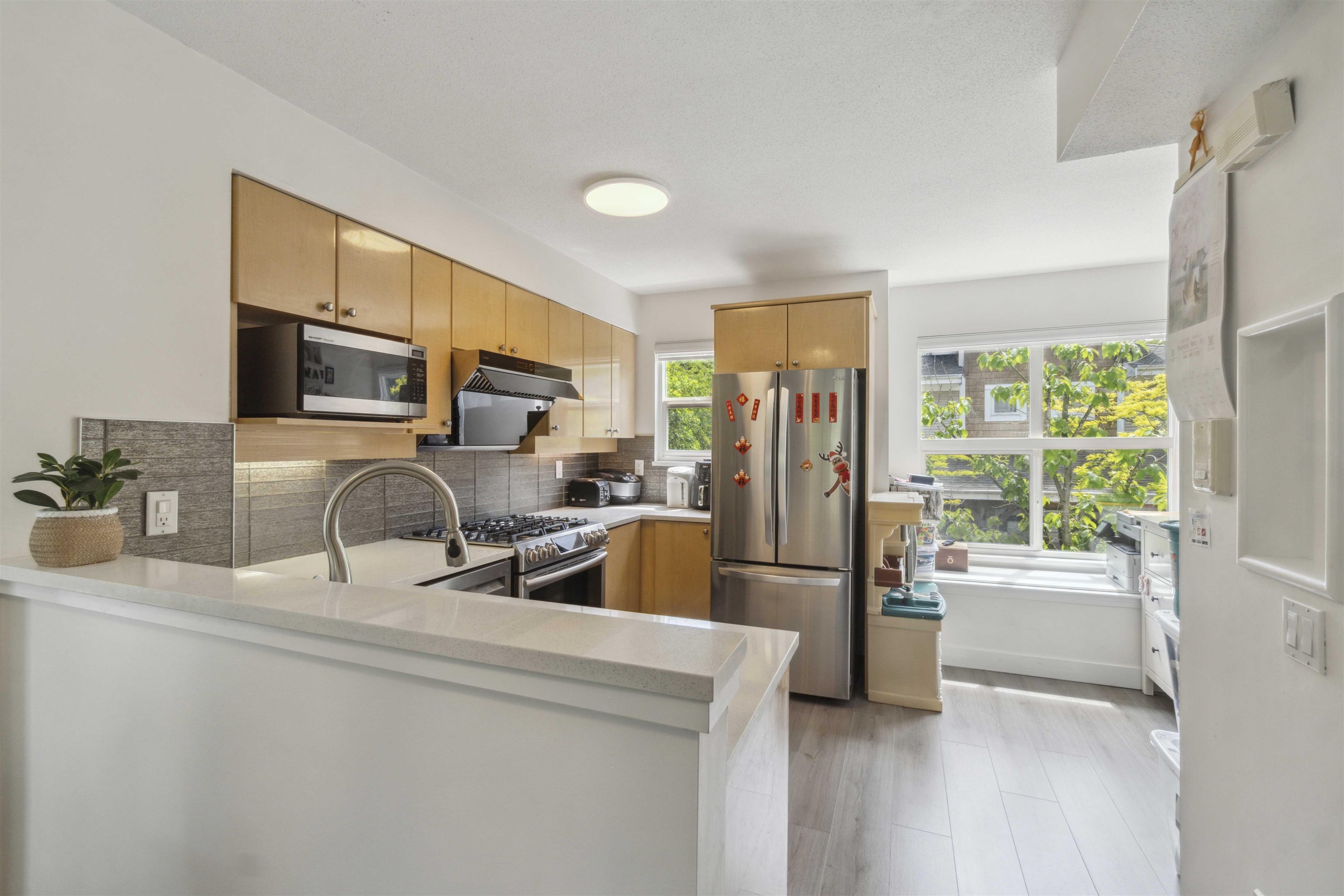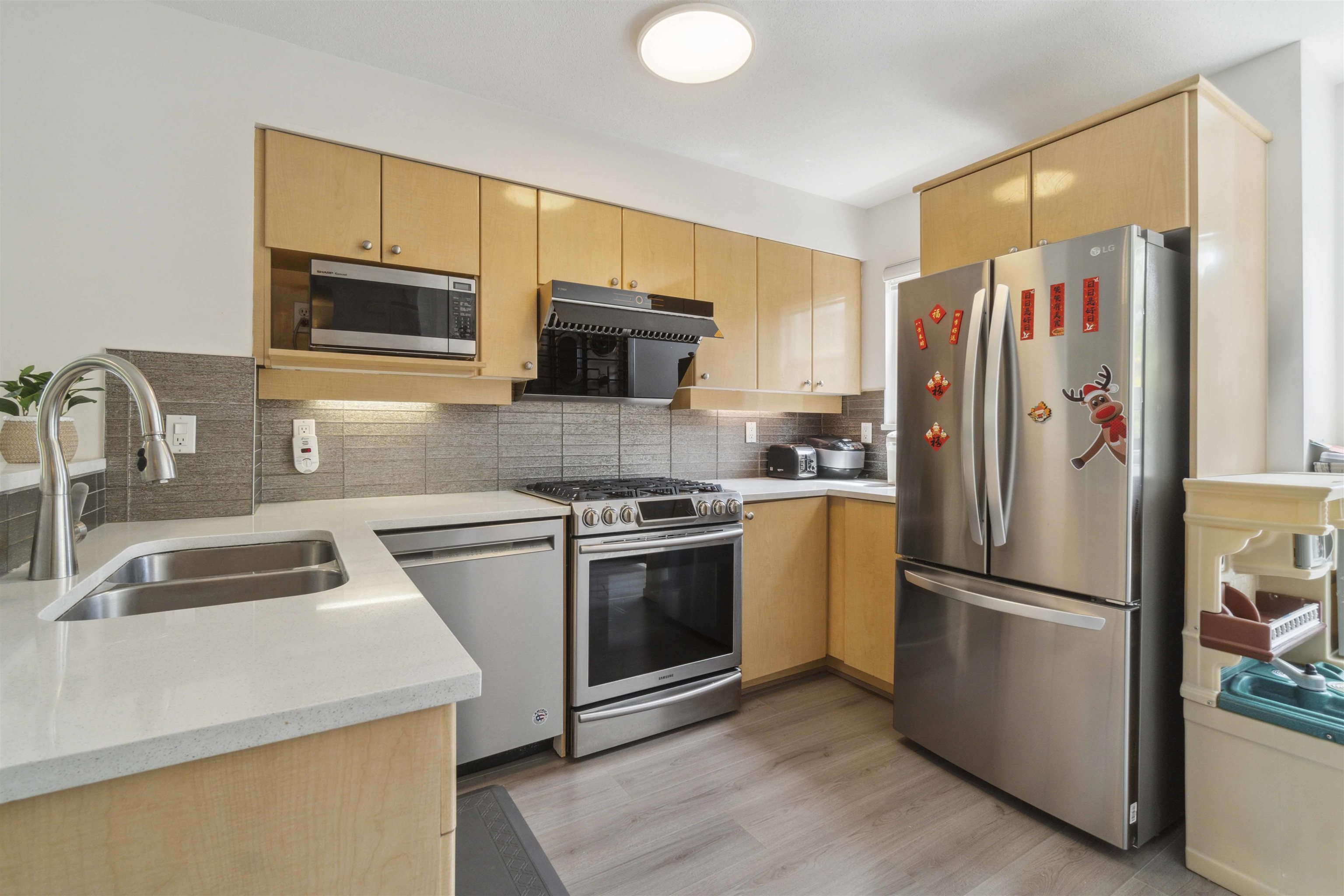 Welcome to Laurelwood, an exceptional townhouse community in the heart of Richmond’s desirable Granville area! This spacious 3-level, 3 beds, 3 baths home offers 1,166sf of thoughtfully designed living space w/ modern updates, warm laminate floors, & a cozy gas fireplace. The bright kitchen features built-in oven, microwave, & ample cabinetry perfect for entertaining. Enjoy outdoor living w/ your private balcony & quiet rear exposure. The single garage + visitor parking provides convenience, while the well-...