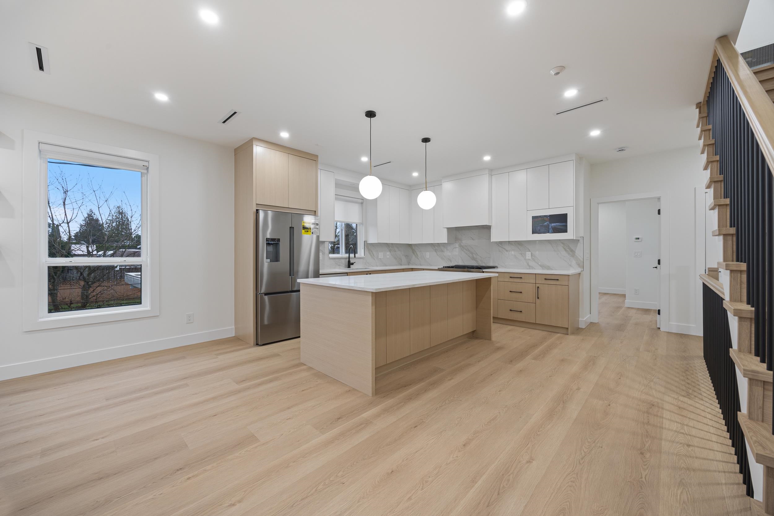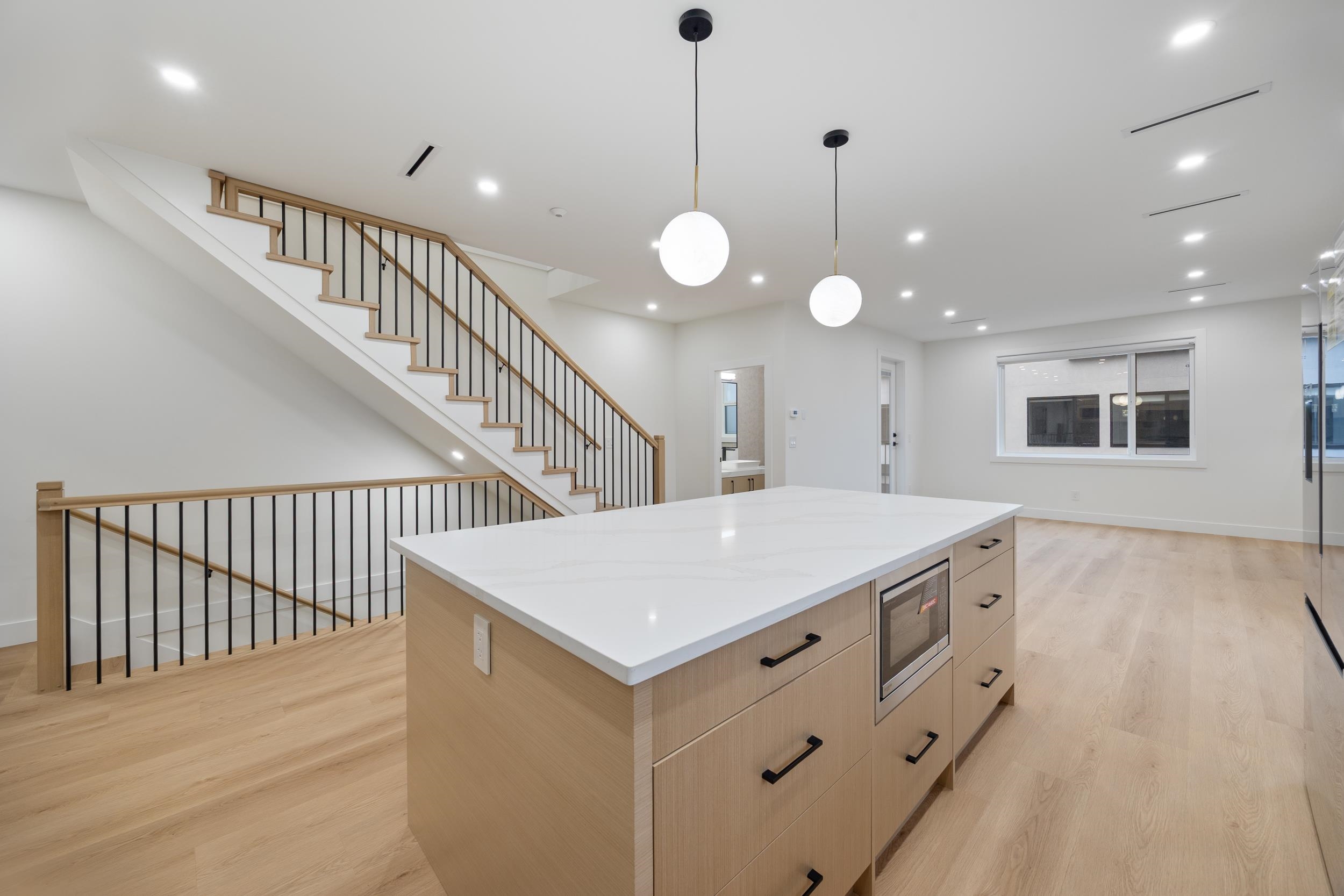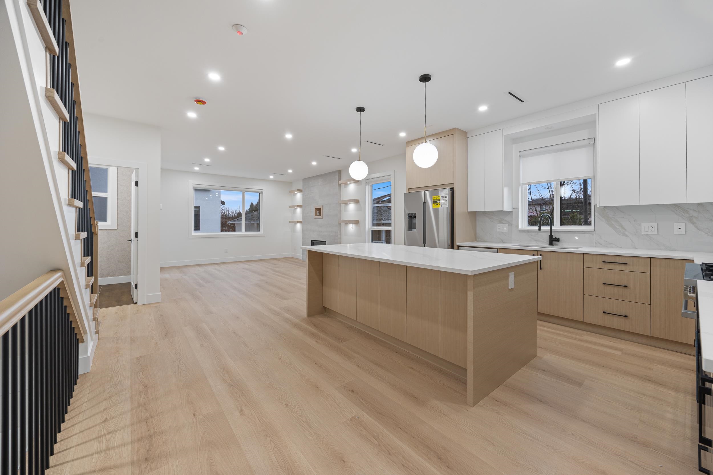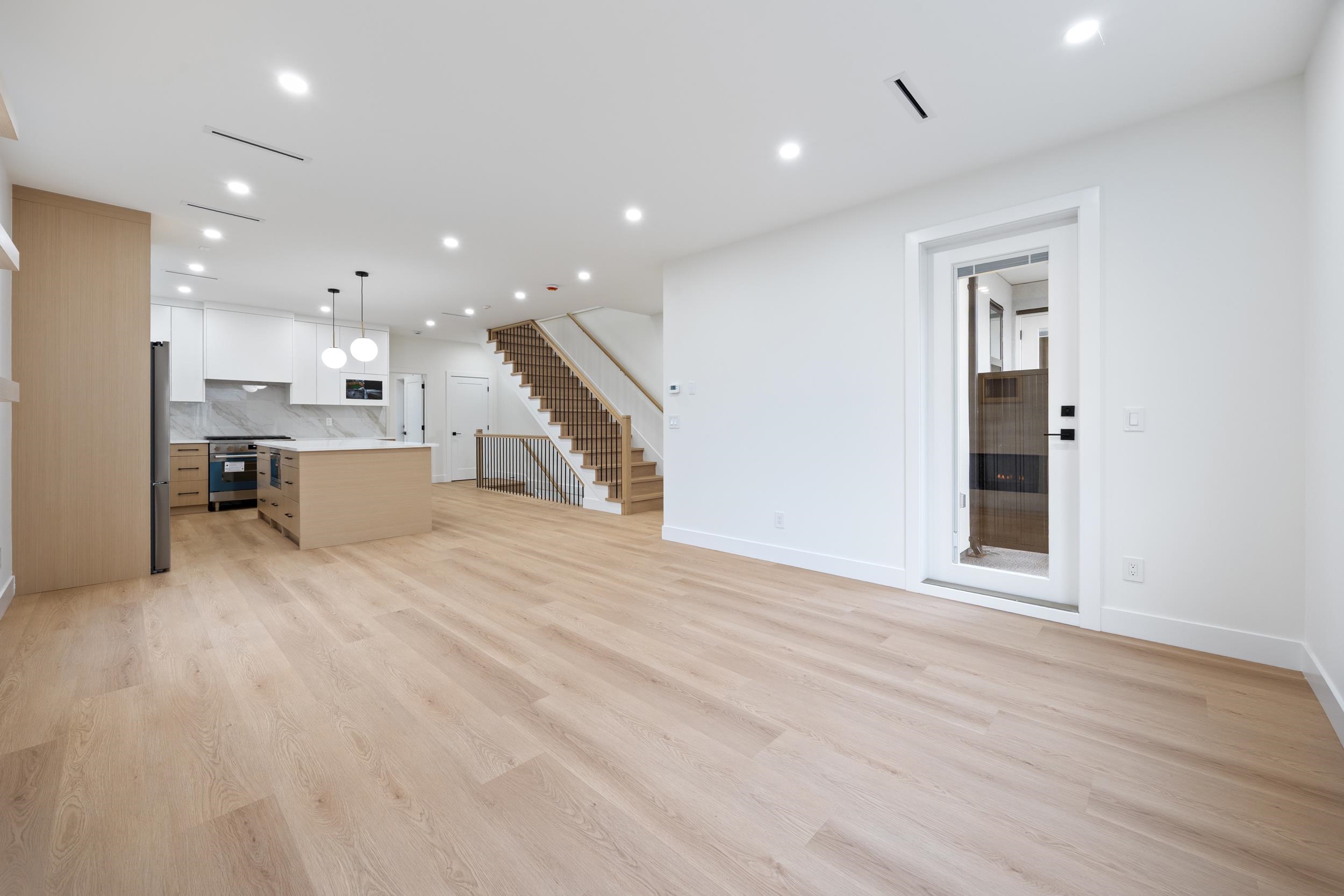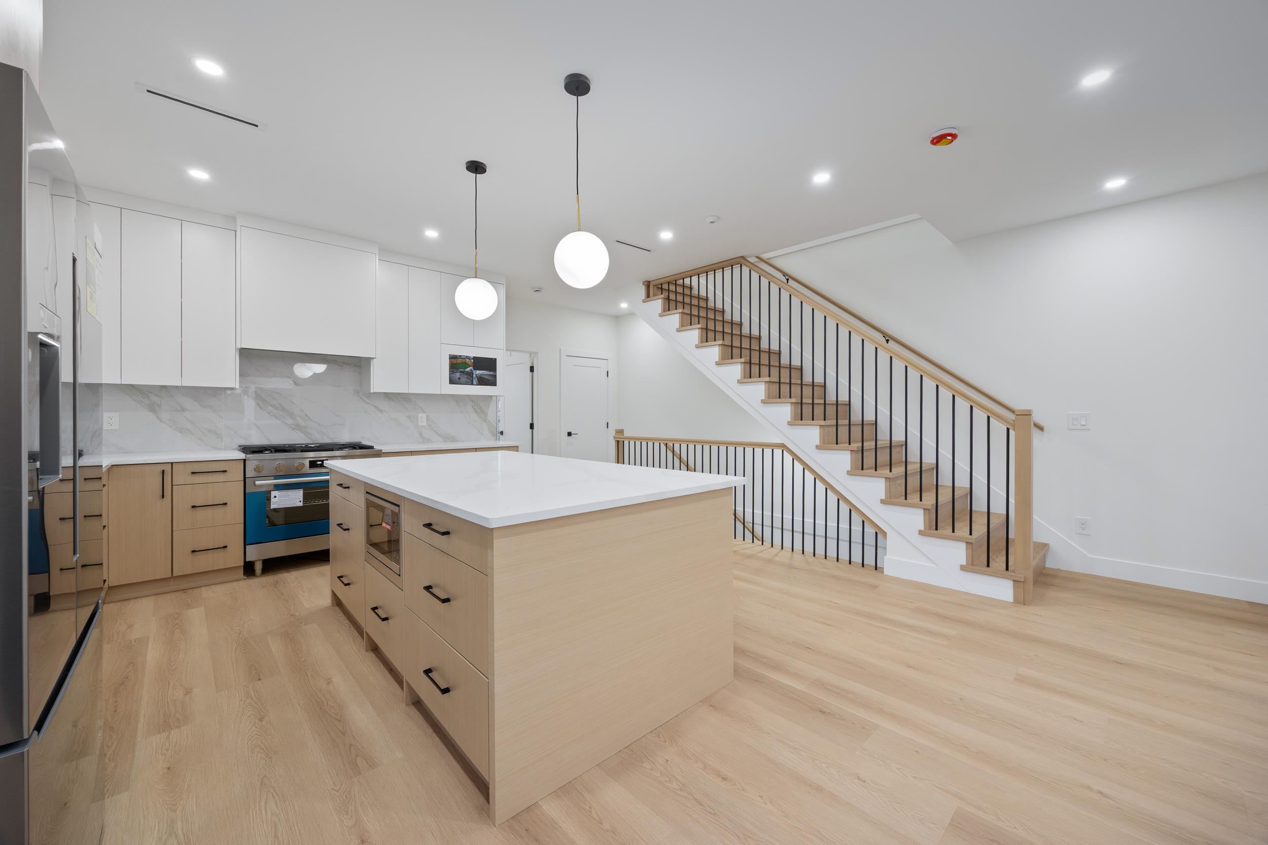 Beautiful 3-level, 2,607 sq. ft. home with a bright, open-concept layout. Main level offers a gourmet kitchen with gas range, quality finishes, and a welcoming living area with gas f/p, plus a second primary bedroom with ensuite and 2-pce powder room. Upstairs features three generous bedrooms, including a primary suite with ensuite and walk-in closet. Ground-level entry includes a large rec room, separate bedroom (no closet), full bathroom, roughed-in laundry, and separate entrance, ideal for extended famil...