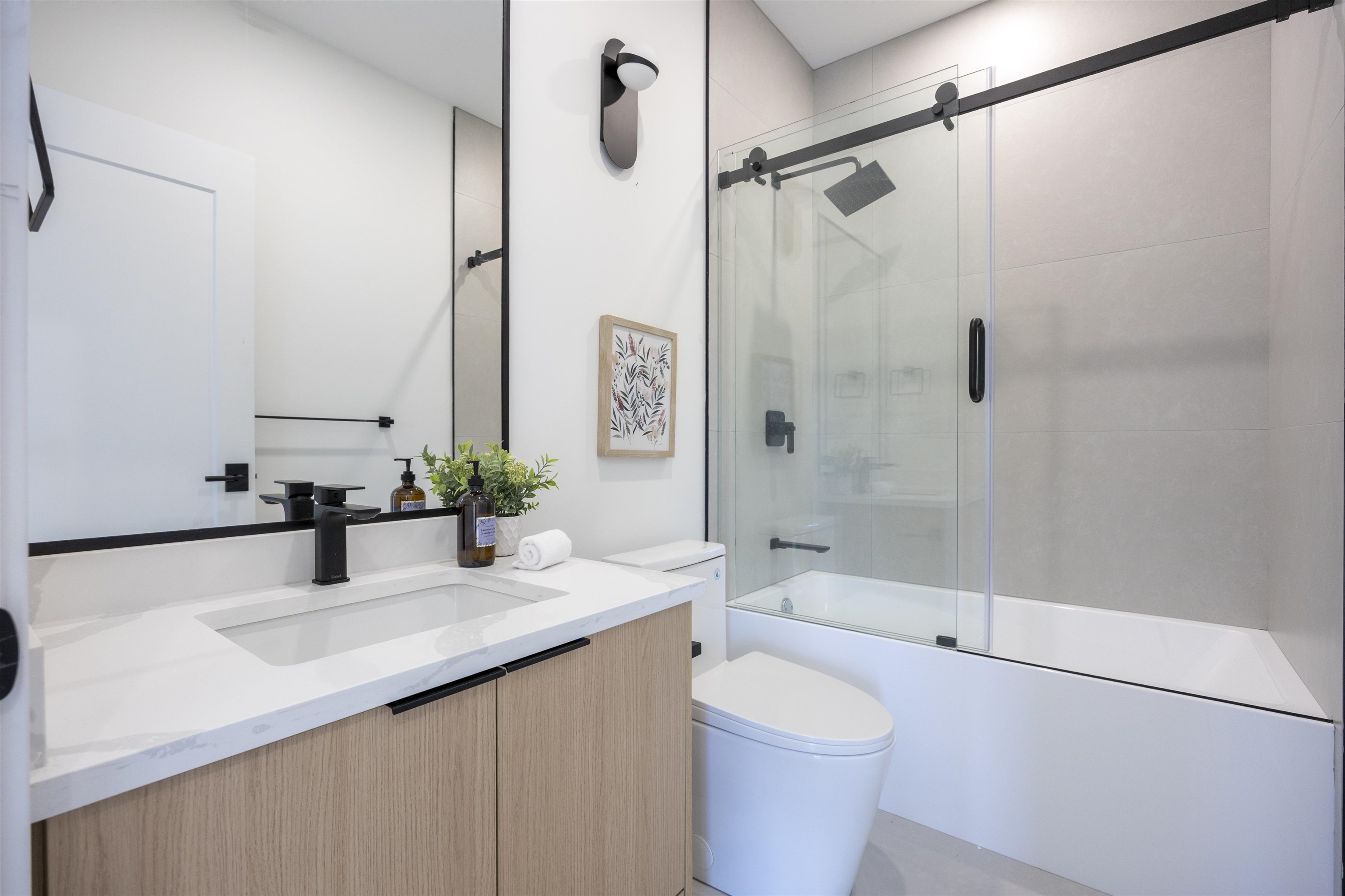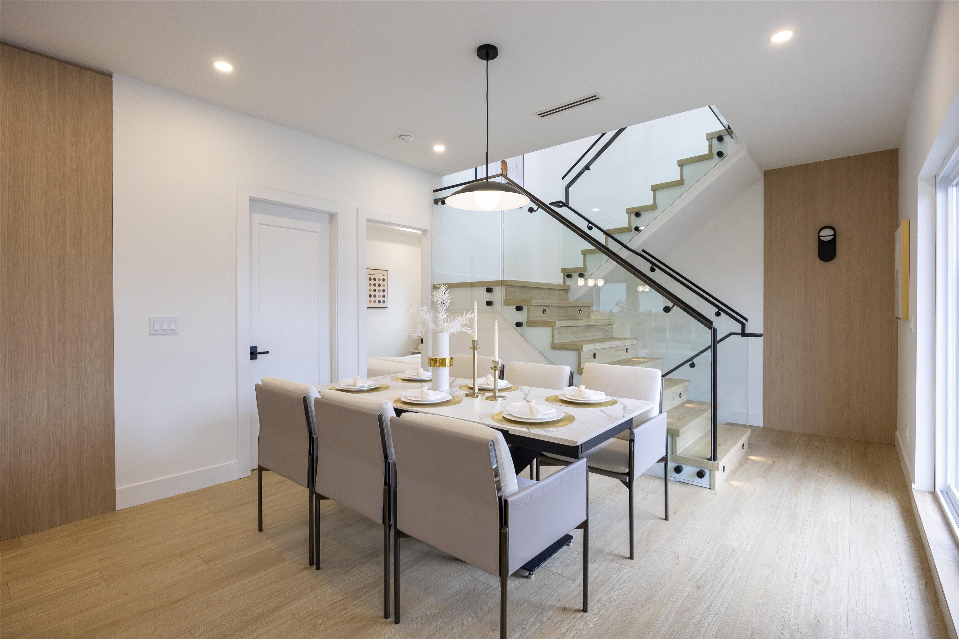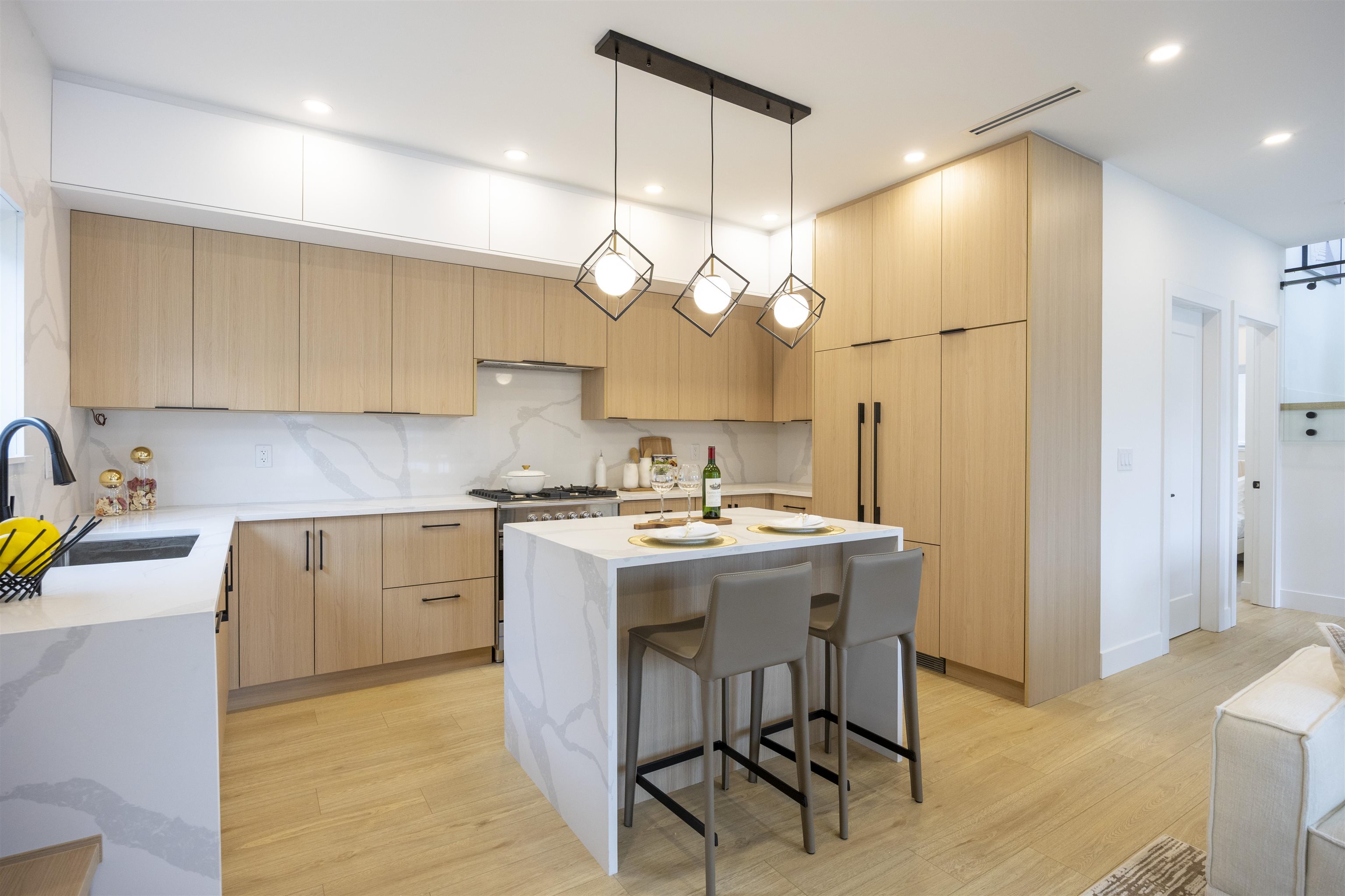Welcome to a one-of-a-kind boutique collection of 4 homes in Burnaby’ Edmonds neighbourhood, designed as 2 front-to-back duplexes. Grandfathered zoning allows for unique residences that can no longer be built, creating rare opportunity to own that lives like a single-family. Front units 1+2 offers direct street access, rear homes 3+4 provide privacy + easy parking. 2,300+ SF of living space w/ warm modern interiors, quality craftsmanship + tons of storage. 5bed 5bath layouts + equipped w/ AC heat pump, F&P ...