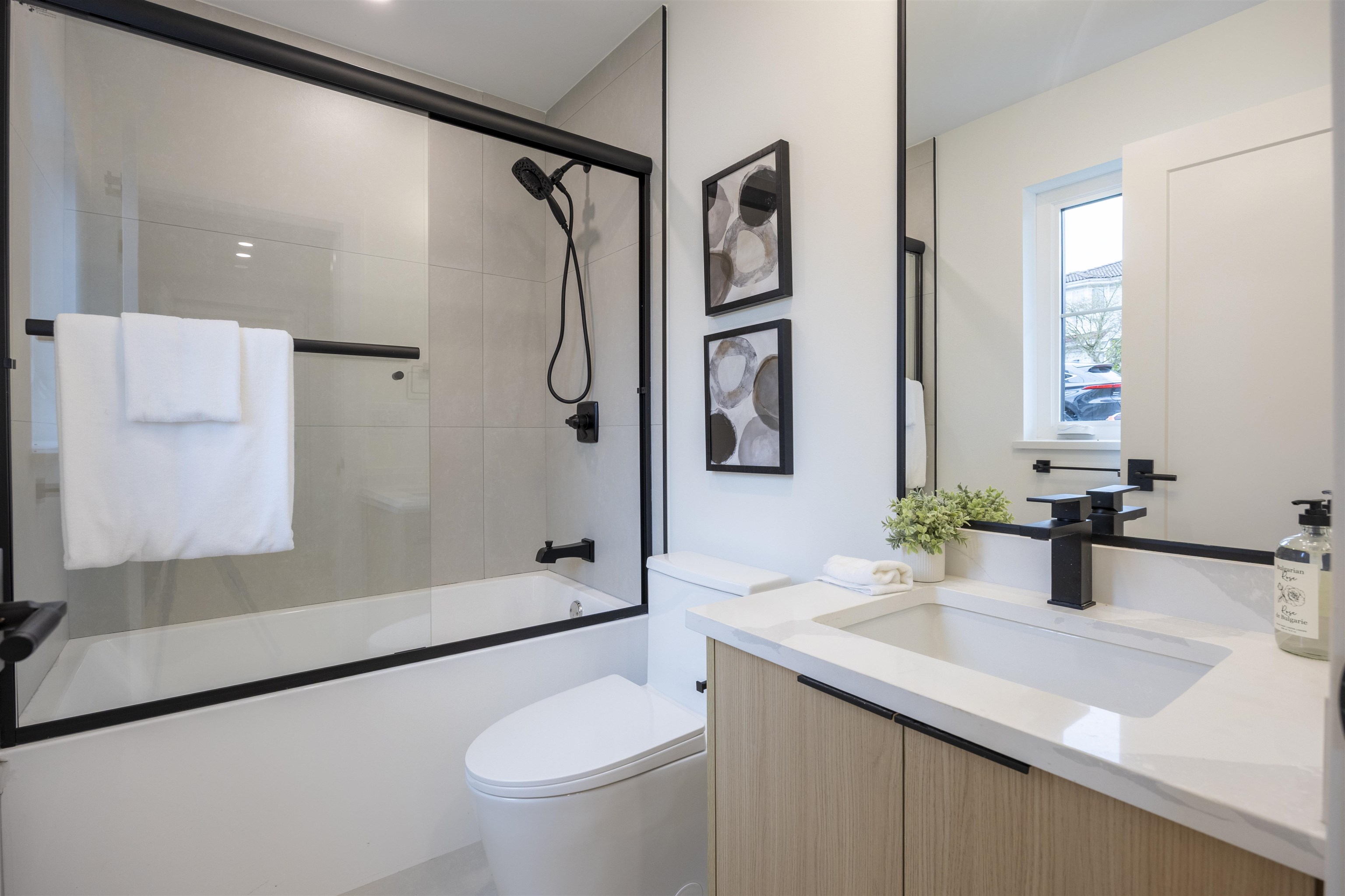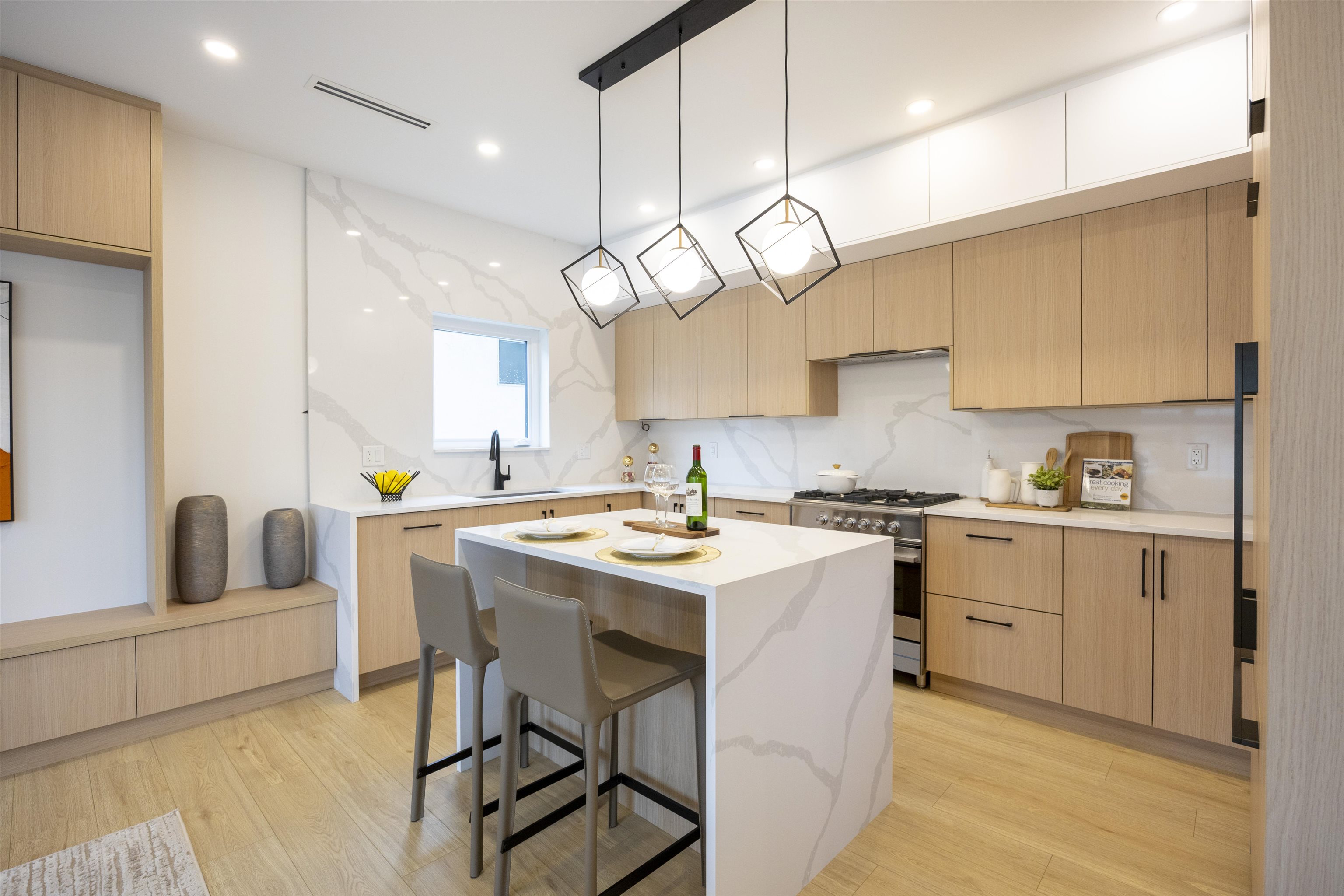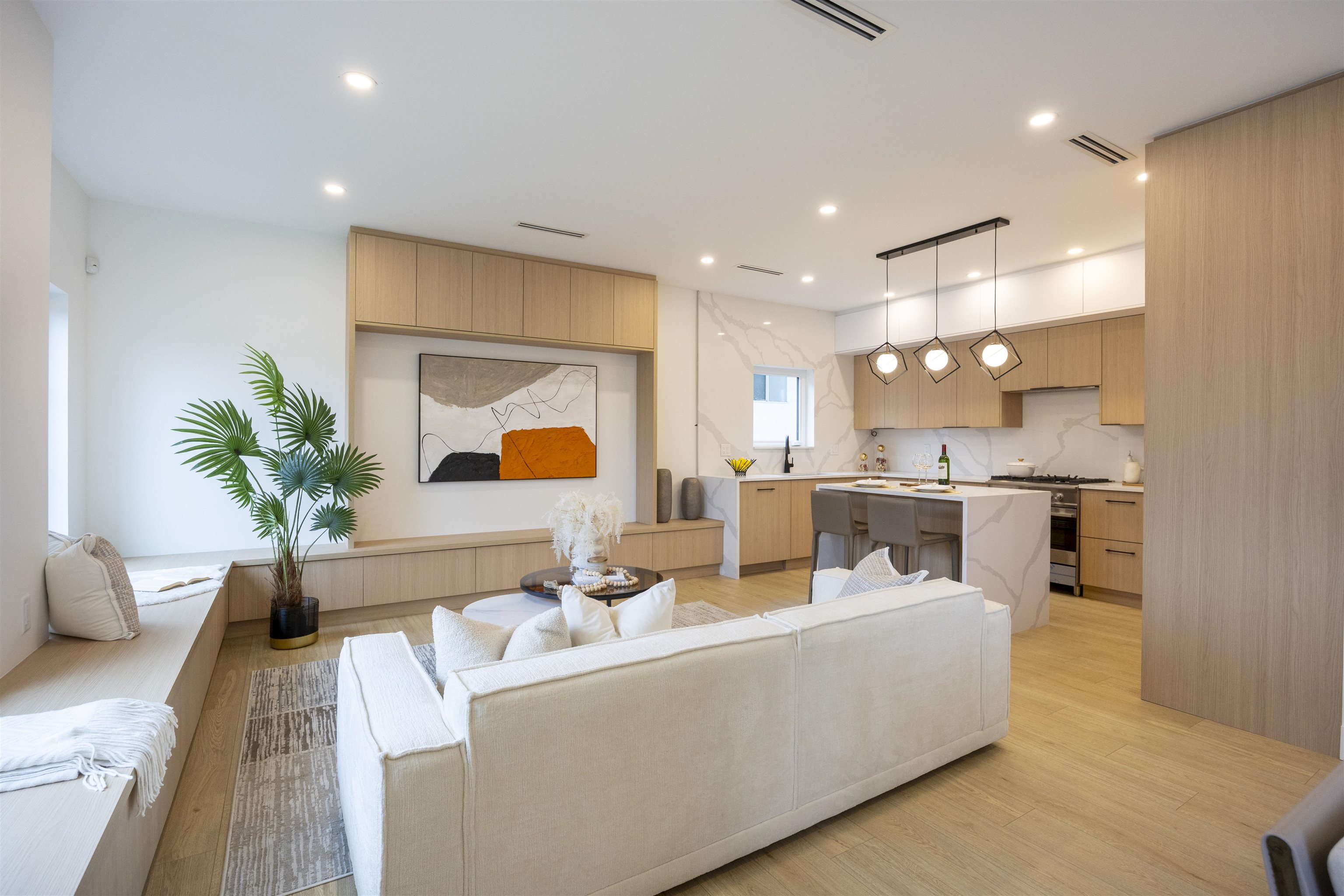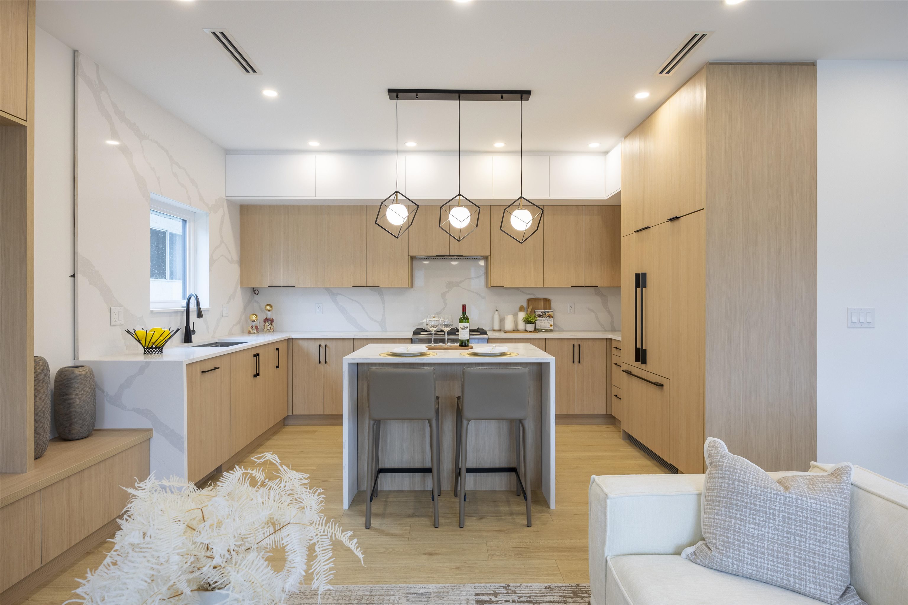 Welcome to a one-of-a-kind boutique collection of 4 homes in Burnaby’ Edmonds neighbourhood, designed as 2 front-to-back duplexes. Grandfathered zoning allows for unique residences that can no longer be built, creating rare opportunity to own that lives like a single-family. Front units 1+2 offers direct street access, rear homes 3+4 provide privacy + easy parking. 2,300+ SF of living space w/ warm modern interiors, quality craftsmanship + tons of storage. 5bed 5bath layouts + equipped w/ AC heat pump, F&P ...