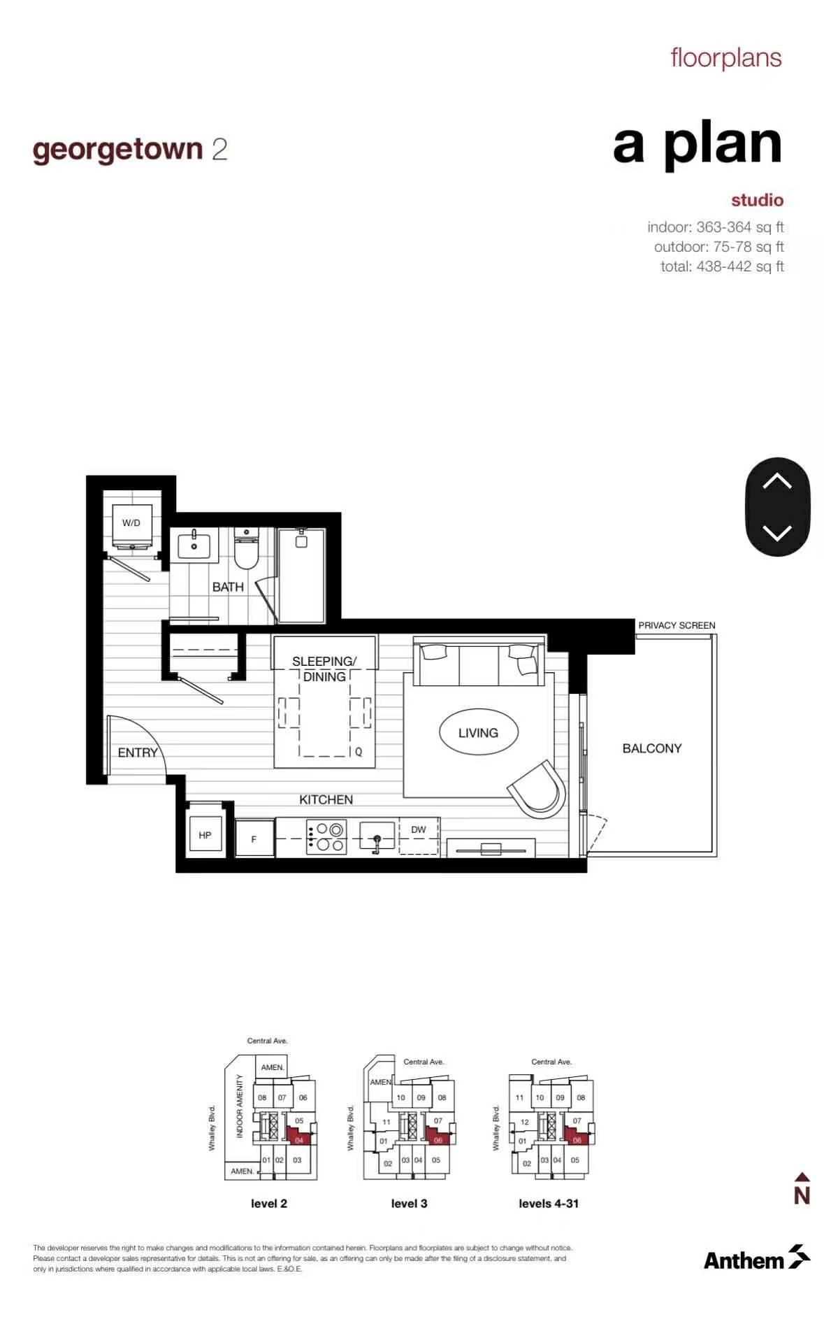 *No parking This brand-new studio suite at Georgetown 2 by Anthem Properties offers a smart, efficient layout with modern finishes, a contemporary kitchen featuring stainless steel appliances and stone countertops, in-suite laundry, and a private balcony. Residents enjoy access to premium building amenities including a fitness centre, lounge, games room, community garden, and concierge service. Perfectly located just steps from Surrey Central SkyTrain, SFU Surrey, Holland Park, shops, and restaurants. No pa...