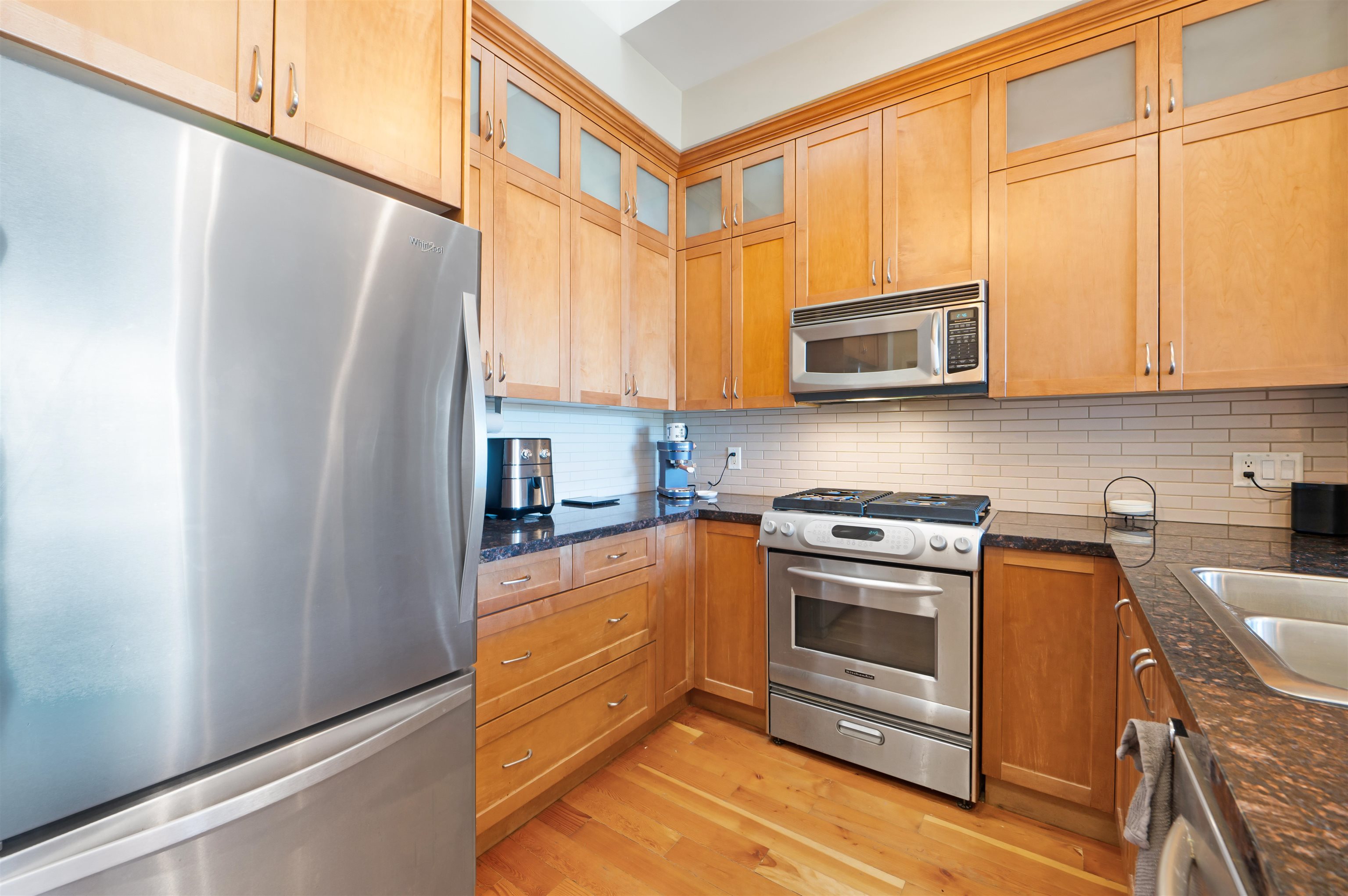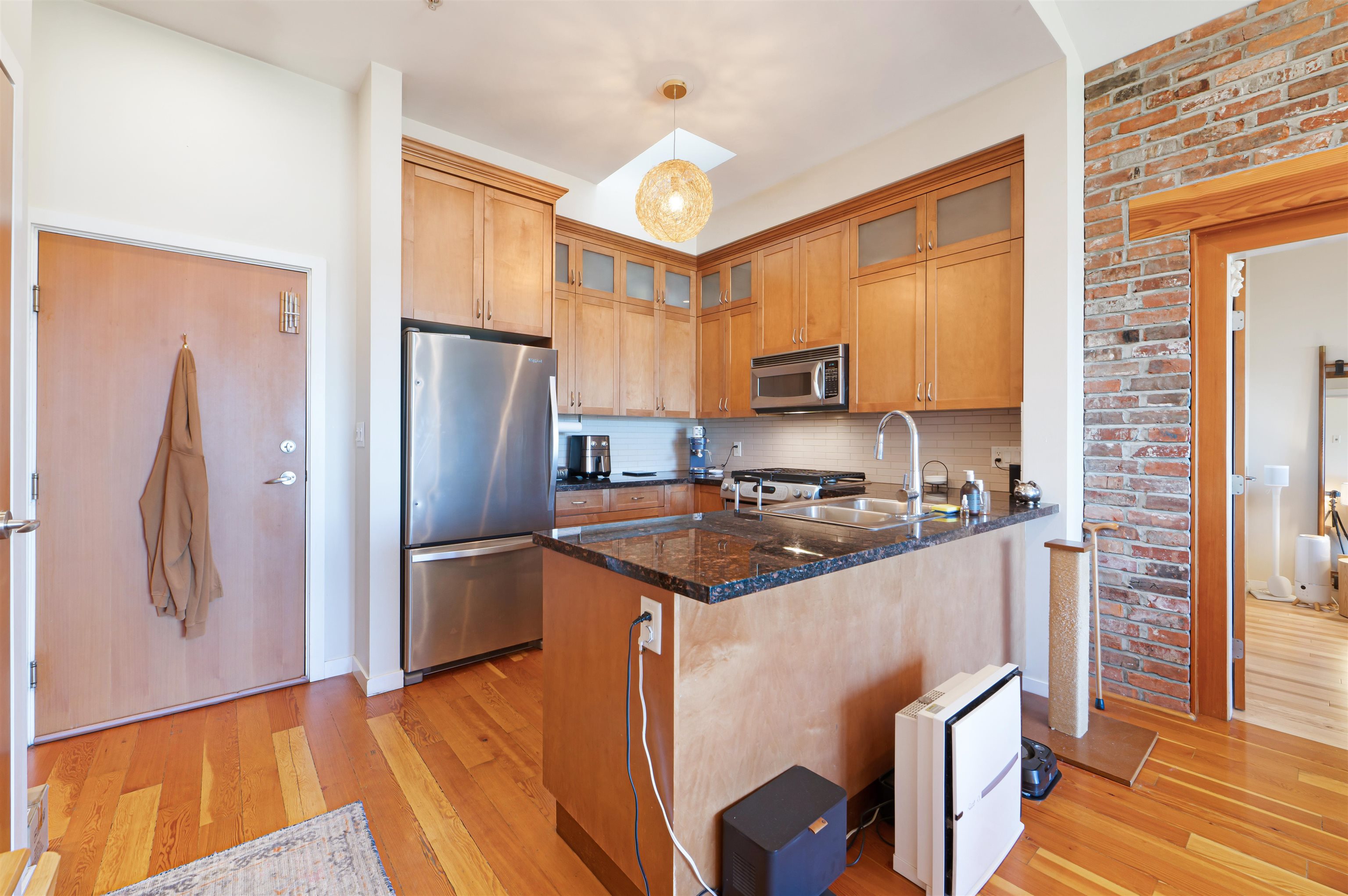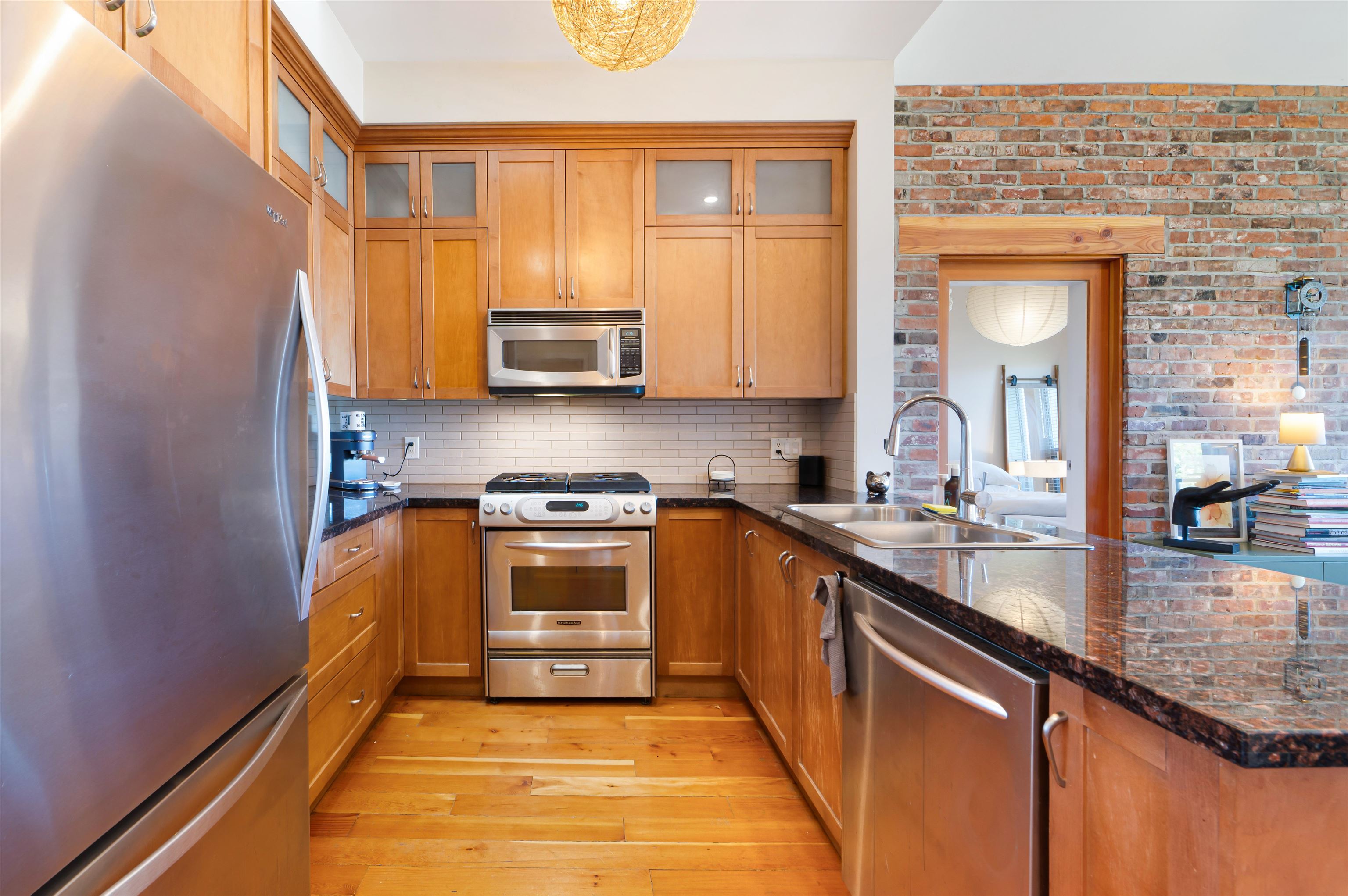 402-250 Salter Street - Paddlers Landing - This stunning top floor 2 bed, 2 bath home features soaring 15 foot ceilings, skylights and beautiful N/W views of the city and mountains. Gourmet kitchen with stainless appliances and granite counters, well separated bedrooms both with spacious walk-in closets and ensuites. Hardwood floors throughout, exposed brick accent wall and 2 outdoor balconies. Fabulous location, shopping and restaurants nearby and just steps to the River Walk. 2 underground parking include...