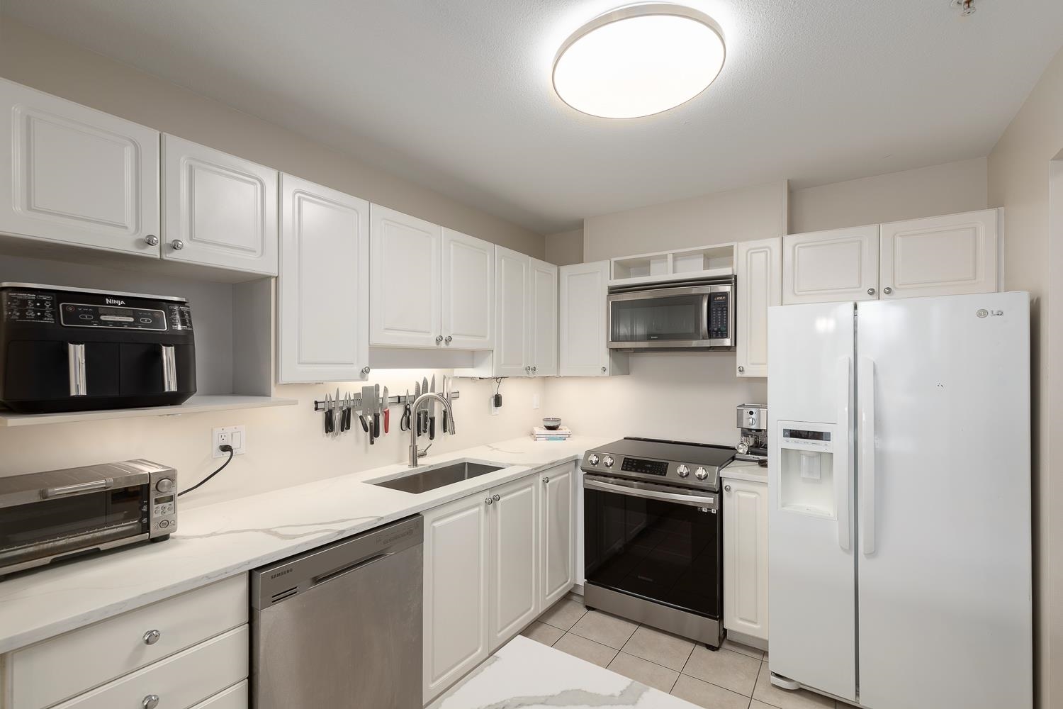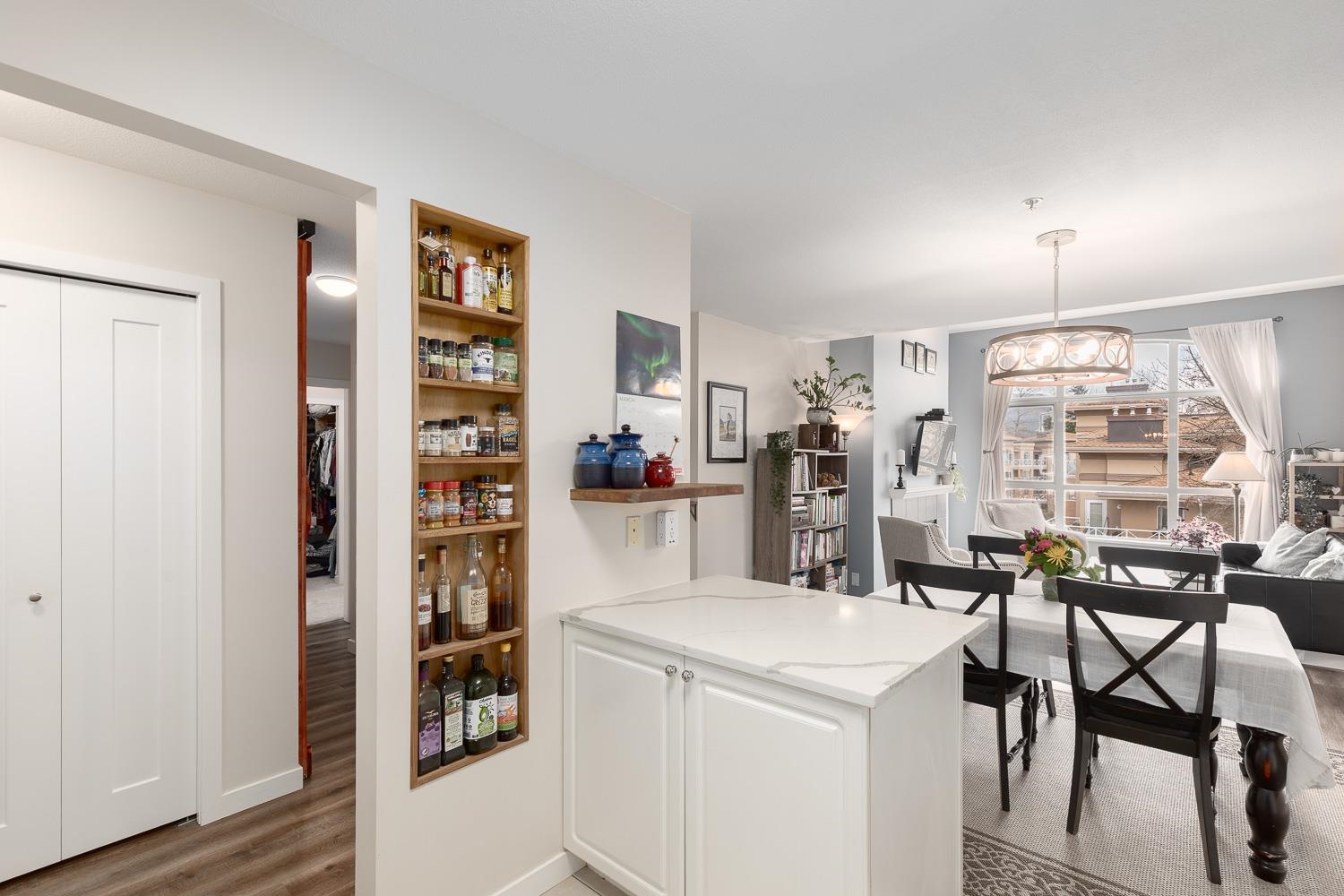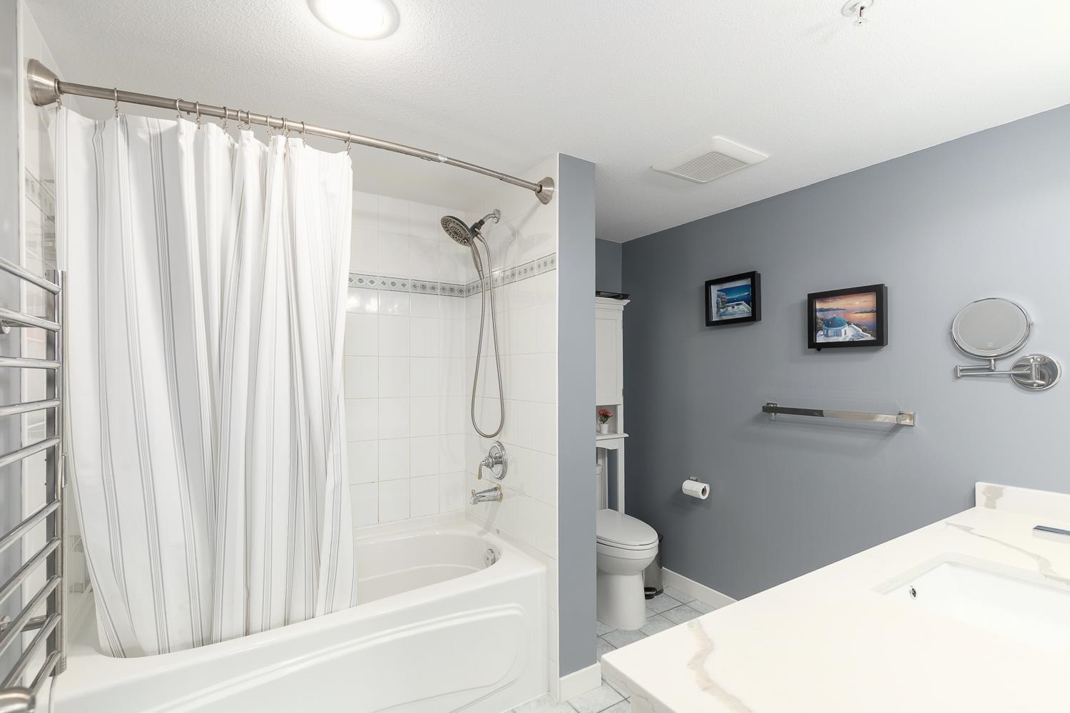 Top-floor corner home at The Crescent with vaulted ceilings and one of the most sought-after floor plans! This bright 2 bed, 2 bath + den features a cozy gas fireplace, principal bedroom with walk-in closet and ensuite, and two outdoor spaces, including a large sunny south-facing patio perfect for gardening. Thoughtful updates include lighting, wide-plank vinyl flooring, carpet, paint, countertops, custom closet built-ins, and a spice nook. Enjoy mountain views and a vibrant, well-connected community close ...