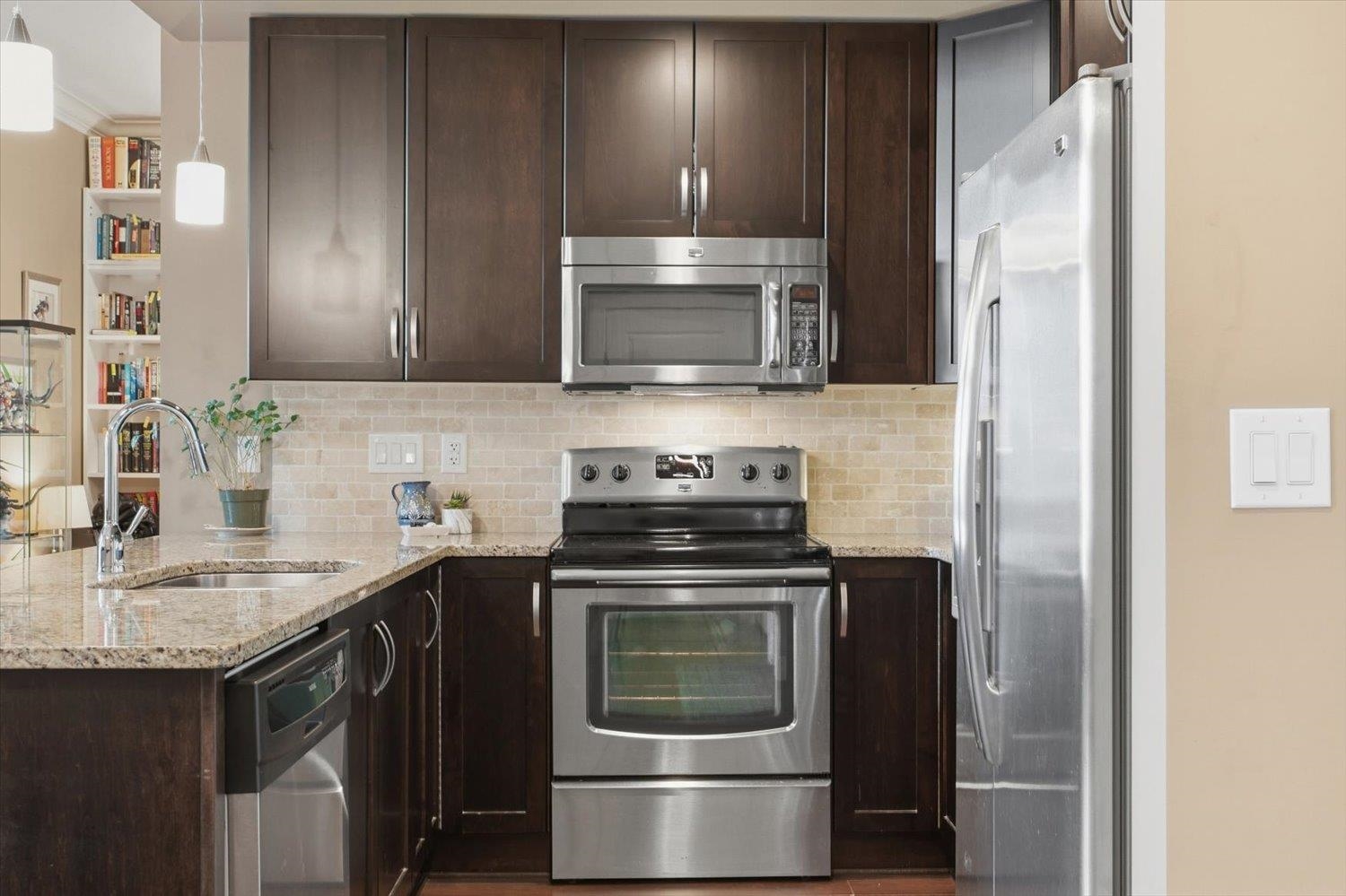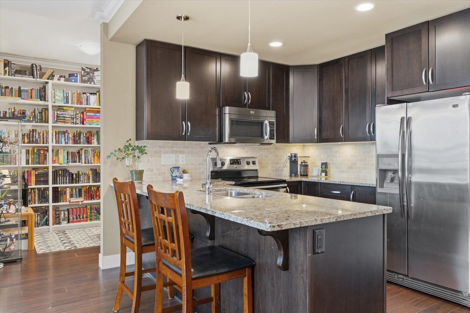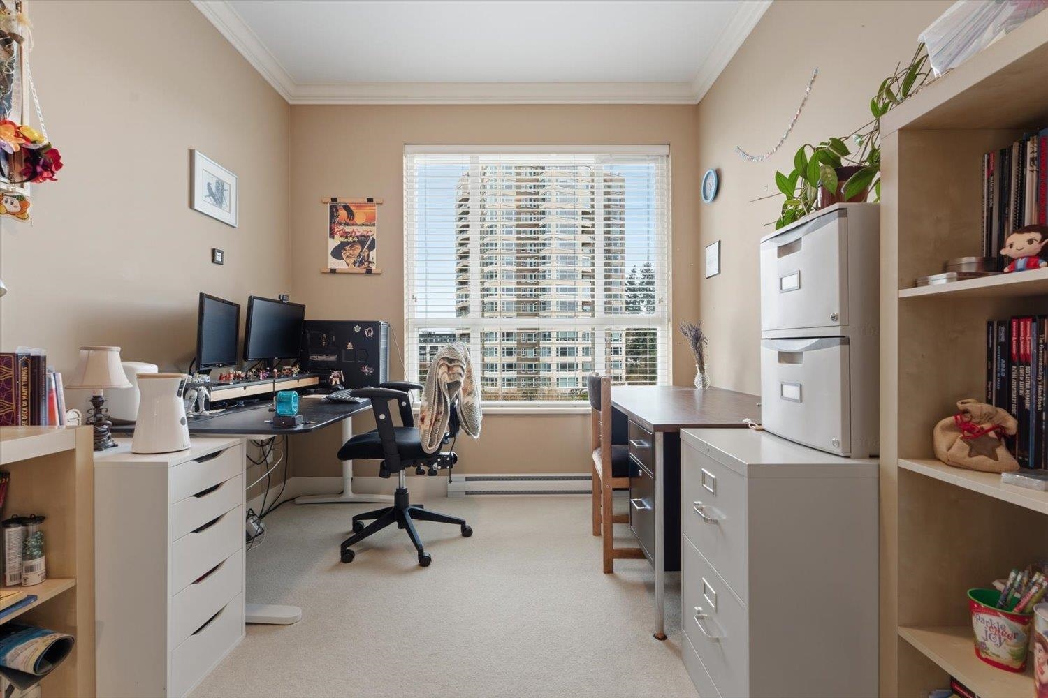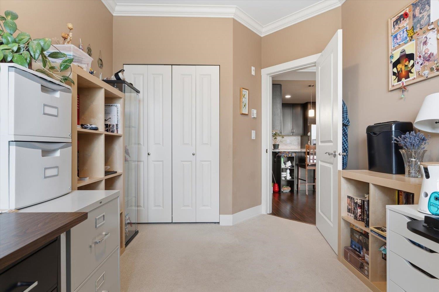 Beautiful PENTHOUSE corner unit in a fantastic central location! This 2 bed, 2 bath + den home features 11’ ceilings in the main living space, creating a bright and open feel throughout the open-concept layout. The dining area includes an added ceiling fan for comfort, while the bright primary suite offers a large walk-in closet with built-ins and a private ensuite! The south-facing patio quietly overlooks the courtyard and fountains, making it a great spot to relax. Very clean and well maintained. Close to...