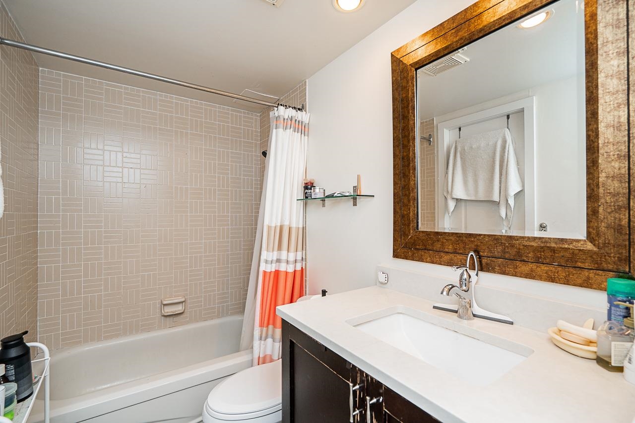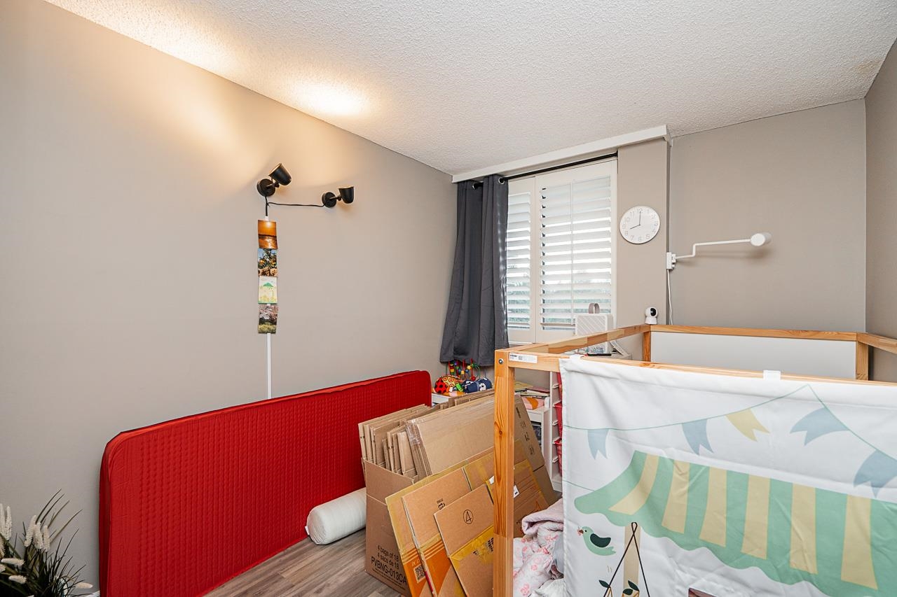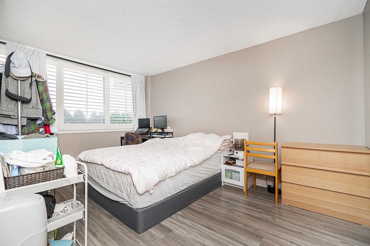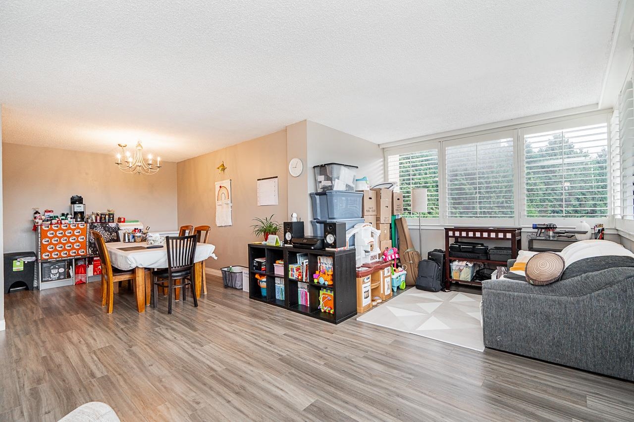 "Masters Green" in sought after West Richmond neighborhood. Welcome to this charming large 2 bedroom 1 full bath Corner Suite in a Concrete building. Bright and Spacious layout. South-East facing residence offers 916 sq ft comfortable living space, creating a warm and inviting atmosphere. Many updates including appliances, kitchen with granite counters, laminated hardwood flooring and classy California Shutters. Well maintained complex on a park-like setting. Great recreational facilities including a clubho...