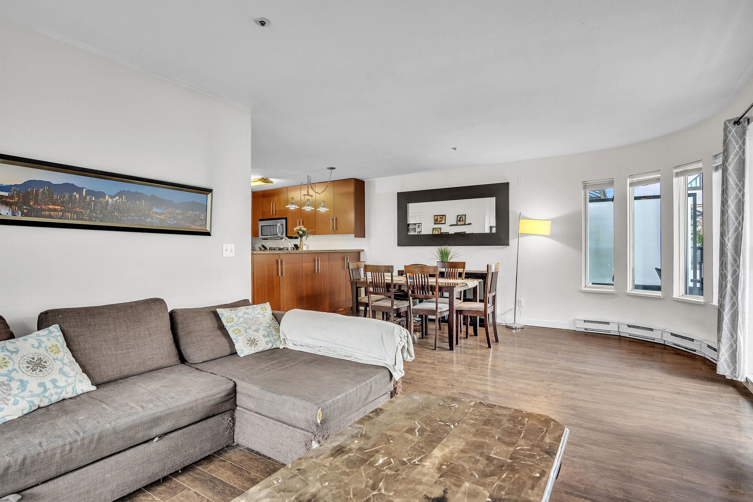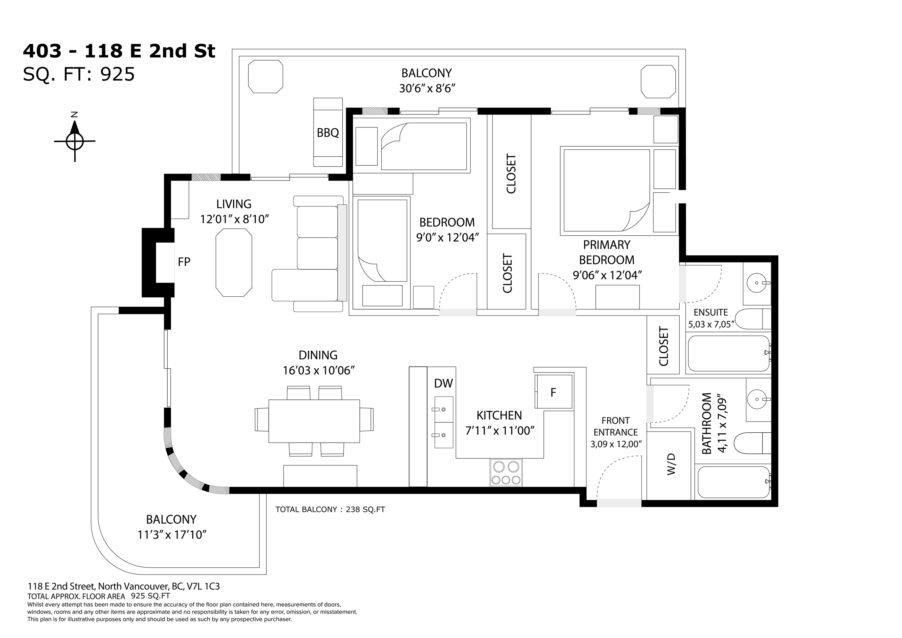 Bright and spacious 2-bedroom, 2 full bath apartment in a boutique building in the heart of Lower Lonsdale. This 925 sq ft home features an open-concept layout with a tastefully updated kitchen including granite counters and stainless steel appliances. Engineered hardwood flooring, in-suite laundry, and a cozy gas fireplace add comfort and style. Enjoy two private sundecks with pleasant city and water views. Just a short stroll to the SeaBus, Lonsdale Quay, the Shipyards, Brewery District, shops, restaurant...