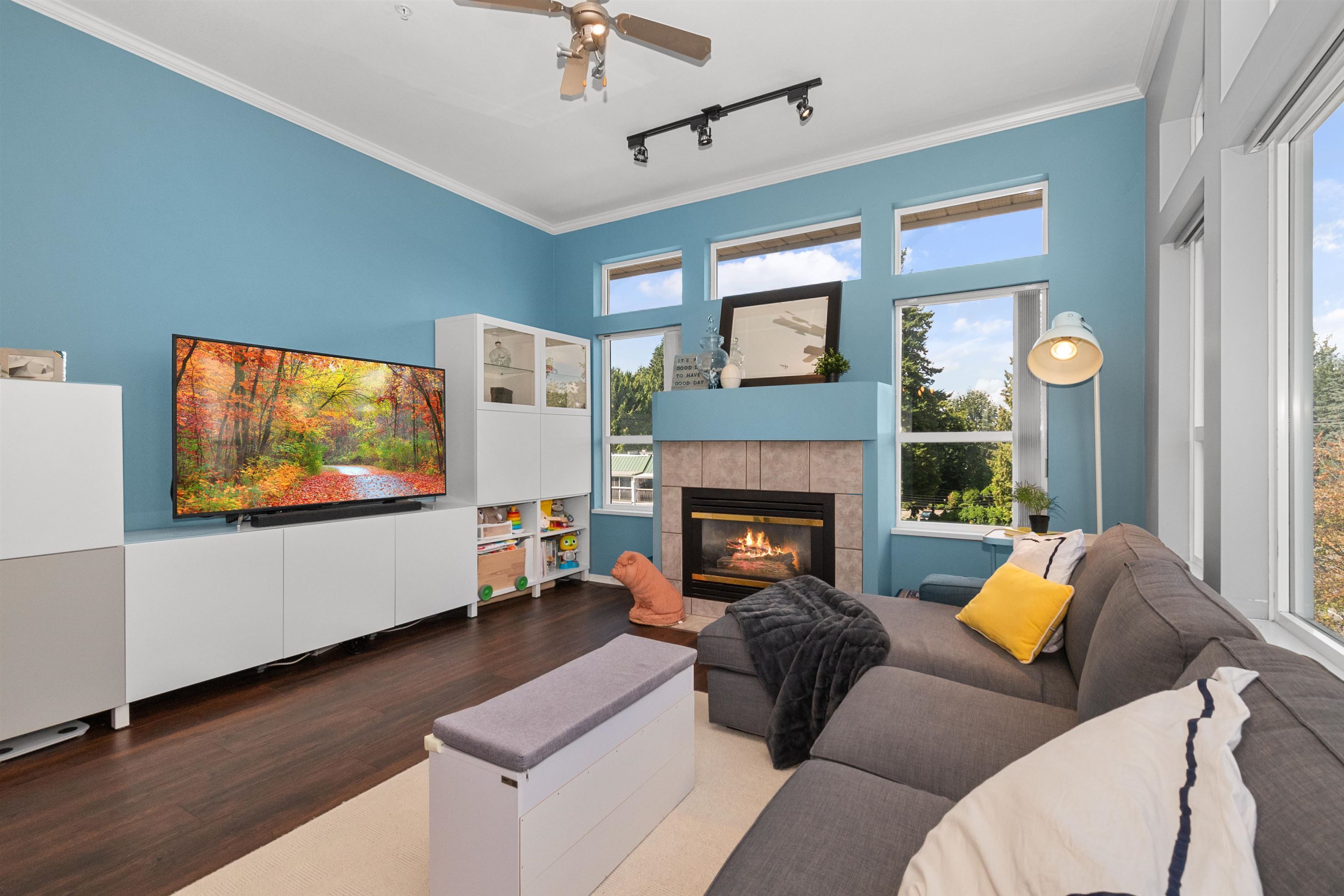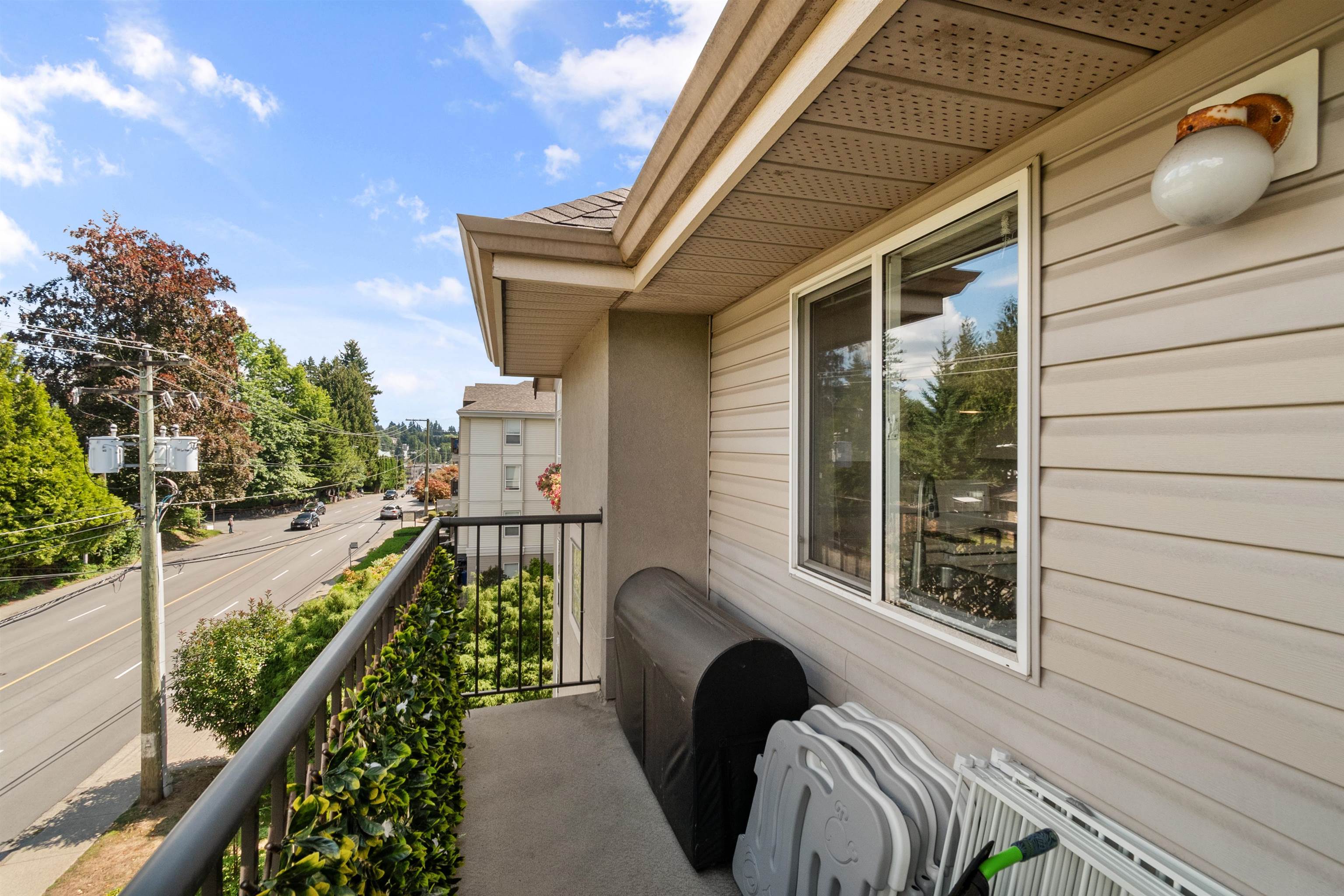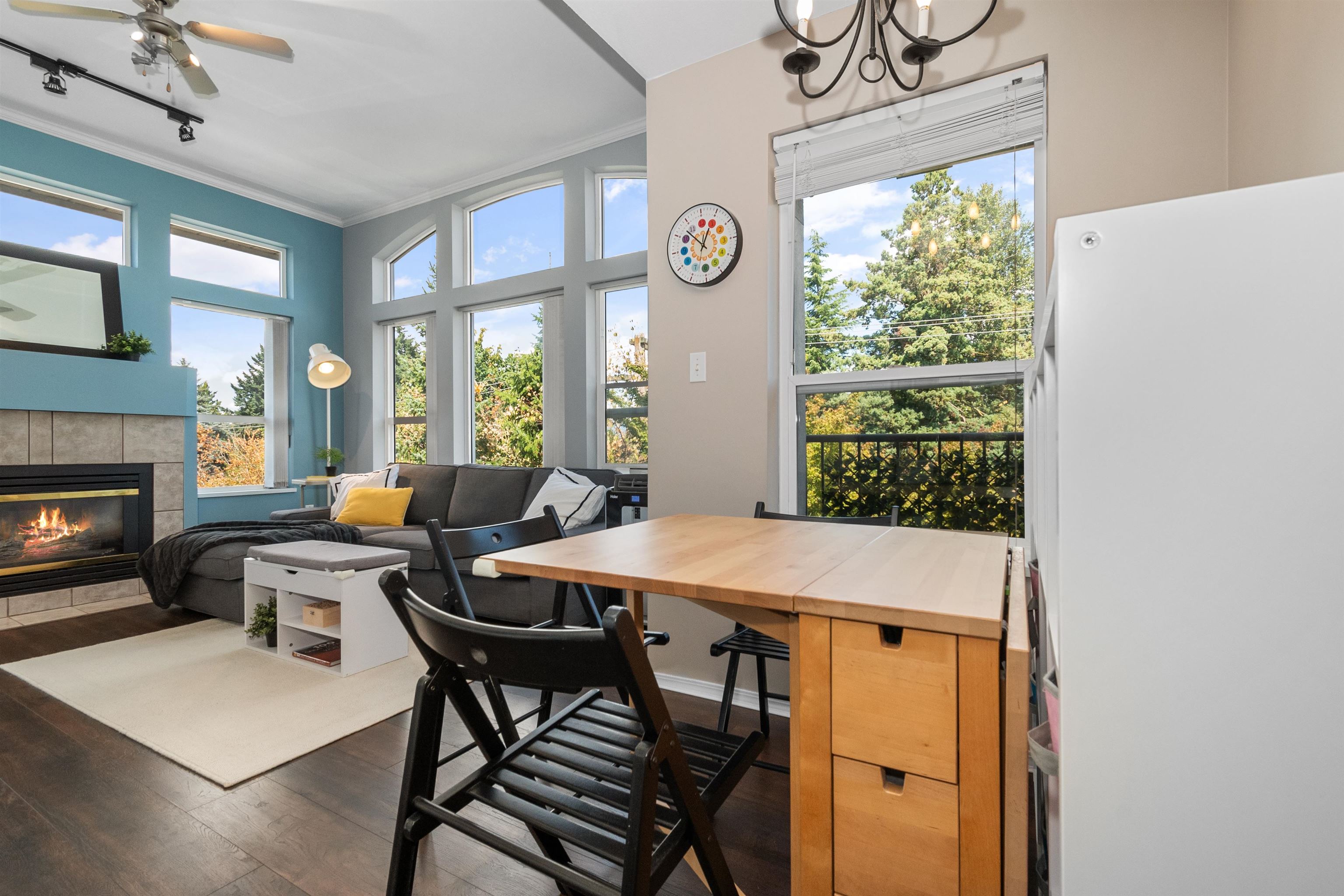 Welcome to this 2 bedroom, 2 bathroom top floor corner unit. Originally the show suite, this bright and spacious home features vaulted ceilings, an open floor plan, and large windows showcasing beautiful north-facing mountain views. The living room offers a cozy gas fireplace, and each bedroom has its own bathroom for added privacy. Enjoy a generous deck off the dining area, in-suite laundry, and ample storage. Centrally located close to shopping, the revitalized Abbotsford core, amenities, and public trans...