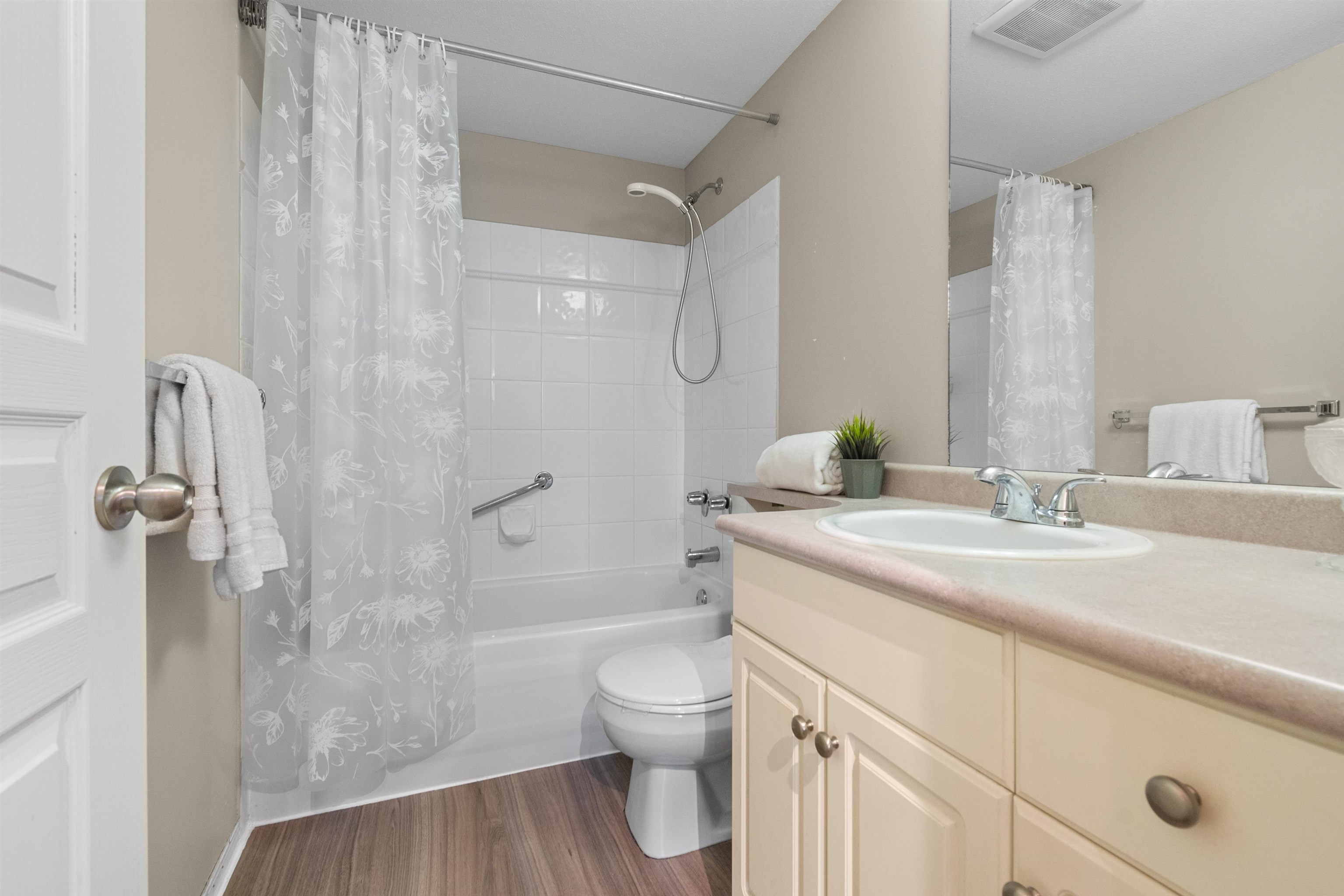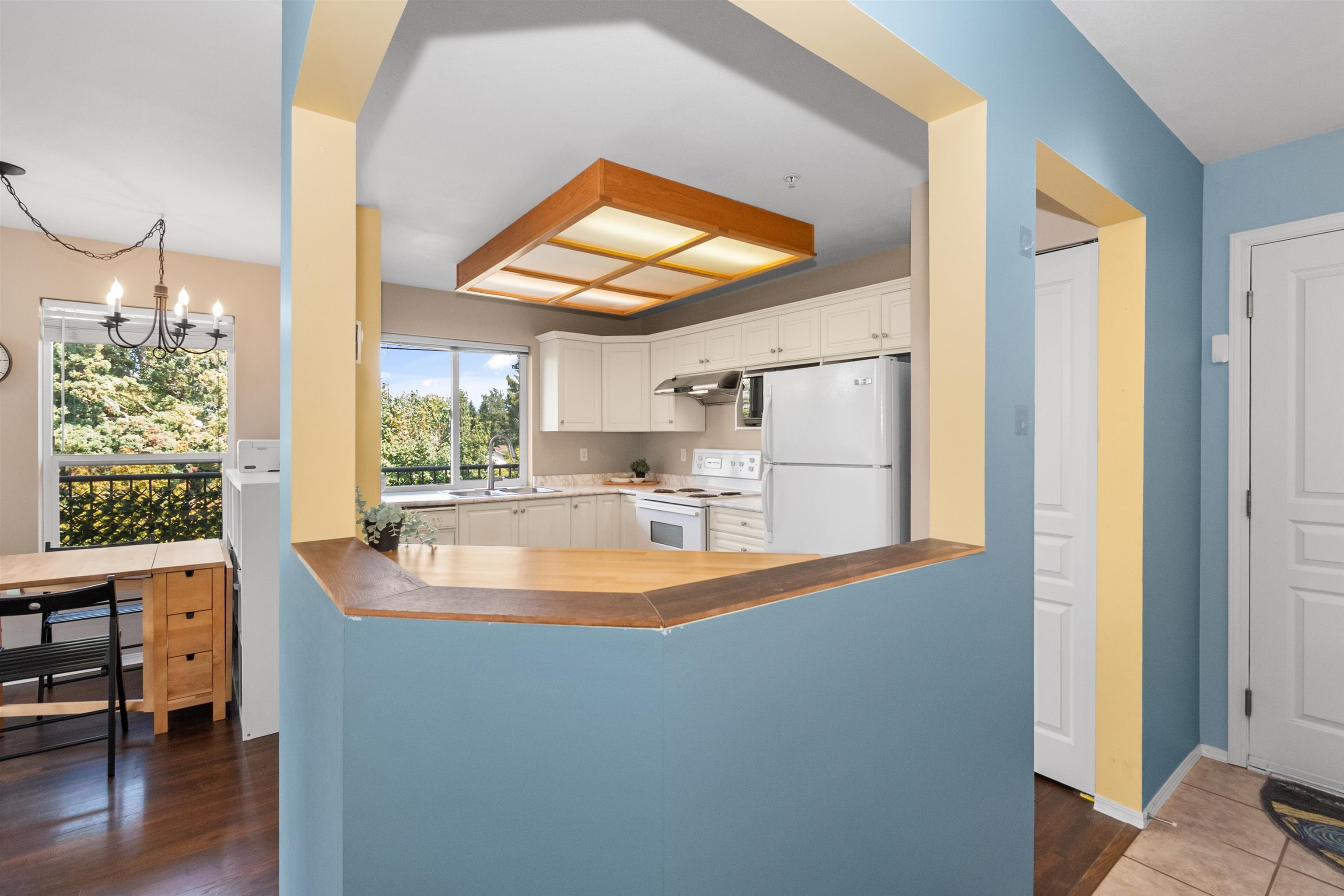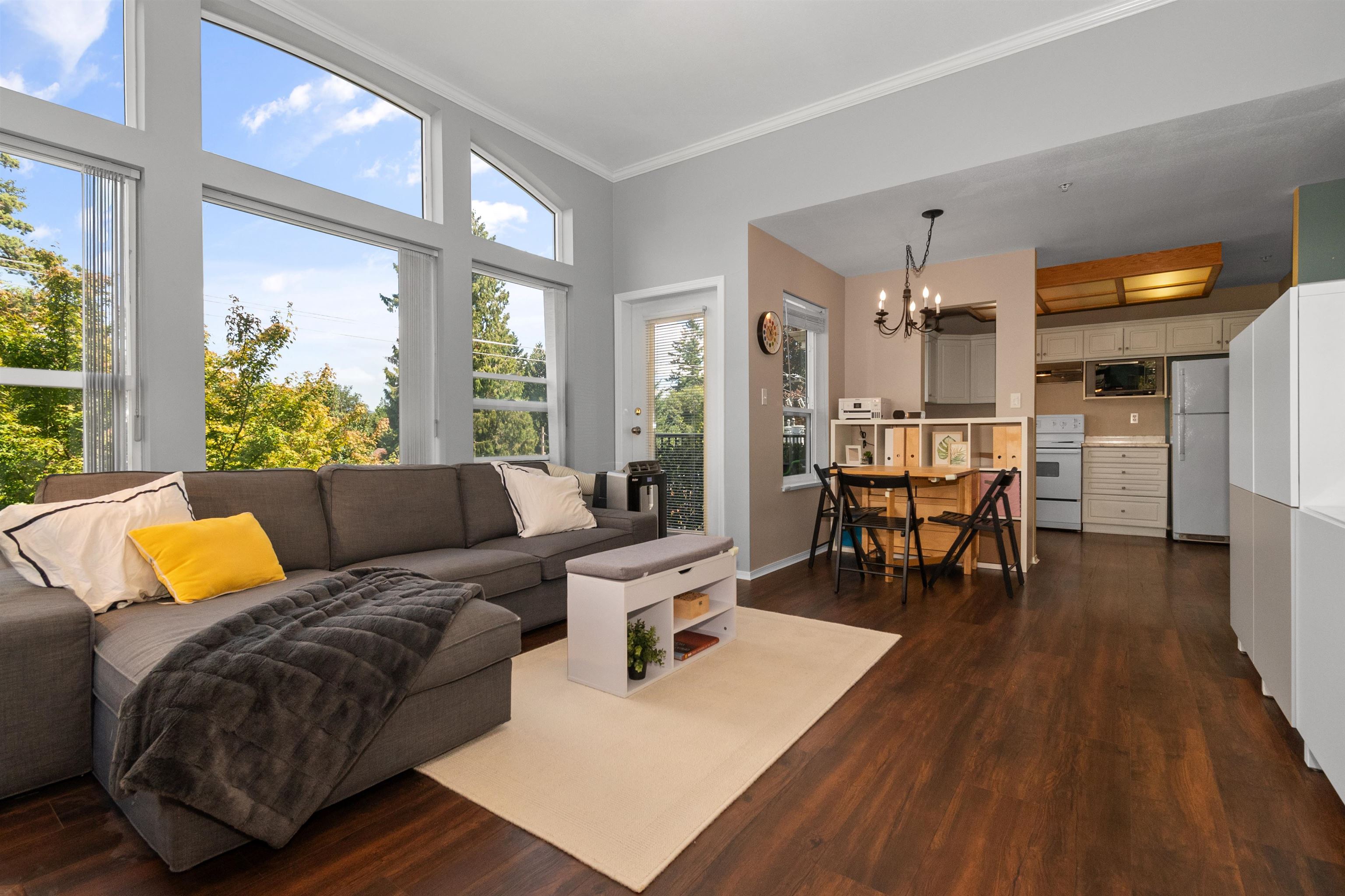 Welcome to this 2 bedroom, 2 bathroom top floor corner unit. Originally the show suite, this bright and spacious home features vaulted ceilings, an open floor plan, and large windows showcasing beautiful north-facing mountain views. The living room offers a cozy gas fireplace, and each bedroom has its own bathroom for added privacy. Enjoy a generous deck off the dining area, in-suite laundry, and ample storage. Centrally located close to shopping, the revitalized Abbotsford core, amenities, and public trans...
