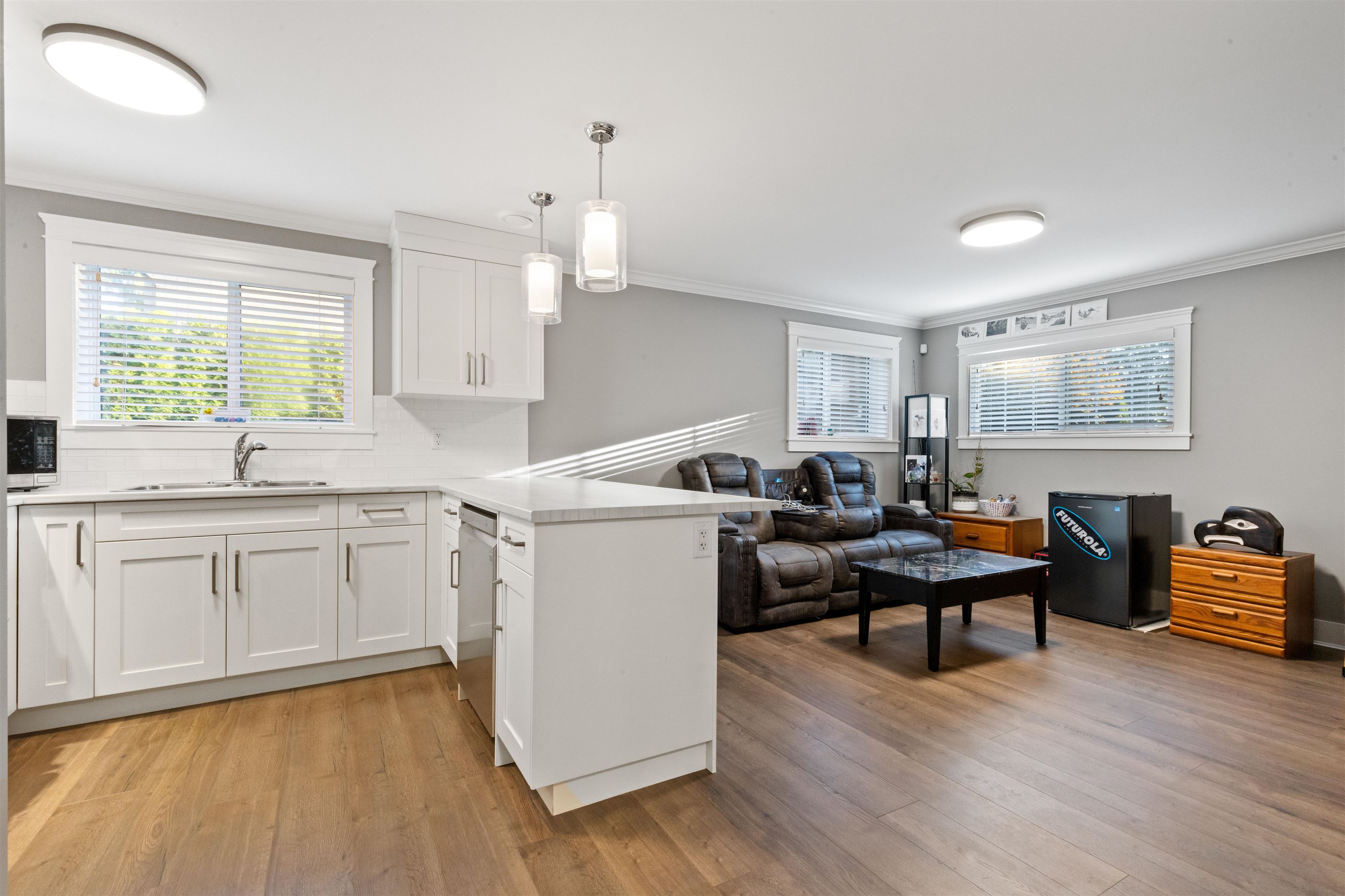 CURB APPEAL THAT WOWS! Welcome to your new home, a fully renovated gem on a serene no-thru road. This remodeled home boasts a stamped concrete driveway with Illuminated lighting & a lush app-controlled irrigated yard. Enjoy evening west facing farm sunsets. Inside, find Pravada engineered hardwood & vinyl plank floors. 1-bedroom basement suite, with its own laundry. Unwind in the primary bathrooms jetted master bath, new plumbing & electrical throughout the home, A/C for summer comfort. 20x20 Detached shop ...