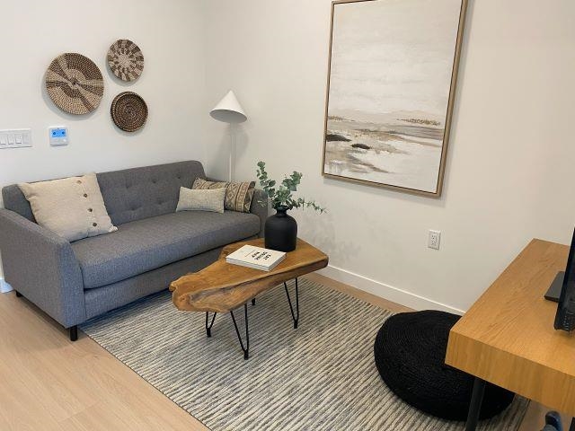 MOVE-IN READY NEW CONDO! Located on a quiet street yet steps from cafés, Brewery Row, SkyTrain, Rocky Point Park, walking/bike trails-perfect for active urban living. Direct bus/train nearby to SFU/Vancouver Downtown. Thoughtfully designed layout with 9’ ceilings, in-suite laundry, roller shades, LED lighting, and HVAC for year-round comfort. Modern kitchen features quartz countertops, soft-close oak cabinetry, stainless steel appliances, and undermount sink. Enjoy sunrise & mountain views from covered balc...