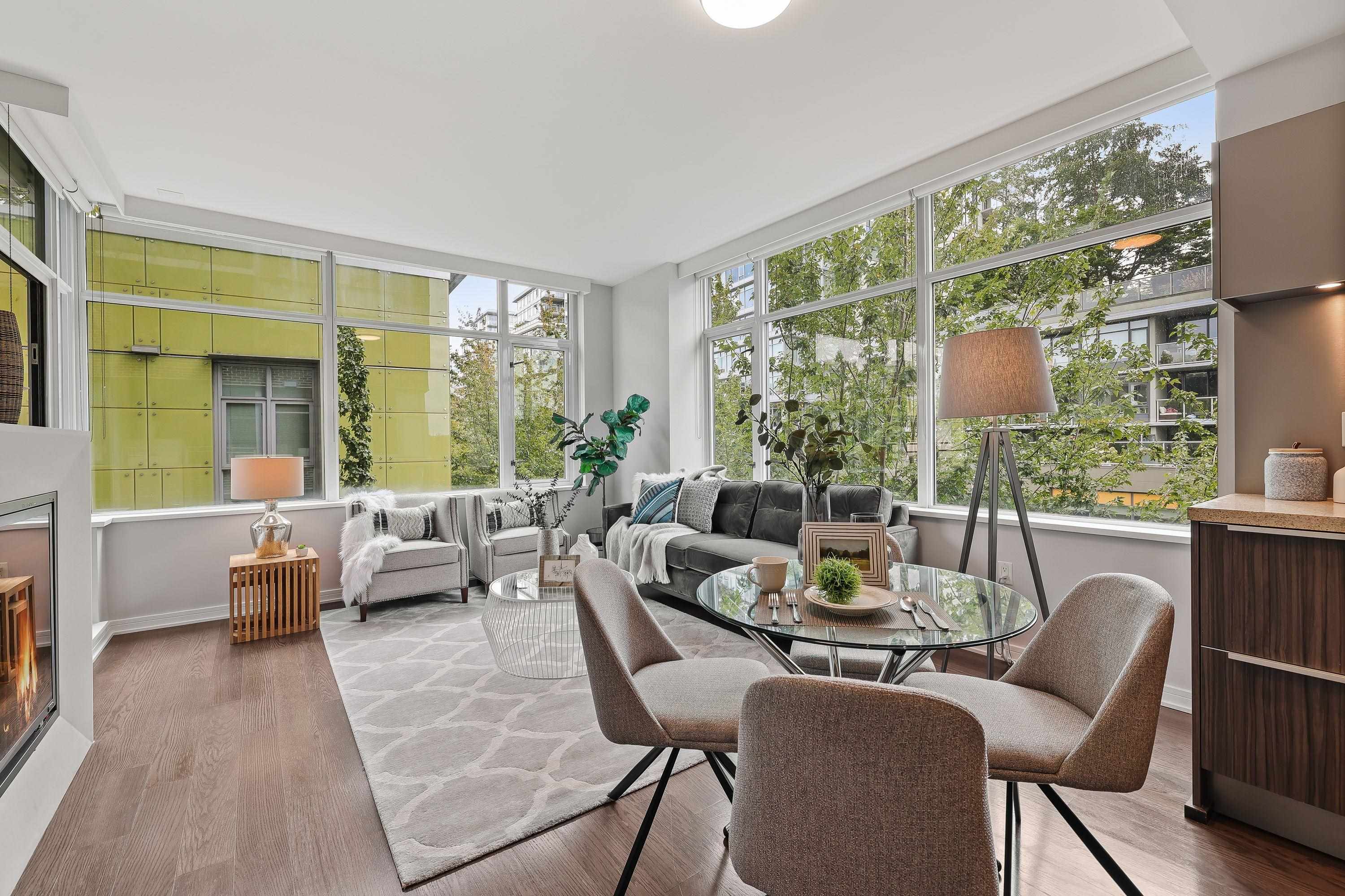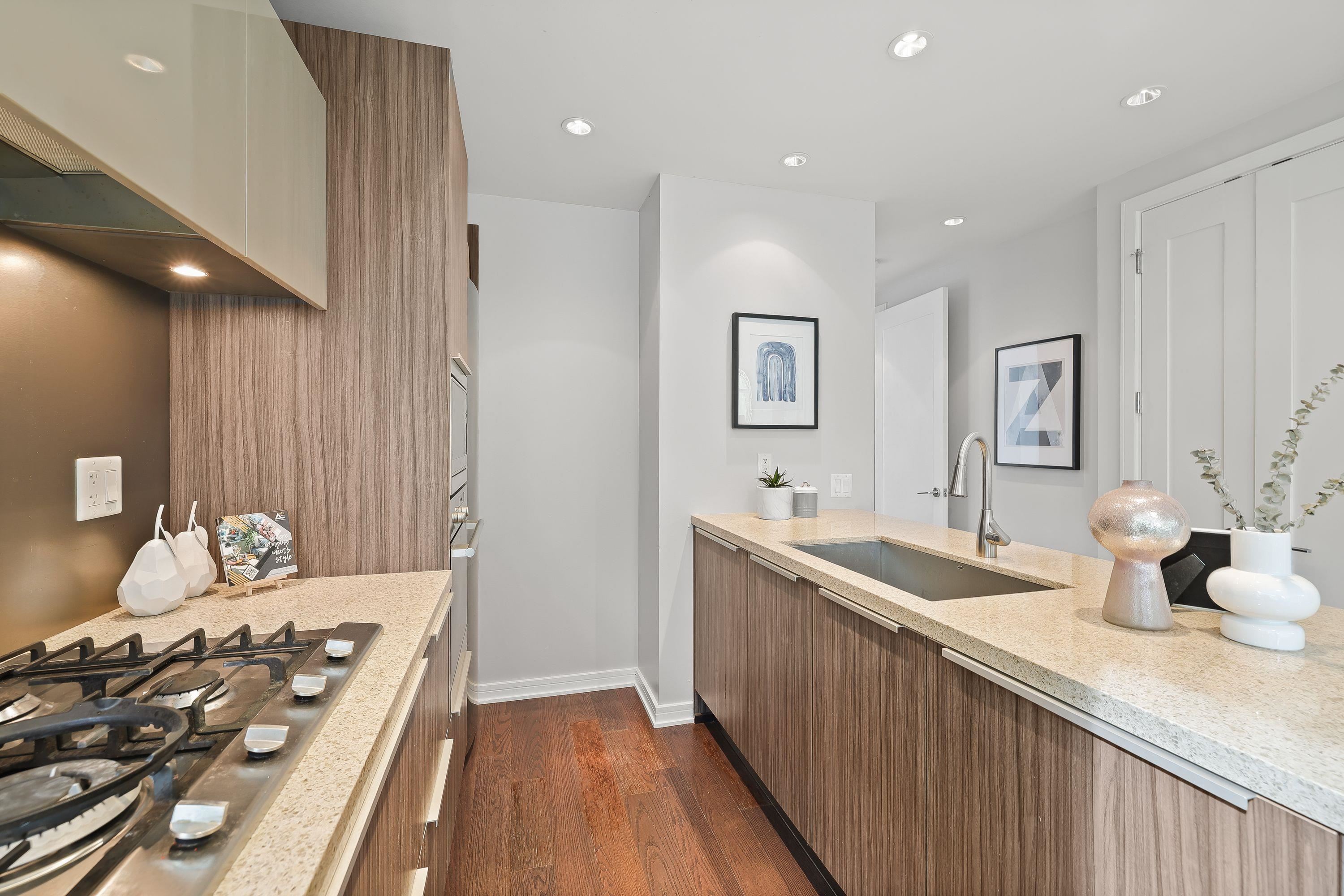 Immaculate open planned Southeast CORNER 2 Bedroom 2 Bathroom home at the BROOK in Olympic Village. Enjoy the abundance of natural light with plenty of windows, over height ceilings, radiant heating/cooling system, double vanity with standup shower in the primary ensuite & a balcony to enjoy your open city & mountain views. A kitchen that would make any chef jealous with top of the line Sub-zero & Miele appliances with gas stove, Eggersman cabinetry & bar seating. World class amenities in the bldg as well a...