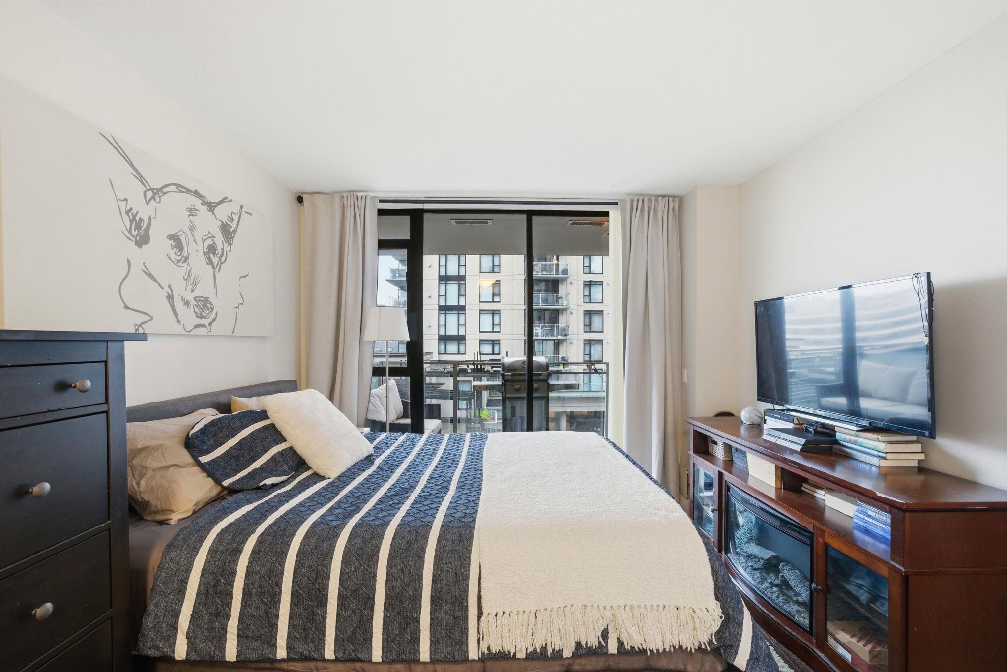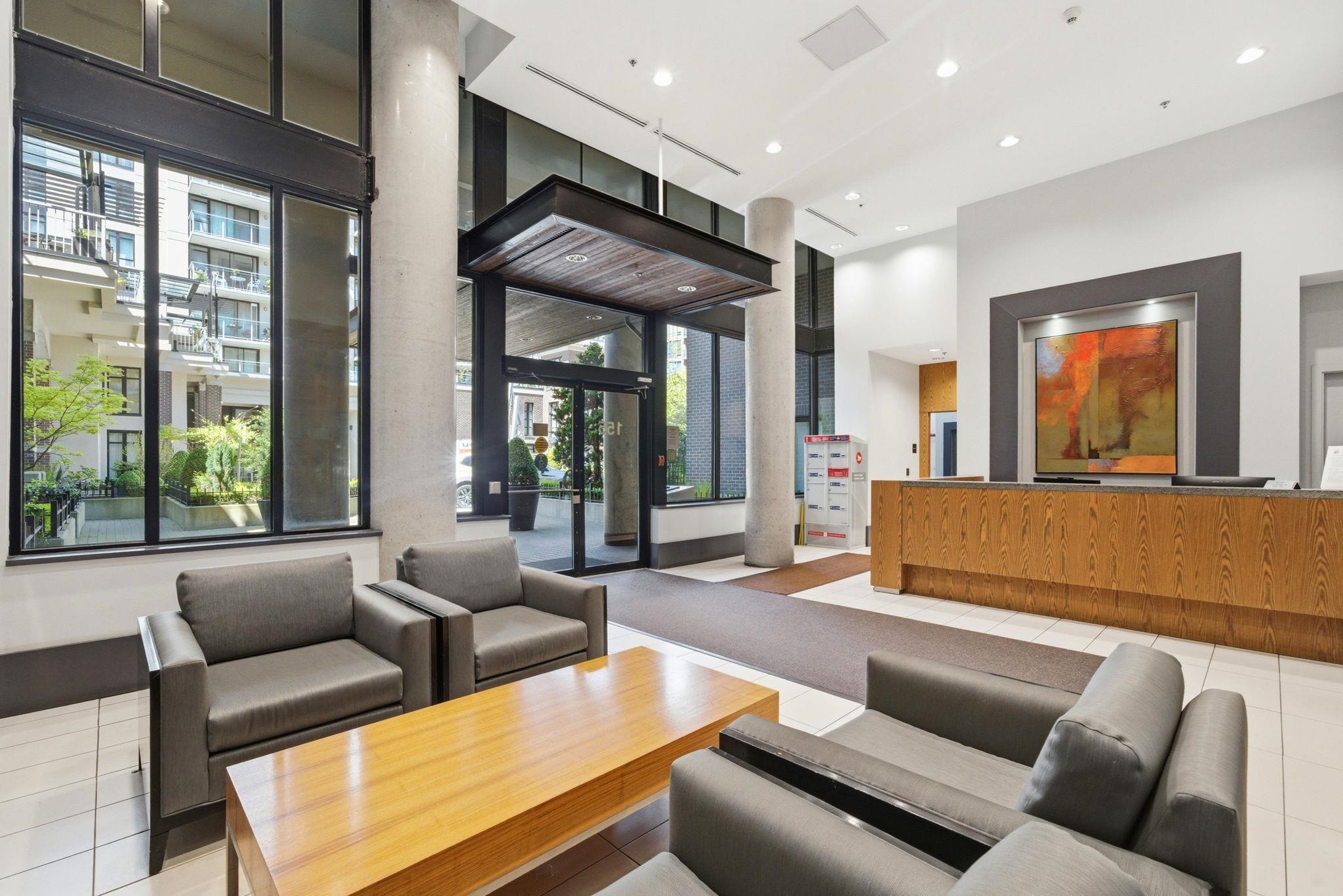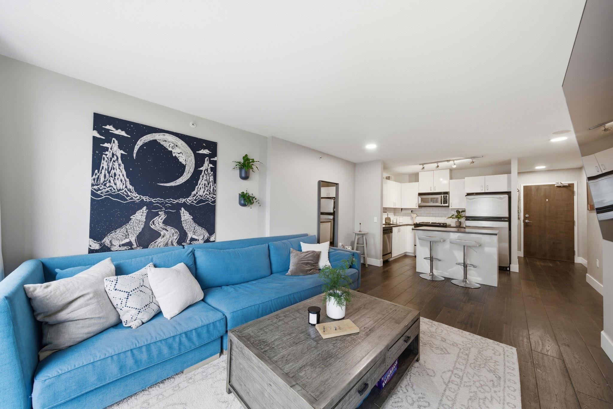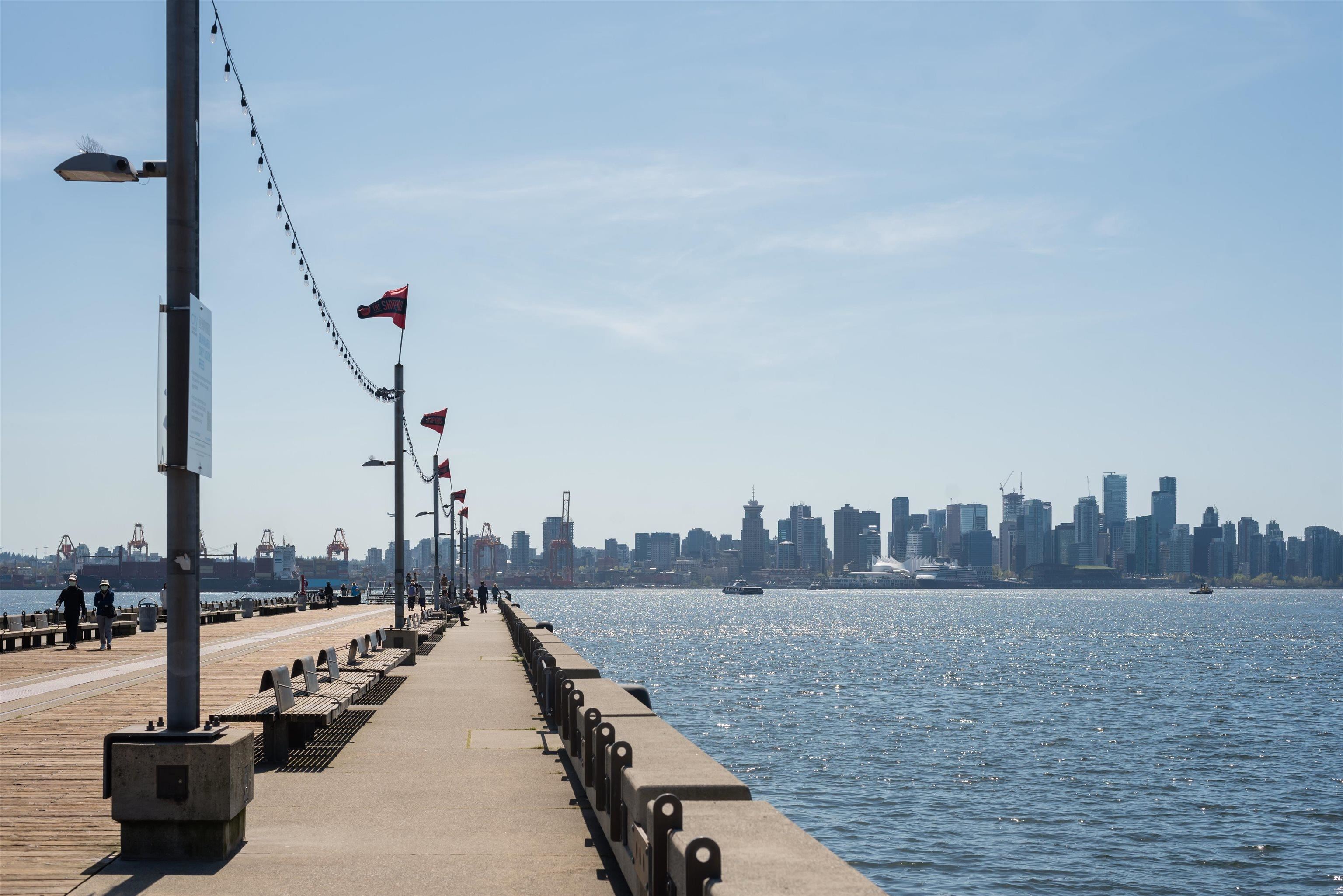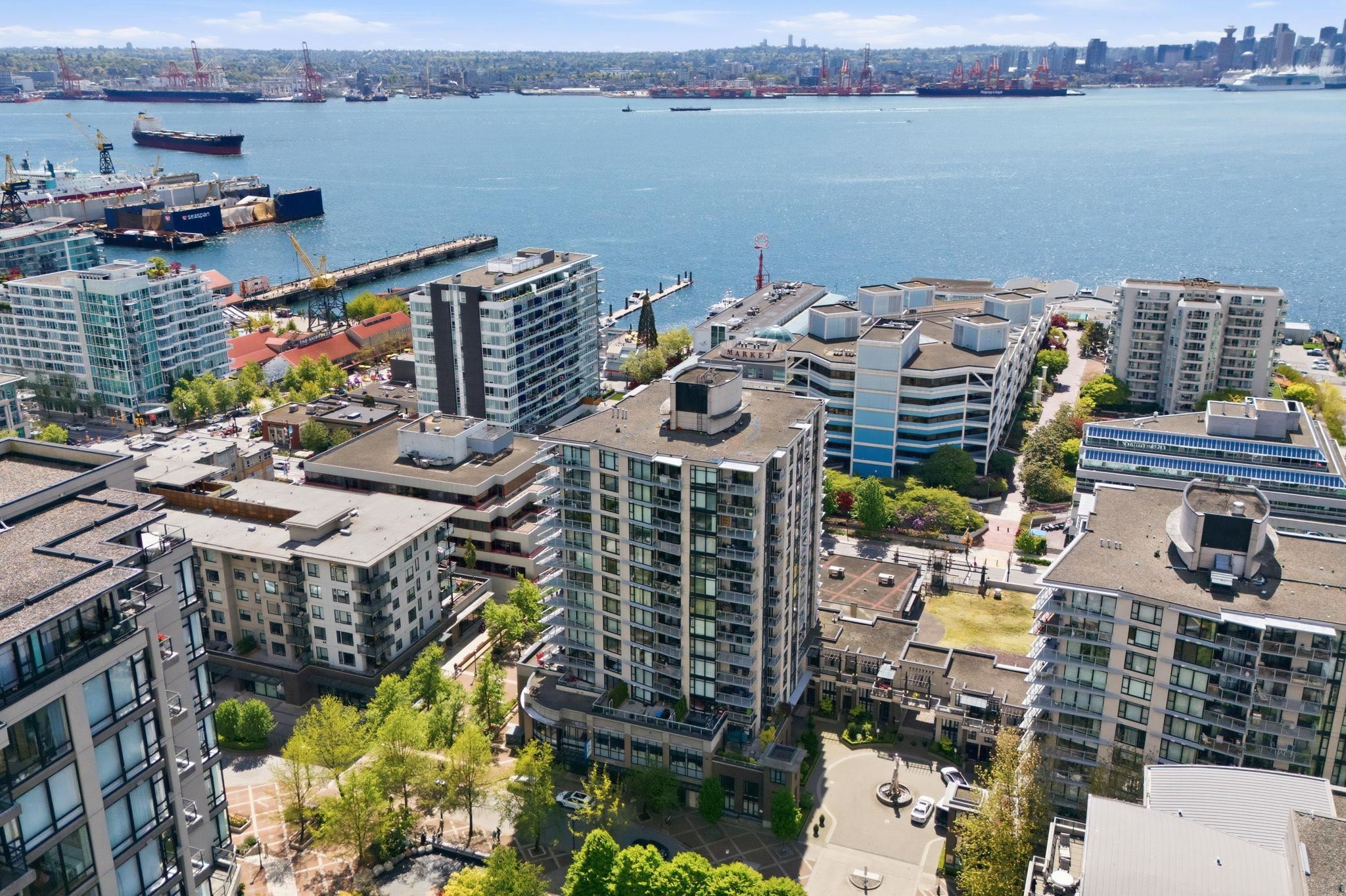 Bright, west facing 1 bedroom & den in the highly sought after Time building in the heart of Lower Lonsdale. Quiet & inviting, this home features floor to ceiling windows w/ partial views of Downtown Vancouver & Burrard Inlet, plus a covered balcony perfect for sunsets & summer BBQs. The open layout is functional & welcoming with a cozy gas fireplace, while the kitchen offers a gas range, breakfast bar & ample storage. The den adds flexibility for a home office or storage. Includes 1 parking, locker & bike ...