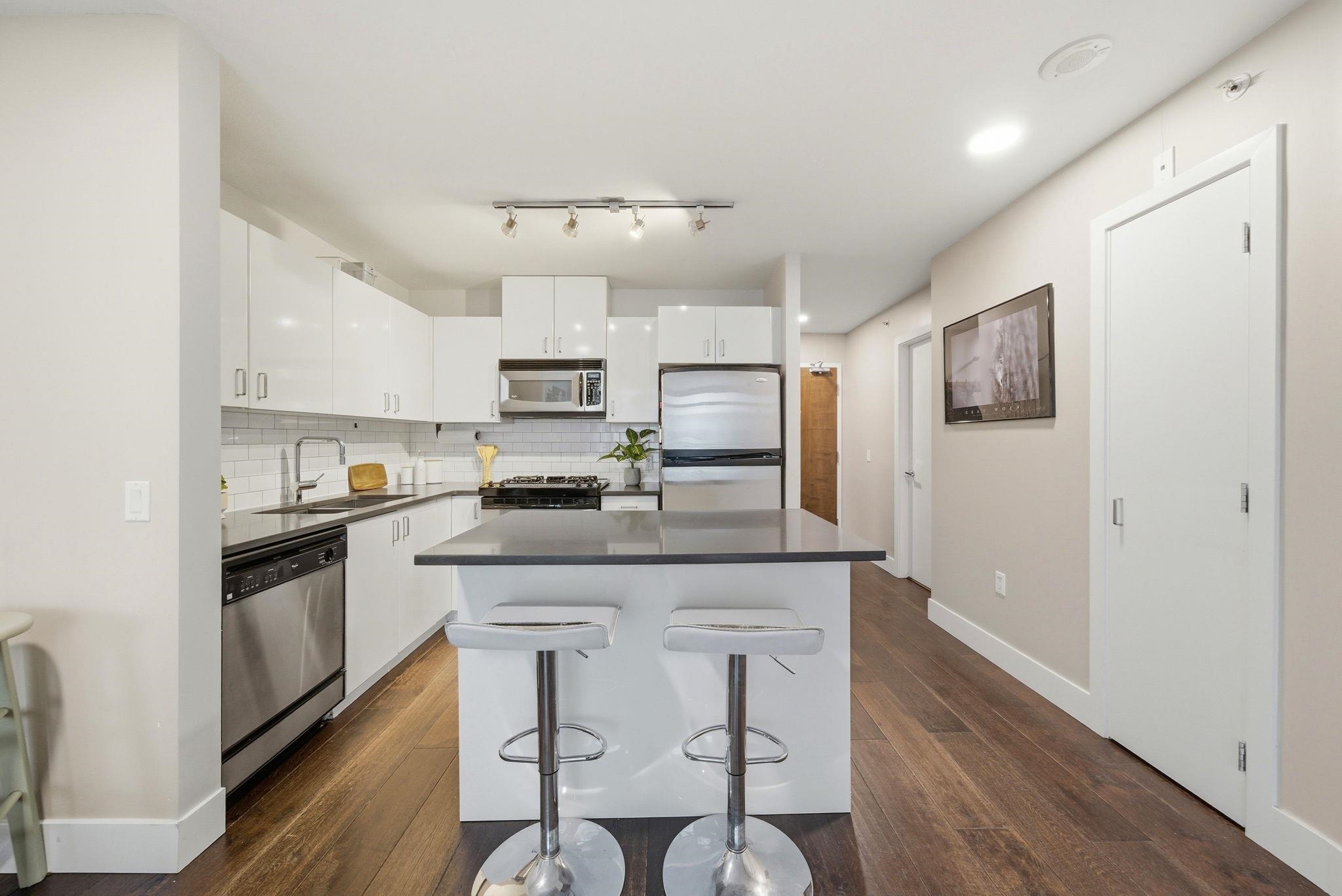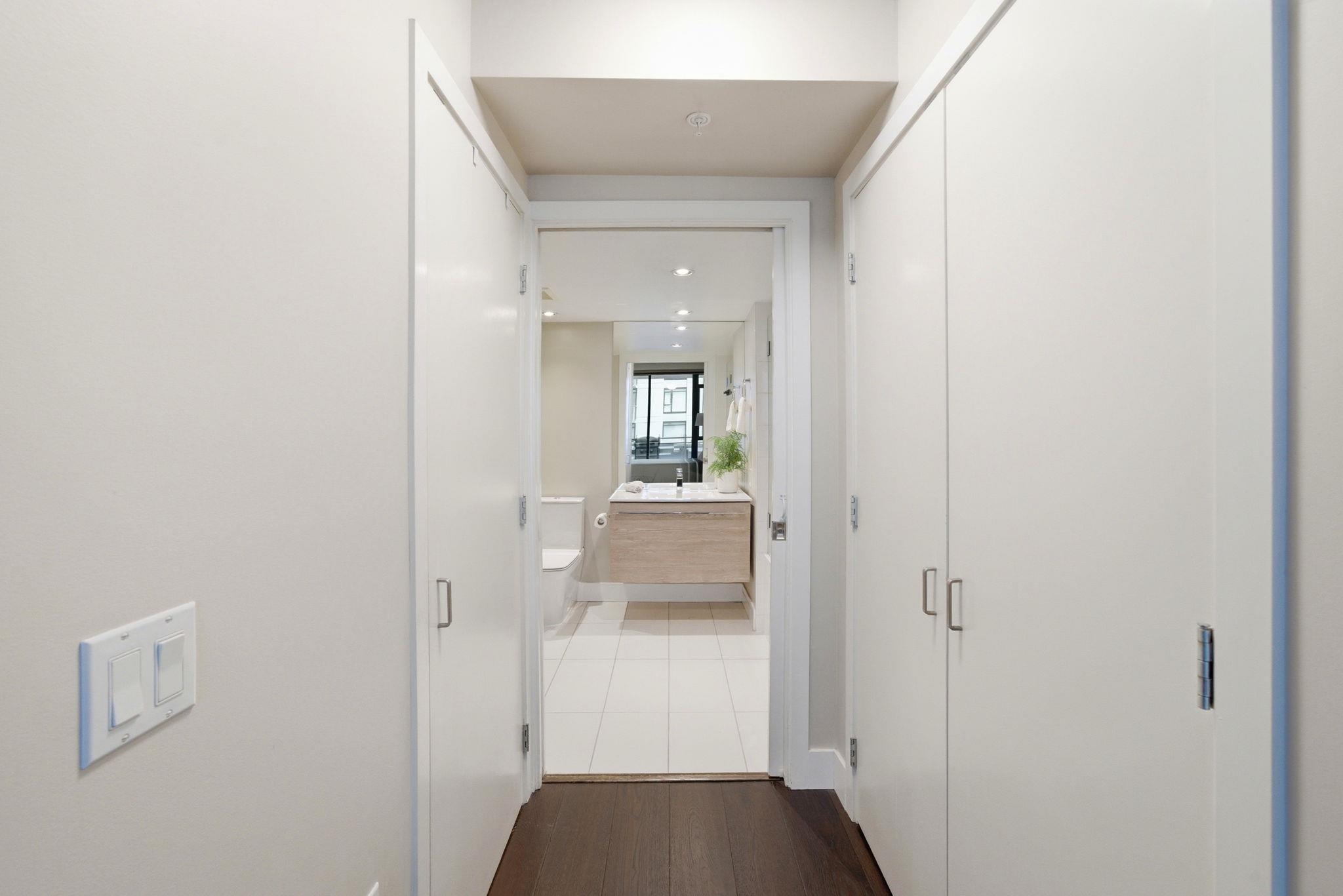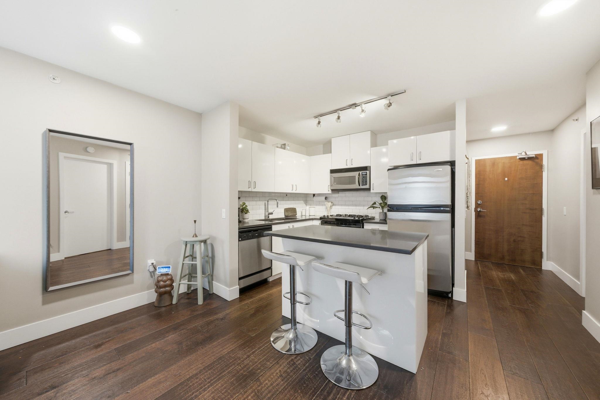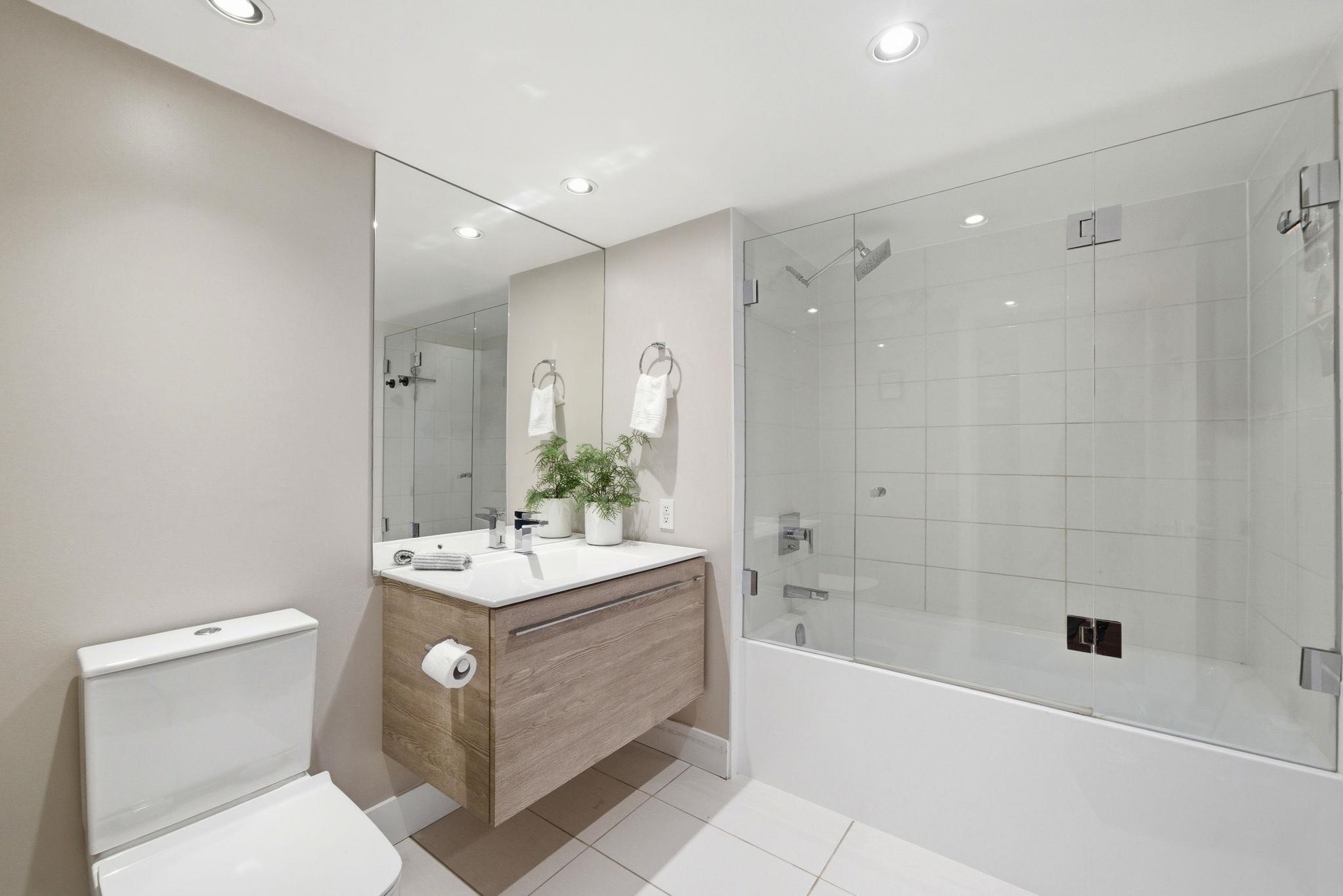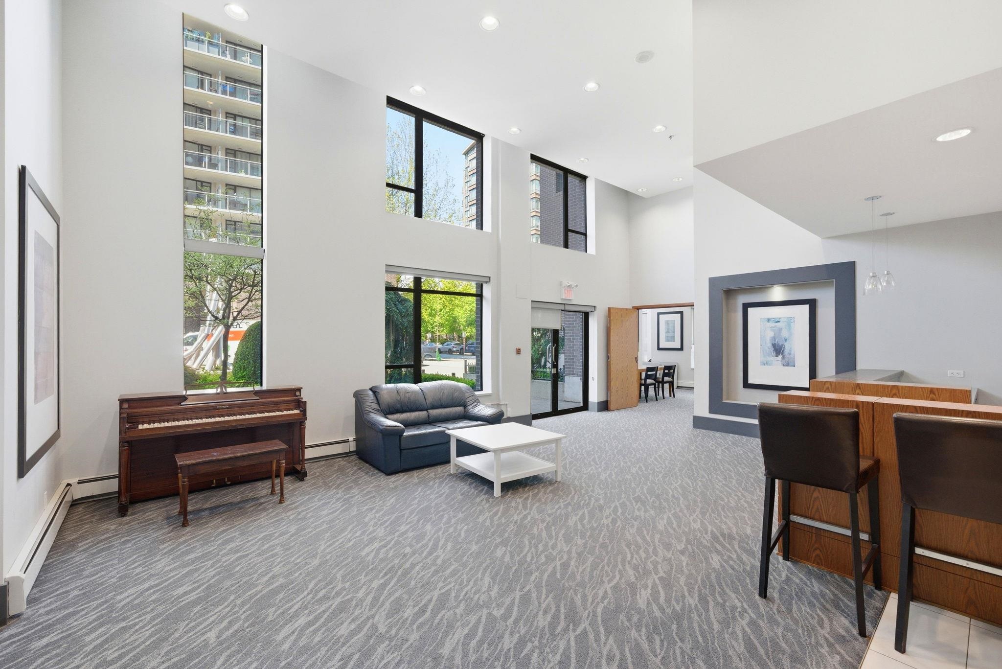 Bright, west facing 1 bedroom & den in the highly sought after Time building in the heart of Lower Lonsdale. Quiet & inviting, this home features floor to ceiling windows w/ partial views of Downtown Vancouver & Burrard Inlet, plus a covered balcony perfect for sunsets & summer BBQs. The open layout is functional & welcoming with a cozy gas fireplace, while the kitchen offers a gas range, breakfast bar & ample storage. The den adds flexibility for a home office or storage. Includes 1 parking, locker & bike ...