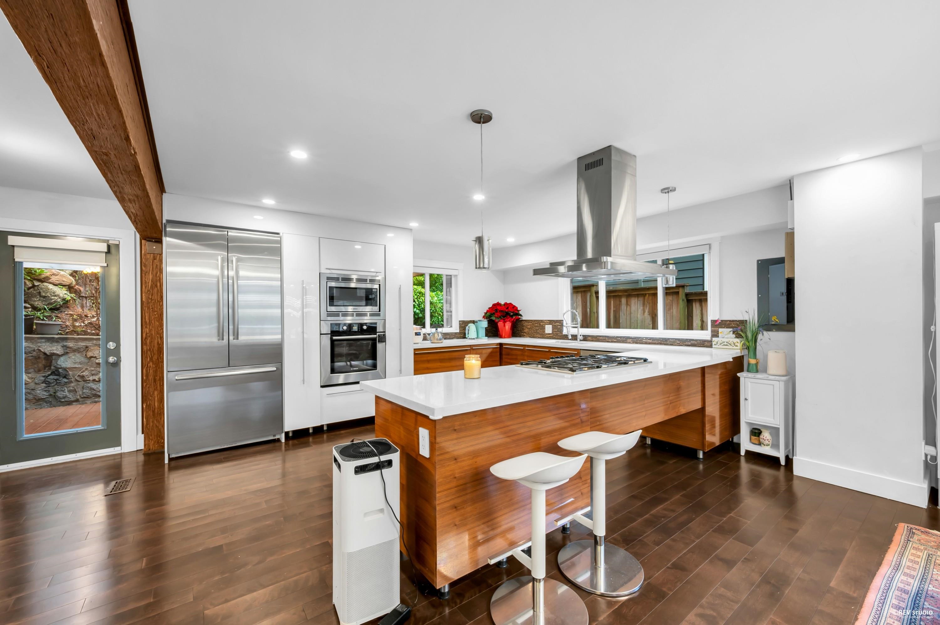 Welcome to this beautifully updated home in the heart of the Upper Delbrook community. The upper level offers lovely ocean & city views from a spacious sundeck, perfect for relaxing/entertaining. Over 3,400sqft of fully above-ground living space, the flexible floor plan allows each level to function independently, making it ideal for extended families, guests, or a mortgage-helper suite. Thoughtfully renovated w/ quality finishes including Bosch appliances, African Birch hardwood floors & Toto wall-hung toi...