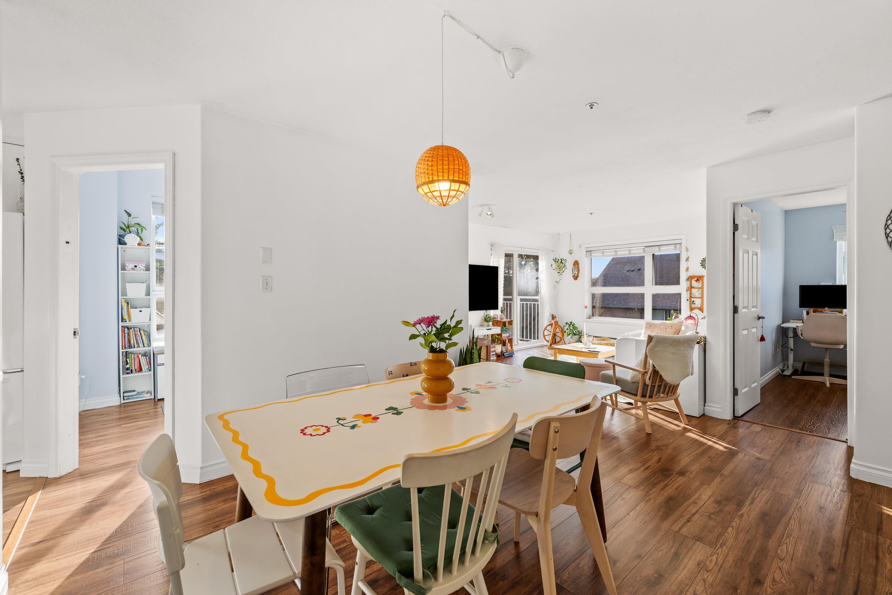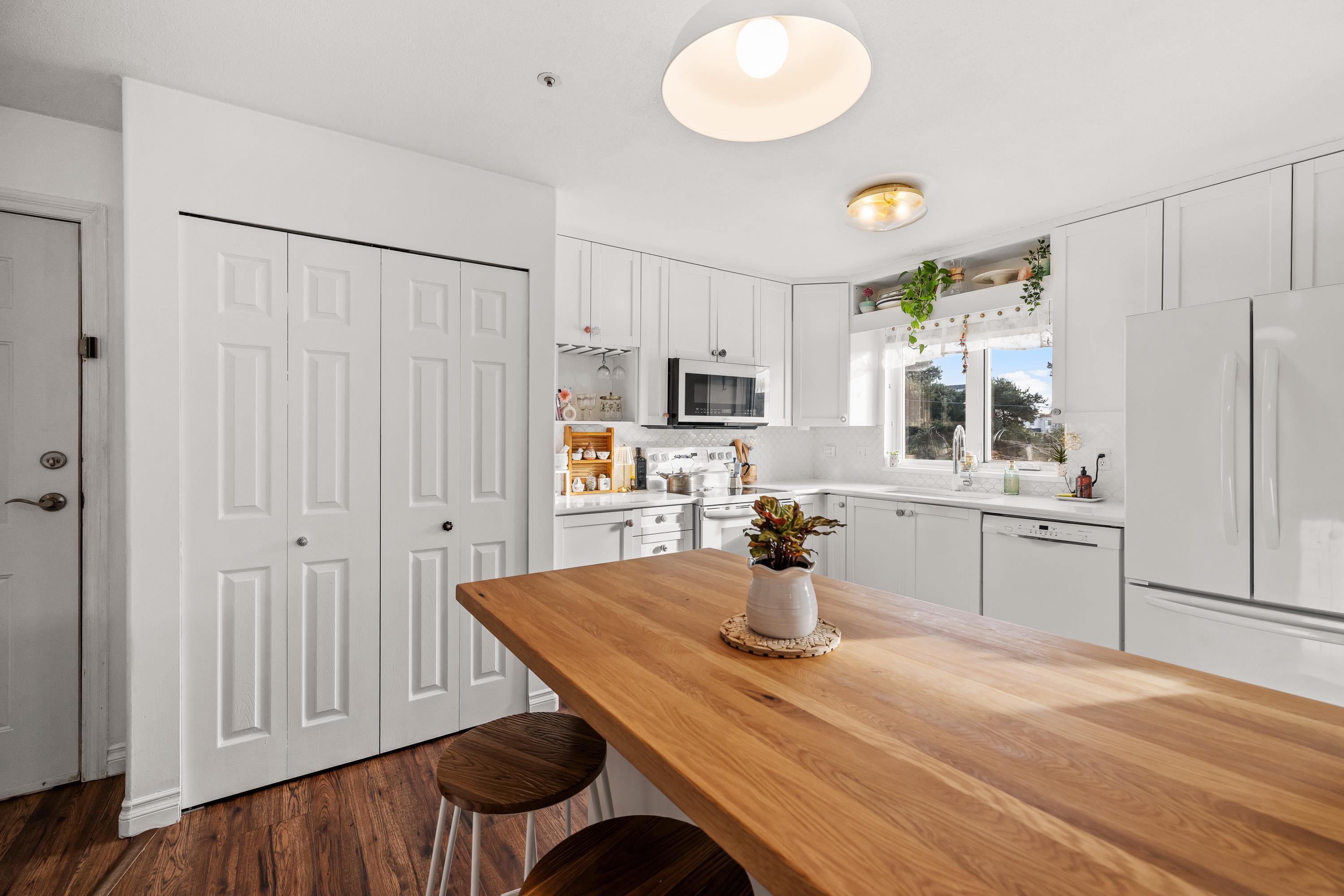 Welcome to this beautifully updated, Corner PENTHOUSE unit, 3 bed, 2 bath condo with spacious, functional floor plan offering 1,185 sqft & modern finishes. The bright kitchen features white shaker cabinets, quartz counters, pantry + eating nook w/island. Designated dining area & large living room with gas fireplace & south-facing patio. An oversized primary bedroom offers ample closet space w/ensuite. Versatile 2nd bedroom & good-sized 3rd bedroom (no closet) w/vaulted ceiling & oversized window! With no on...