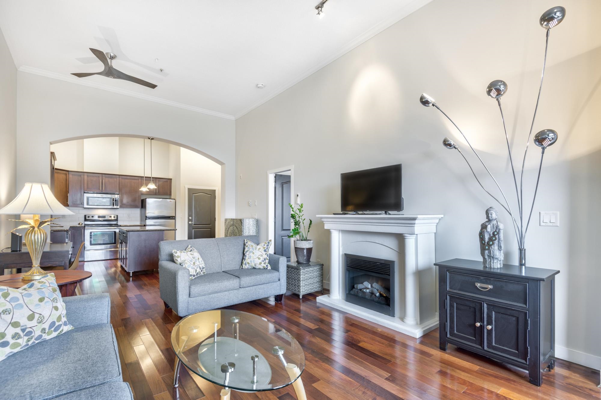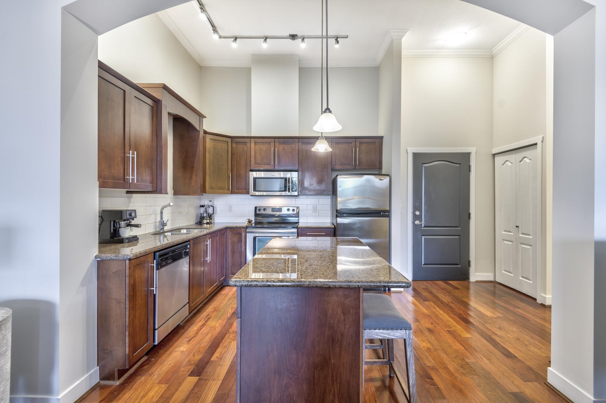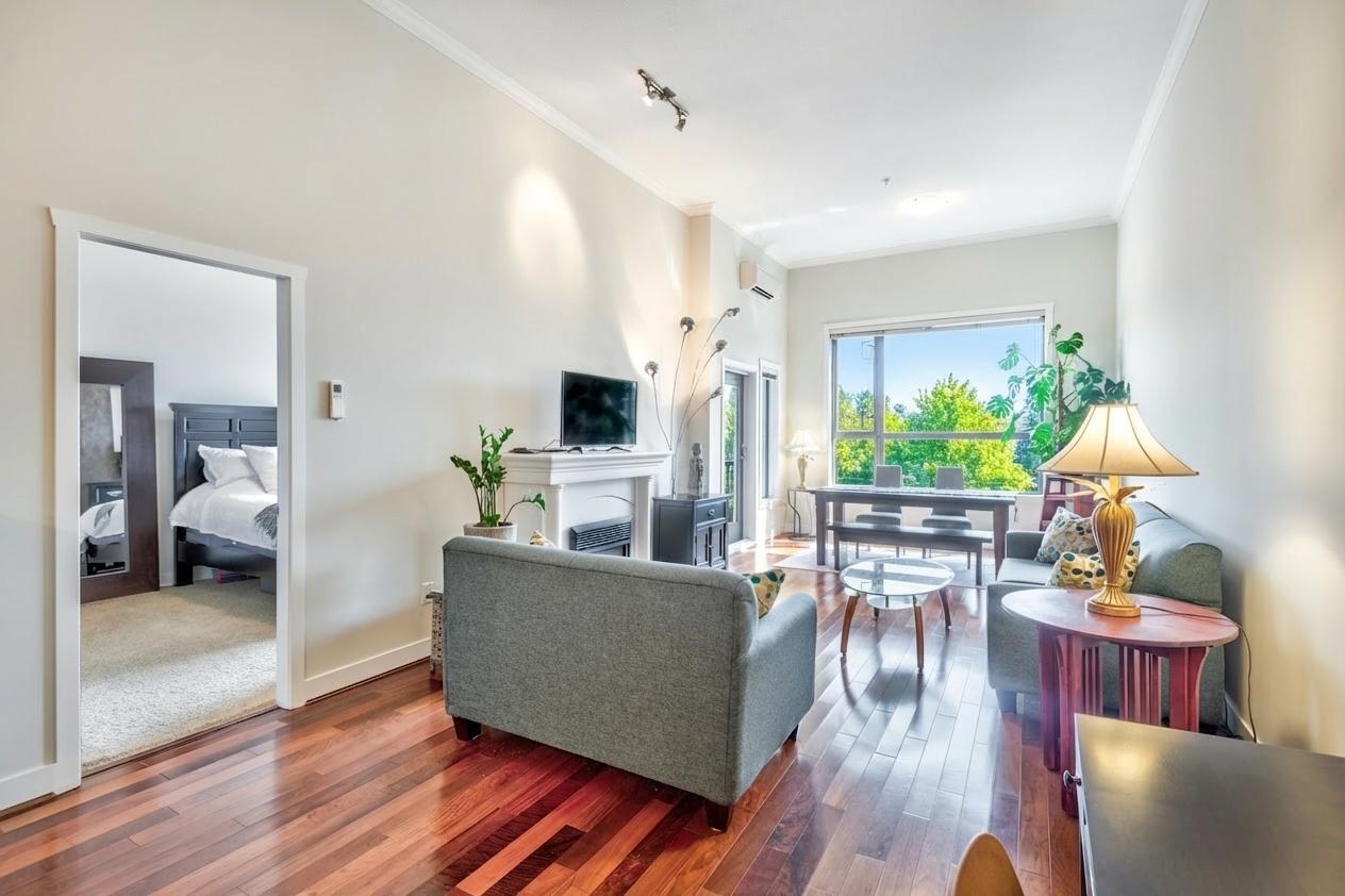 Welcome to Villagio 2 in the heart of PoCo! This top-floor 1 bed, 1 bath condo offers over 900 sqft of bright, open living w/ soaring 12’ ceilings, oversized windows & river views filling the space w/ natural light. Features Brazilian walnut hardwood, granite counters, wood cabinetry, S/S appliances, kitchen island & cozy fireplace. Stay comfortable year-round w/ A/C + in-suite laundry w/ extra storage. Enjoy your private balcony overlooking the river. Ideally located btwn parks & along the Coquitlam River,...