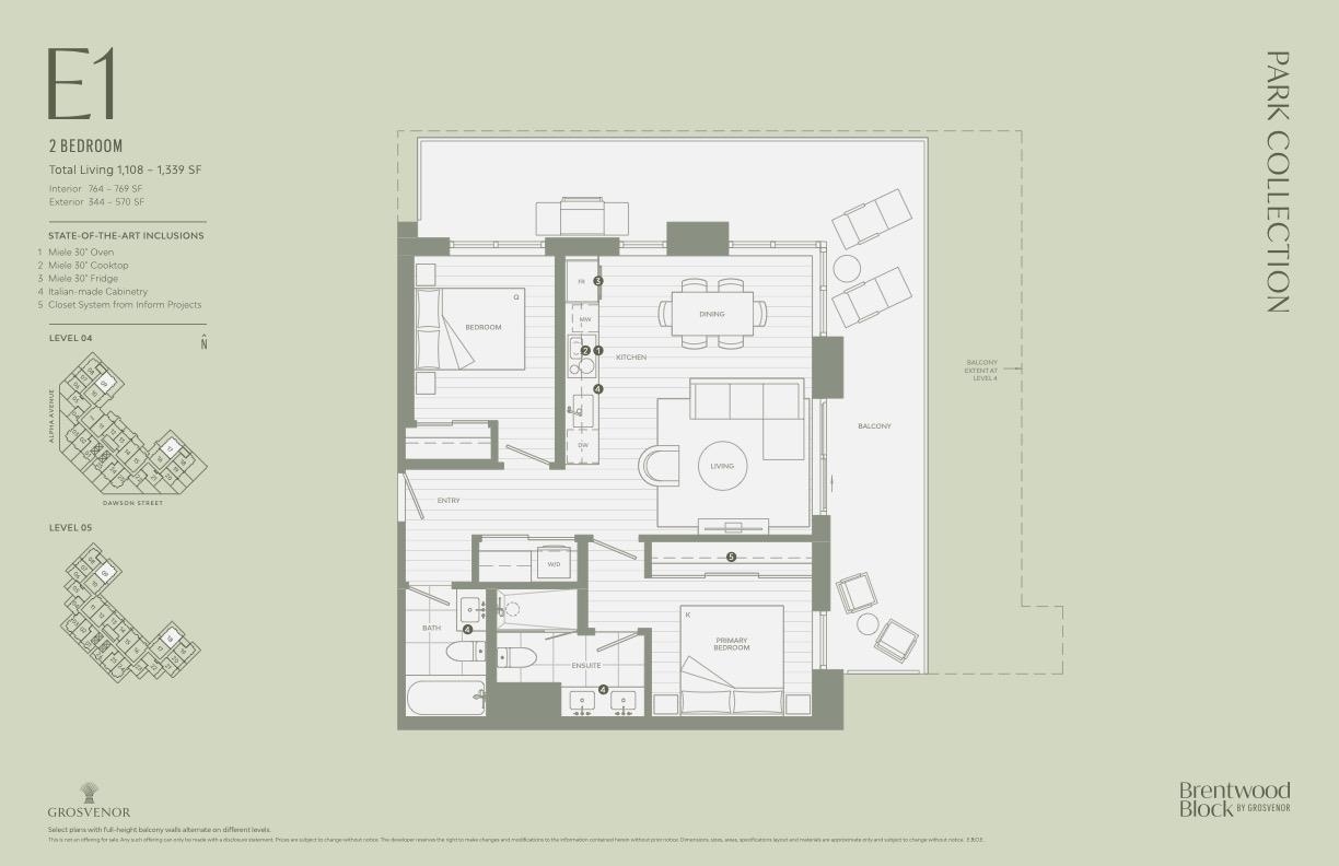 Live exceptionally at BRENTWOOD BLOCK BY GROSVENOR, a pedestrian-only community surrounded by 50,000 sqft of green space. This 2 Bedroom/ 2 Bath features a 570 sqft patio, Miele appliances, custom Italian cabinetry by Inform Projects, and Kohler sinks and faucets throughout. Enjoy comfort and quality air with MERV 13 filtration and premium amenities, including a 24-hour concierge, fully equipped gym, wet/dry sauna, coworking lounge, private dining room and outdoor terrace, children’s playroom, dog relief ar...